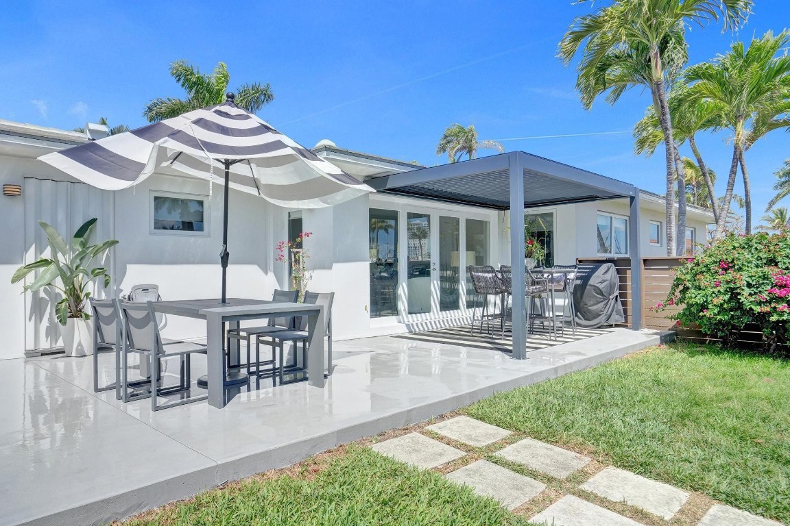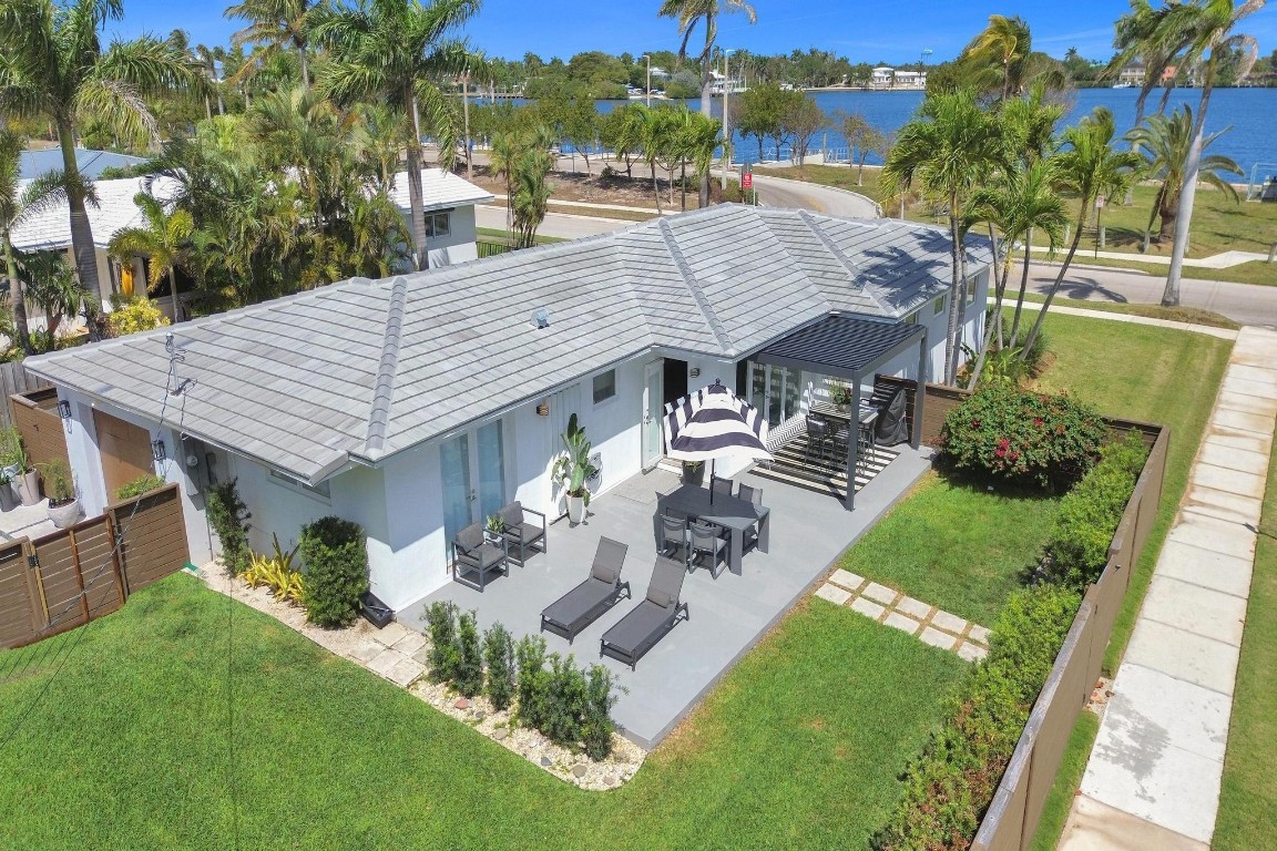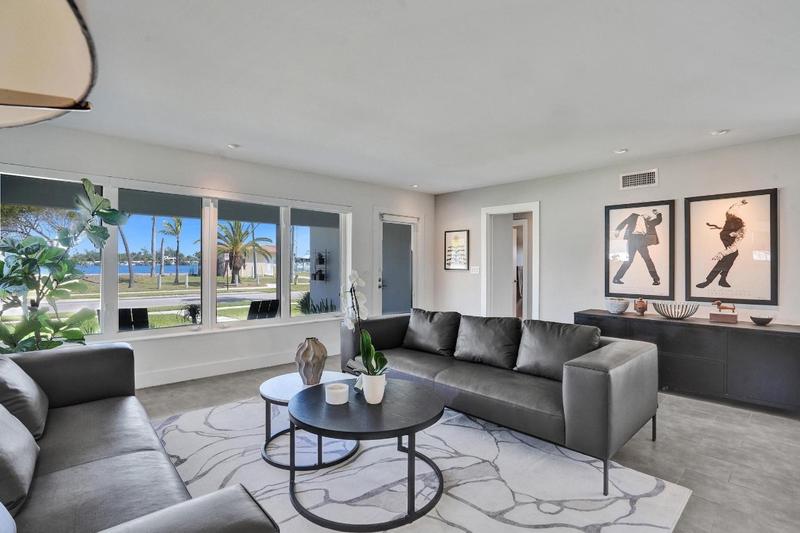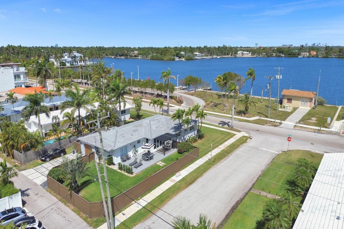 Beautiful North Lake and Intracoastal Views from living room, guest bedroom and patio. Designers mid-century recently updated, Hollywood home is located in the Hollywood Lakes neighborhood. March 2025 new roof, new kitchen 2024 with quartz counter tops, custom cabinets, deluxe stainless steel appliances & gas water heater. Fully remodeled bathrooms. Split bedroom floor plan, & a 1 car garage and impact windows. Large patio for BBQ & entertaining, new aluminum pergola with open-close shutters. Corner lot with fenced yard with room for pool, boat or RV. Watch the virtual tour. Boater will love the marina & boat ramp across the street. A location that is only 1 1/2 blocks to the foot of the Hollywood bridge allows a short distance to Hollywood Beach as well as downtown.