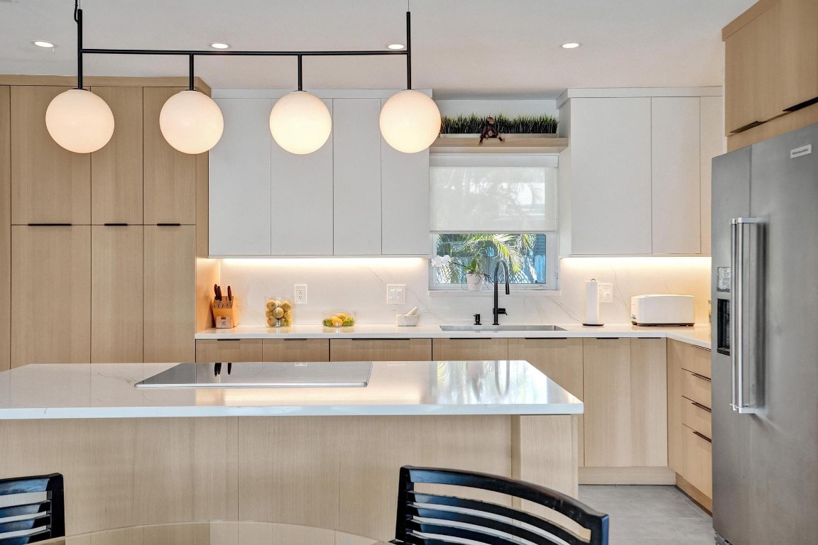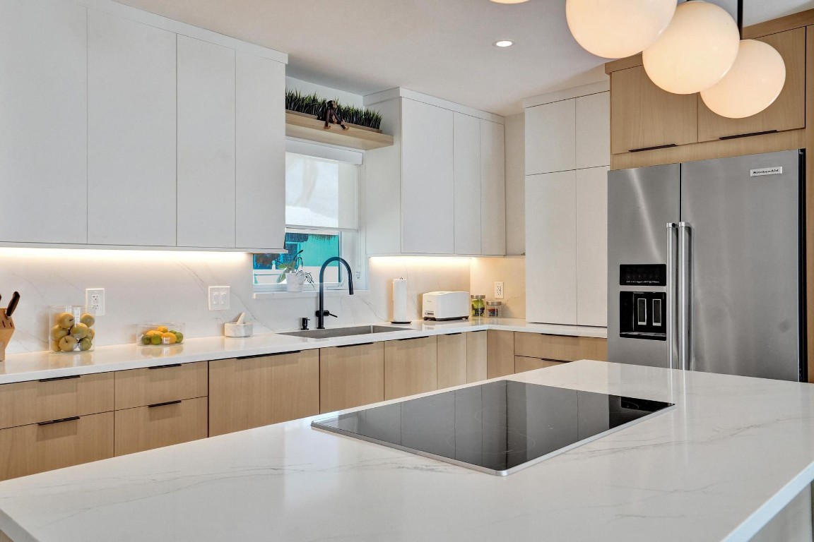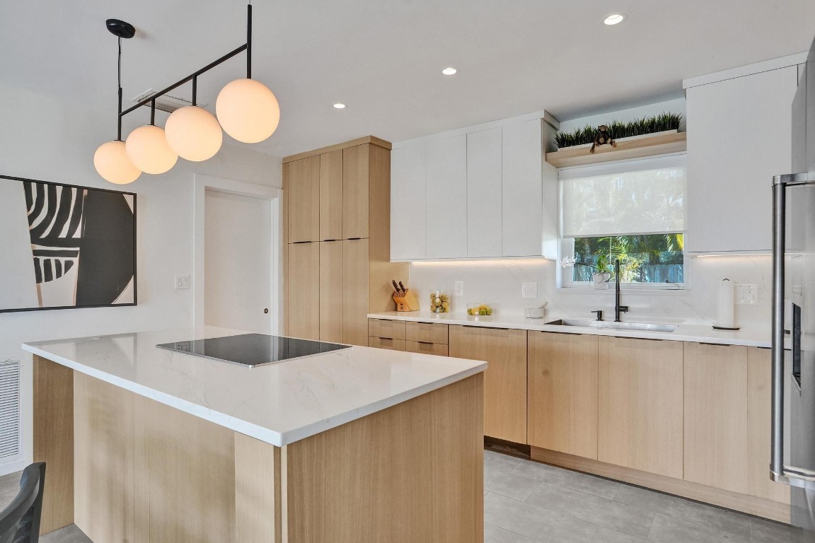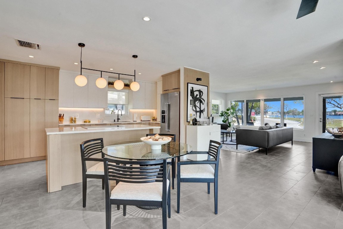 Beautiful North Lake and Intracoastal Views from living room, guest bedroom and patio. Designers mid-century recently updated, Hollywood home is located in the Hollywood Lakes neighborhood. March 2025 new roof, new kitchen 2024 with quartz counter tops, custom cabinets, deluxe stainless steel appliances & gas water heater. Fully remodeled bathrooms. Split bedroom floor plan, & a 1 car garage and impact windows. Large patio for BBQ & entertaining, new aluminum pergola with open-close shutters. Corner lot with fenced yard with room for pool, boat or RV. Watch the virtual tour. Boater will love the marina & boat ramp across the street. A location that is only 1 1/2 blocks to the foot of the Hollywood bridge allows a short distance to Hollywood Beach as well as downtown.