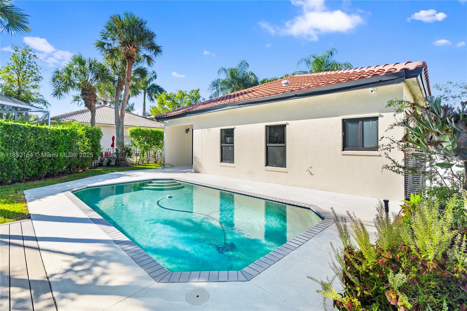 Stunning & meticulously rejuvenated, 1 story Grove Place gem in exclusive Mediterranean-inspired Grand Palms, West Pembroke Pines, is the one for you! Forget the average 5K sf zero-lot so common for the area, this expansive 2-lot combo has a massive 10,640 sf footprint. Bright & airy floor plan, majestic volume ceilings, dream master suite w/walk-in closet, dual sinks & roman tub. Magnificent marble floors, new roof, new impact windows/doors. Large, 2 tone kitchen w/ impressive granite counters/backsplash, SS appliances & snack counter. A private backyard, lush greenery, spacious pool deck & 30-foot pool are perfect for entertaining. Quiet cul-de-sac, 24/7 security, golf, tennis, fitness center, resort-style pool, bike/jog path, picnic area, great school district, playground, restaurants.