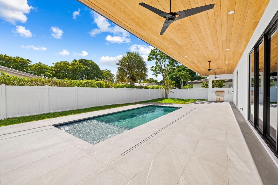 Discover unparalleled modern luxury in Coral Ridge Country Club with this exceptional new construction home offering 3,150 sqft of thoughtfully designed living space. Featuring 4 spacious bedrooms + office and 4 exquisitely appointed bathrooms, this home perfectly blends contemporary style with functional design. The open-concept layout connects a designer kitchen with Thermador appliances to living areas framed by expansive glass sliders, seamlessly merging indoor and outdoor spaces with views of the backyard and sparkling pool with sun shelf. The split floor plan ensures privacy, with an oversized master suite offering direct pool deck access, creating a serene retreat. A spacious office adds flexibility, while a dedicated laundry room enhances functionality.