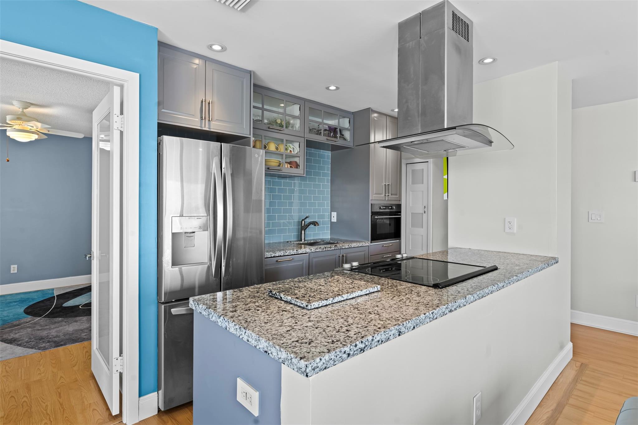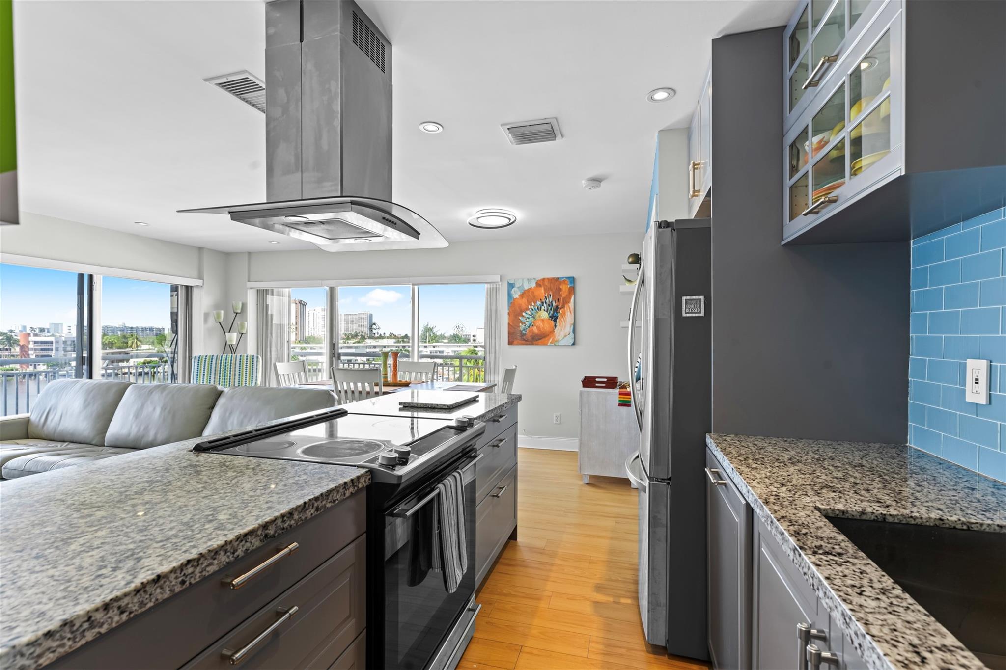 Enjoy peaceful mornings with panoramic views of Golden Isles Lake from your oversized wraparound balcony. This updated 2BD/2BA Hallandale Beach condo features an upgraded kitchen, modern flooring, and a remodeled primary bath. Water views from the living, dining, and bedroom create a serene retreat. The building offers a pool, community room, marina access (manageable waitlist), and laundry shared by just 4 units per floor. Newer roof, maintained A/C, and extra storage add value. Walk to the beach, Publix, shops, and dining. No rentals or pets allowed—offering true privacy, a peaceful community feel, and the chance to enjoy your home without the noise or constant turnover of vacation traffic.