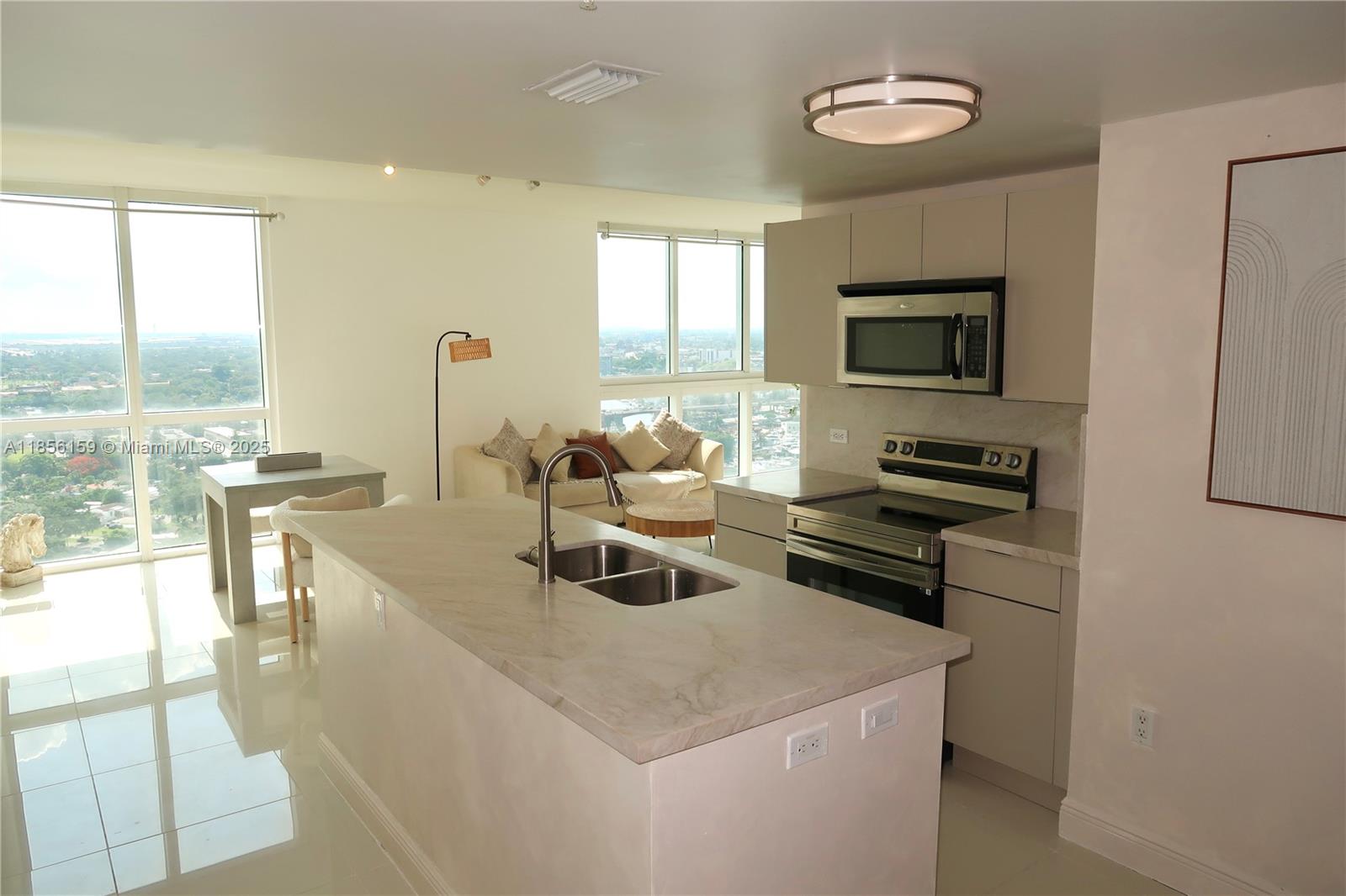 Remodeled corner unit with abundance of windows providing natural light and panoramic views: River, yachts, and breathtaking sunsets. Parking and Storage available at extra cost. Two Master Bedrooms feature en-suite bathrooms and walk-in closets, positioned on opposite sides of the unit for enhanced privacy. Pets are welcome in this unit. This gated community offers a serene living environment with a beautiful park located right next door, perfect for relaxing walks and outdoor activities by the river. Centrally Located: 8min airport, 10min downtown, 8min wynnwood, 13min Brickell, 16min from Miami Beach, 15min to Coral Gables, 5 min hospital. Water and Trash included in rent.