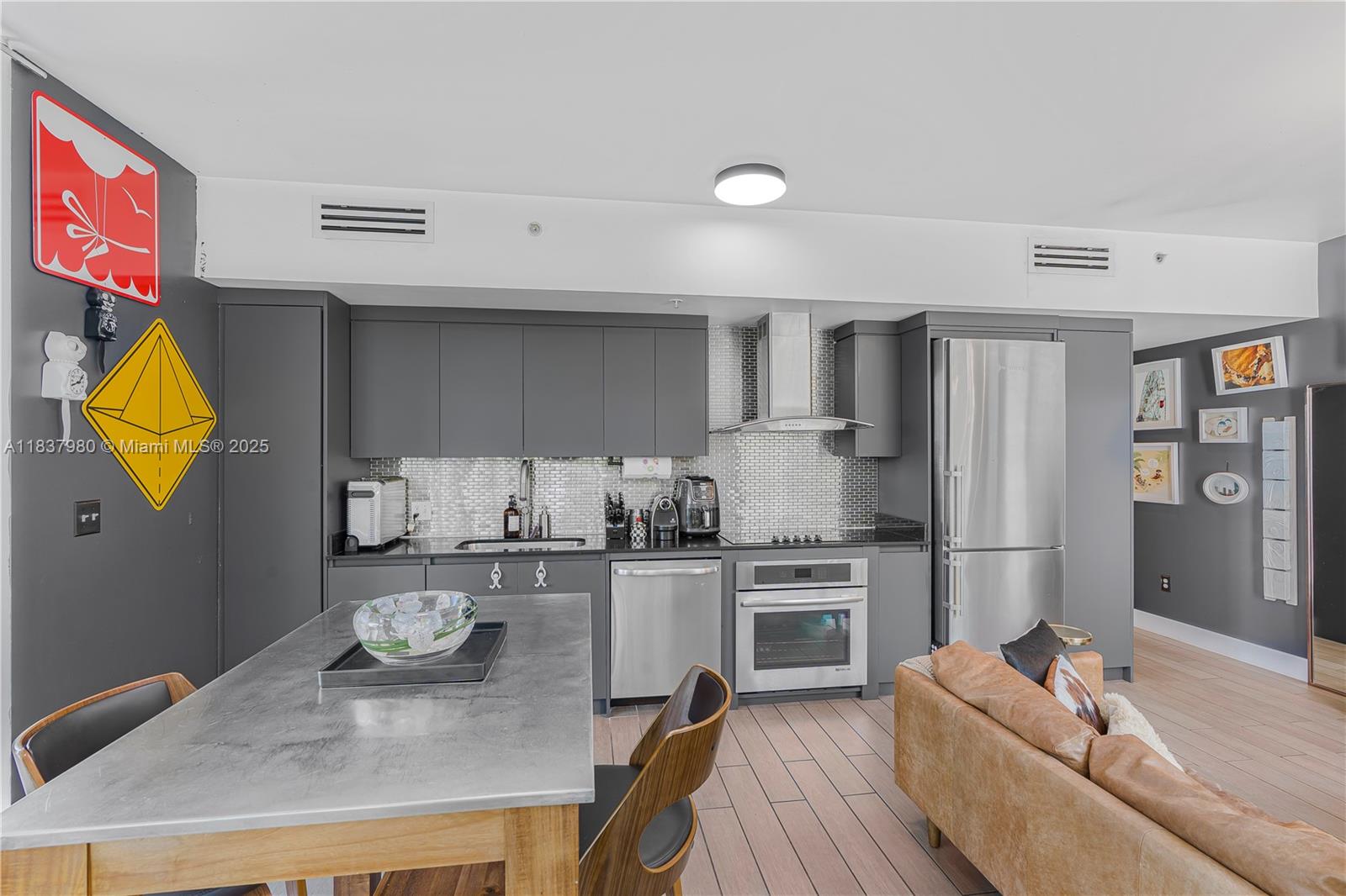 Elegant 1-Bedroom Condo with Bay Views in MiMo This 1-bedroom, 1-bathroom condo offers beautiful bay views and modern finishes, featuring matte wood-look porcelain floors. It comes with newer appliances, an open-concept layout, and floor-to-ceiling windows that fill the space with natural light. Located in MiMo, it provides easy access to entertainment. Enjoy premium amenities such as a Butterfly MX intercom system, a fully equipped gym, and a bayfront pool. The well-funded association ensures stability and peace of mind. Near Edgewater, Midtown, and the Design District, this move-in ready gem combines style, comfort, and convenience.