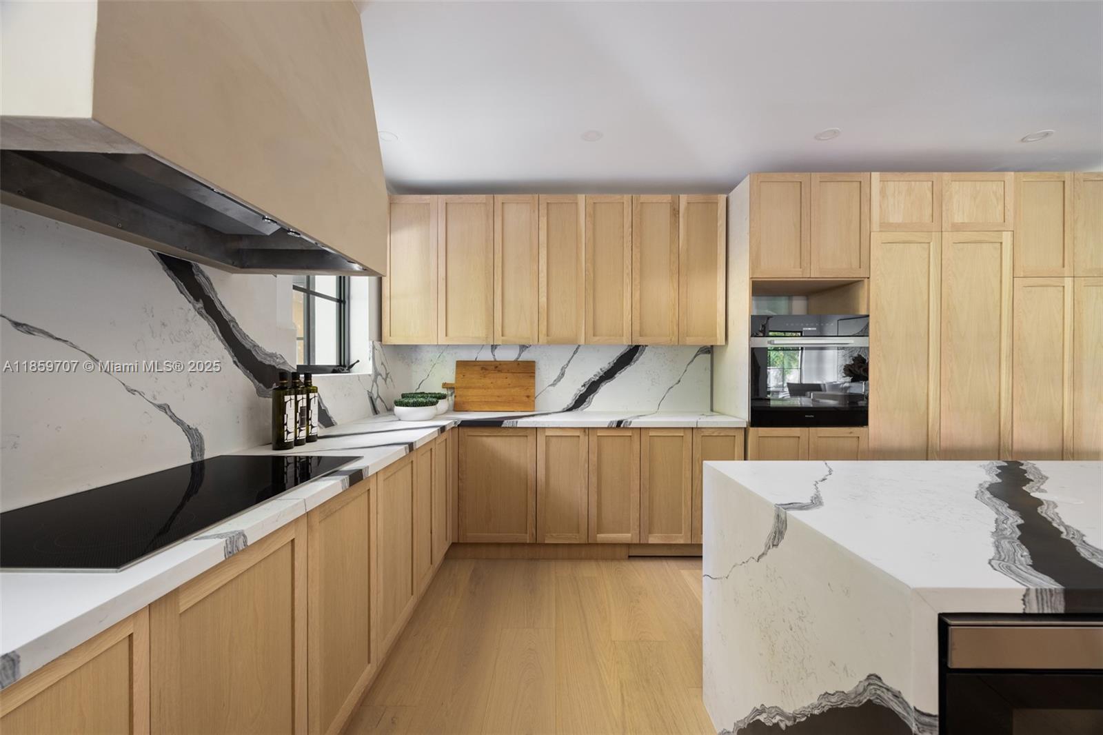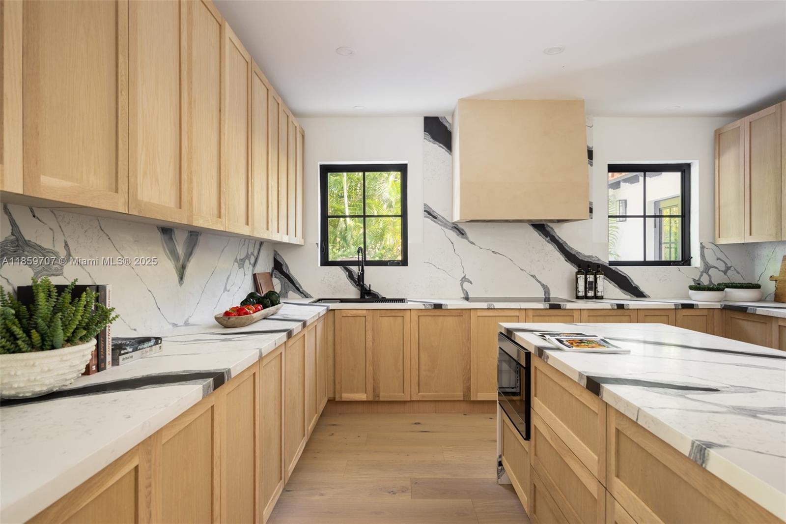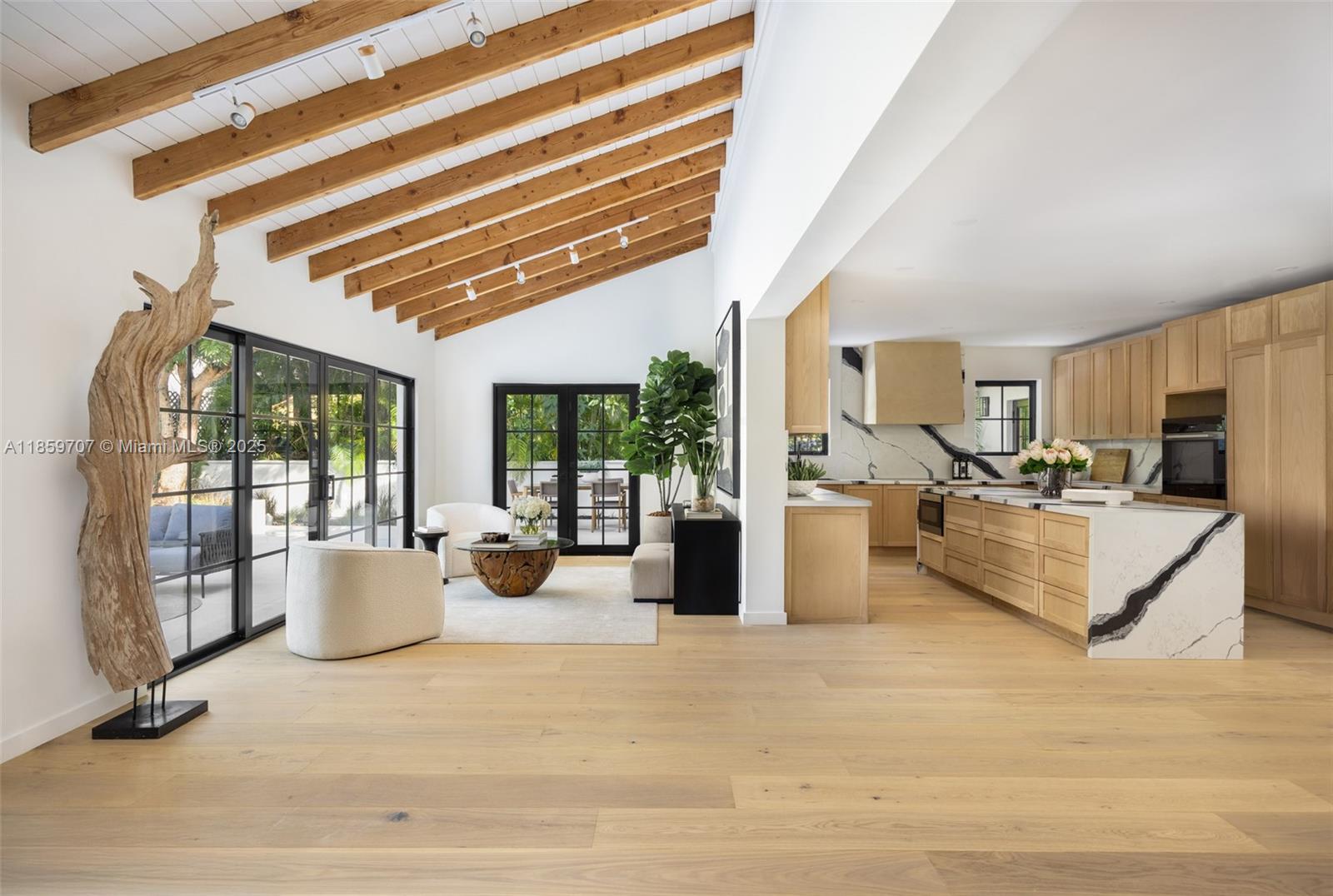 Modern Spanish Masterpiece -- Total Transformation in Coral Gables. On prestigious Riviera Drive in the coveted Golden Triangle, this home blends timeless architecture with modern comfort. Sun-filled spaces feature vaulted ceilings, wide-plank oak floors, and a custom oak kitchen with quartz counters, Miele appliances, and walk-in wine cellar. The primary suite offers dual walk-ins, fireplace, and spa bath. All bedrooms are en suite with built-in closets, ideal for family or guests. Smart-home features, impact windows, new 2-car garage. Enjoy a private backyard oasis with pool, summer kitchen, covered patio, and lounge areas. Close to the best schools, parks, and dining.