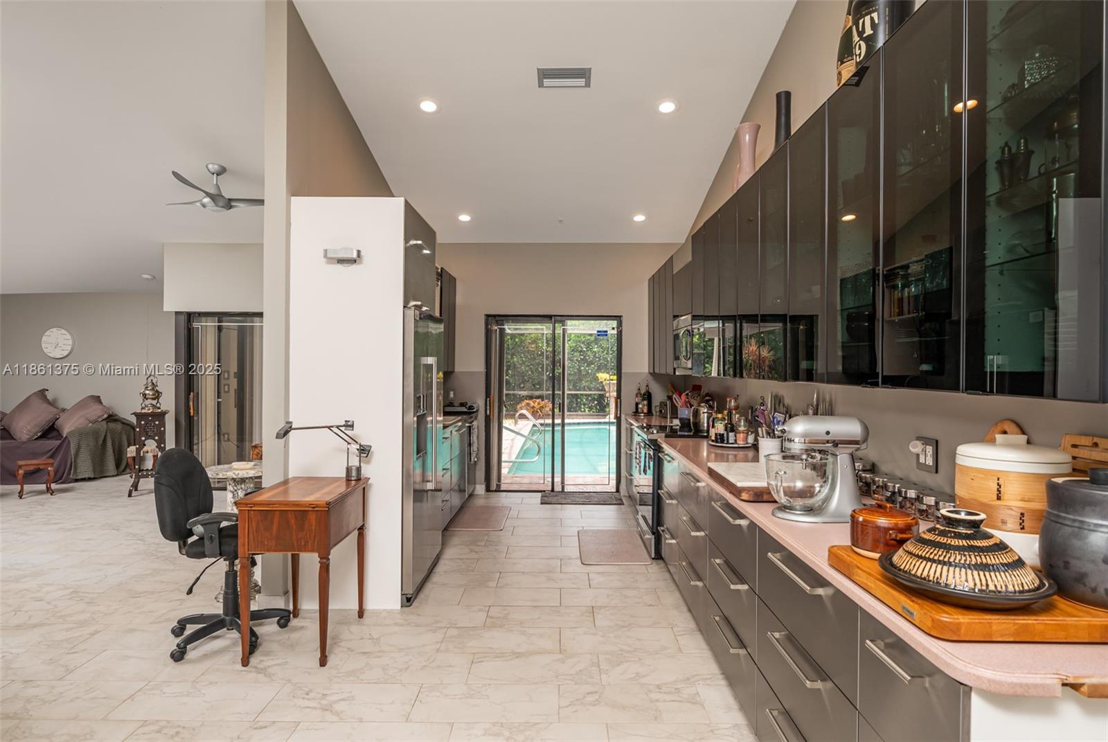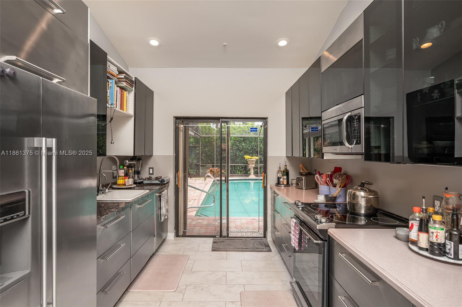 Welcome to your dream home in sought after Bonaventure Lakes community! This stunning 3-bed, 3-bath residence w/ 2,328 SF on an oversized 8,859 SF cul-de-sac lot offers ultimate privacy. Step inside to discover a beautifully updated kitchen, boasting top-of-the-line stainless steel appliances, sleek cabinetry, and elegant porcelain tiles. The spacious primary suite features a cozy sitting area, perfect for unwinding after a long day. The open floor plan flows seamlessly, enhanced by modern LED lighting. Enjoy the Florida lifestyle w/ a heated, screened-in pool & paver deck, ideal for entertaining or simply relaxing. Additional amenities include a 1-car tiled garage w/ AC, washer/dryer, & laundry tub, as well as sauna & custom built workshop/storage shed. Accordion shutters throughout.