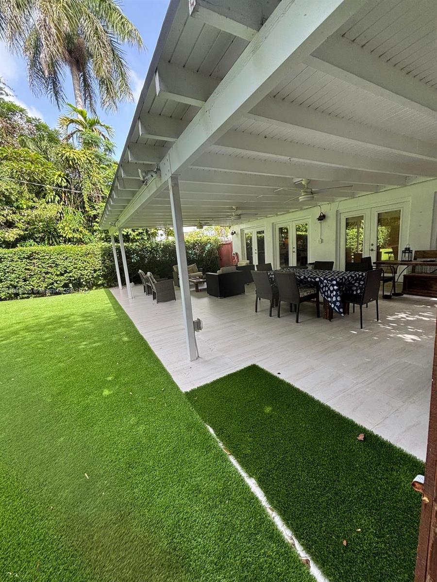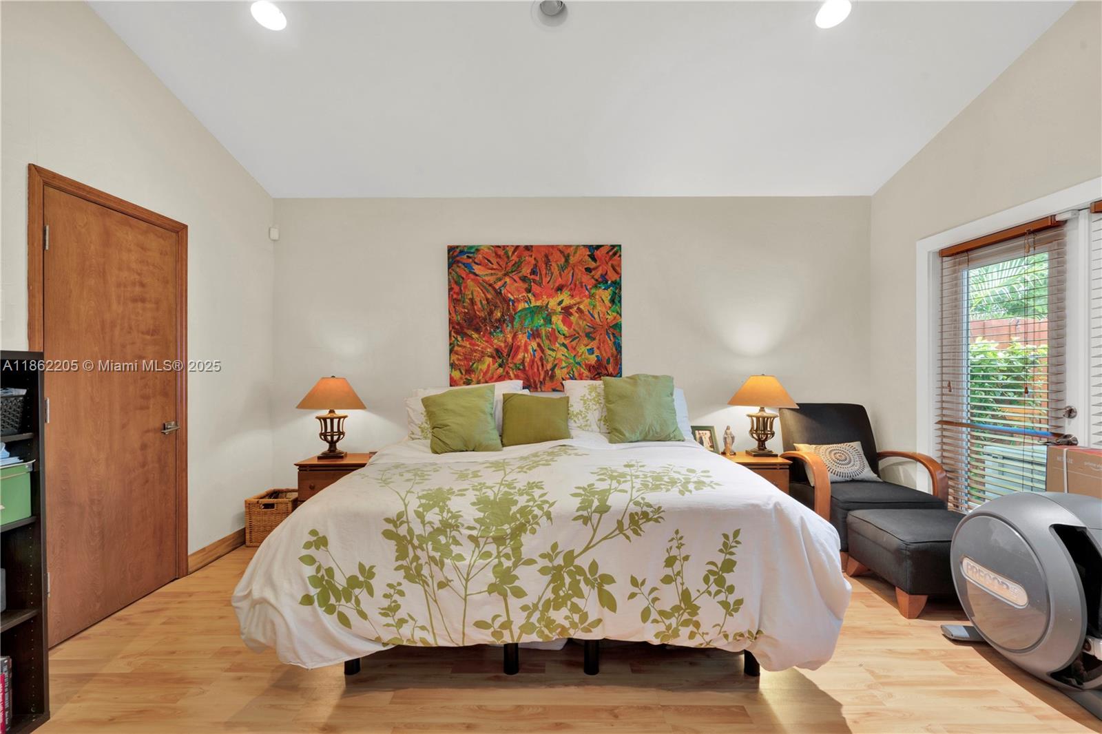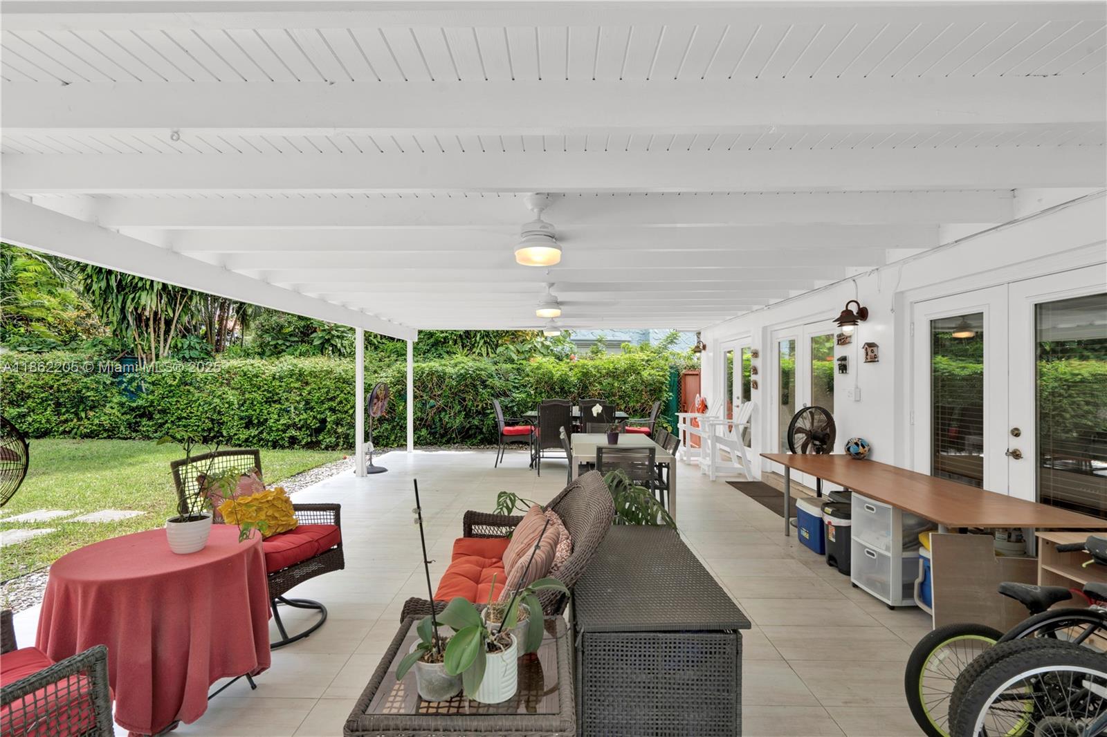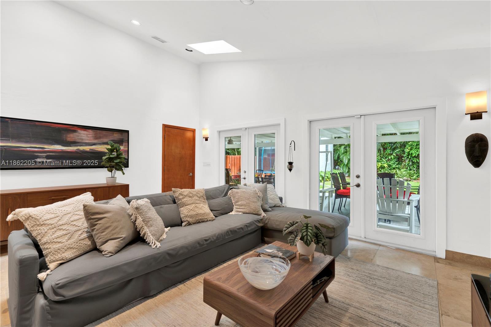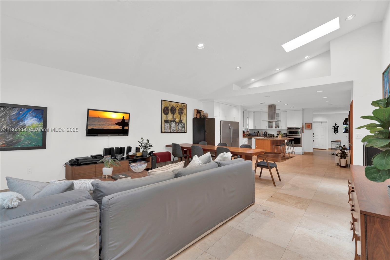 Discover this classic Coconut Grove residence, situated in the sought-after Southern Grove neighborhood. Featuring soaring 14-foot vaulted ceilings, abundant natural light from 5 new skylights, and an updated custom open kitchen this home blends timeless charm with modern comfort. Main residence offers 3 bedrooms and 2.5 bathrooms, highlighted by a stunning primary suite with 14-foot ceilings & a 250 sq. ft. walk-in closet. Separate 1-bedroom, 1-bath cottage is the ideal space for guests, in-laws, or a private office. Enjoy seamless indoor-outdoor living with four sets of impact doors opening to a spacious 650 sq. ft. covered terrace and BBQ area perfect for entertaining family and friends. Additional brand-new A/C & updated roof (2021/2022).