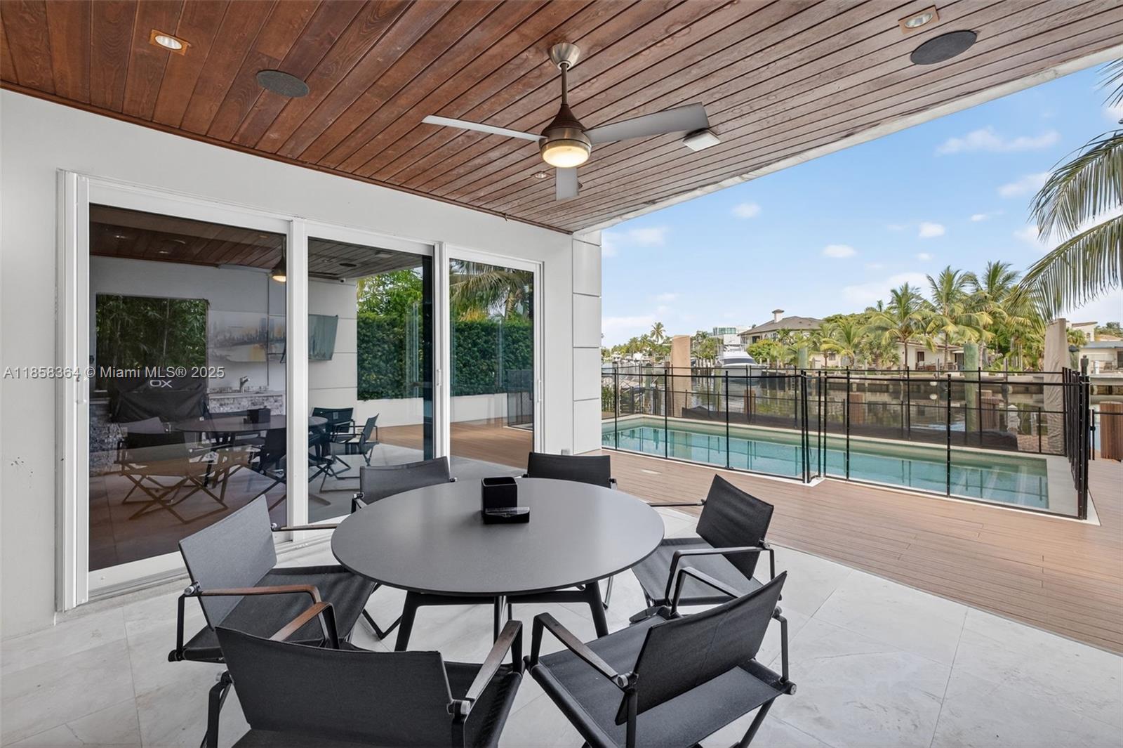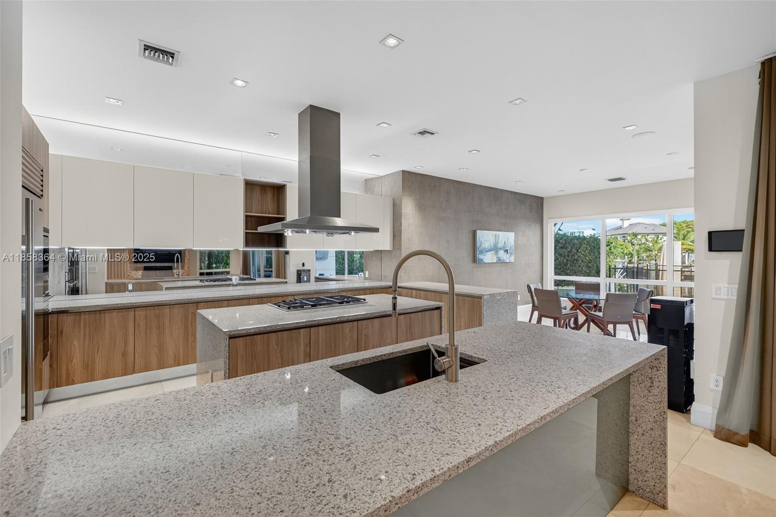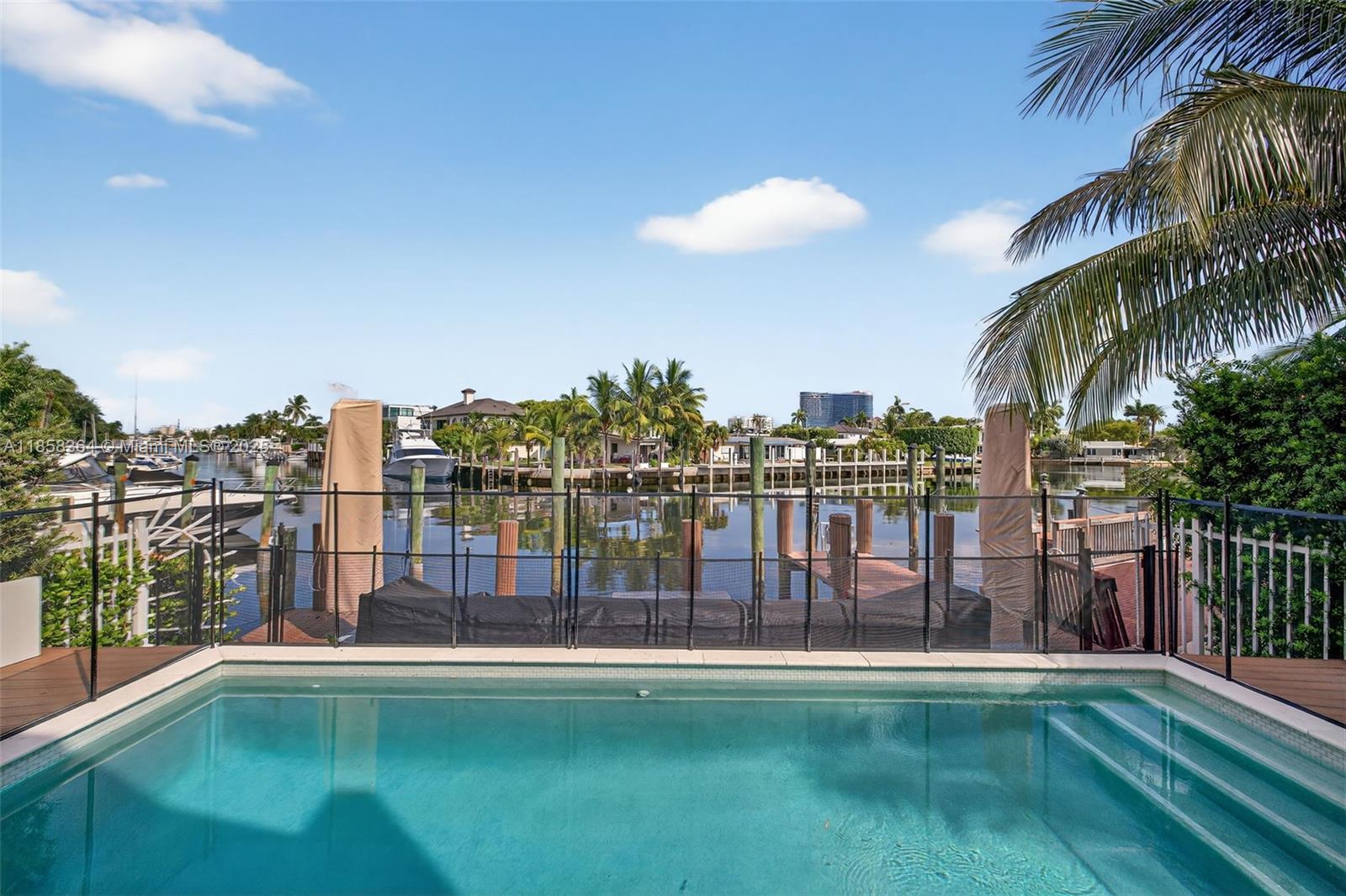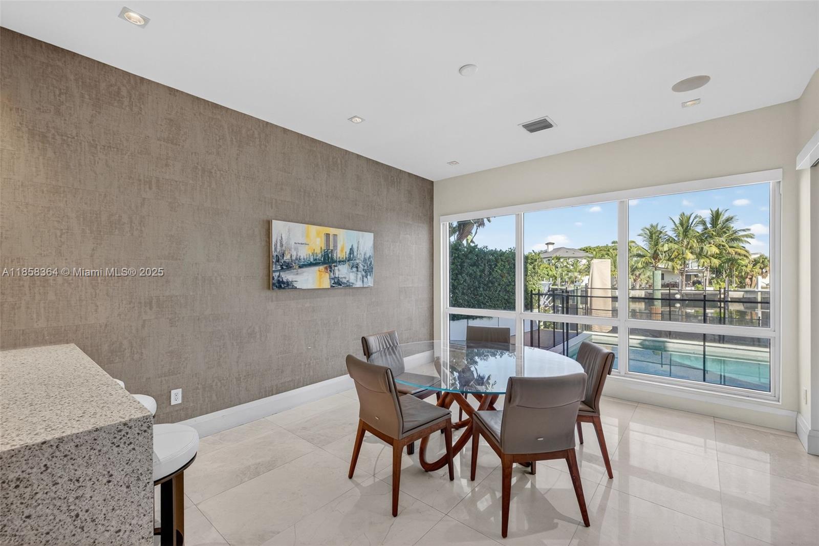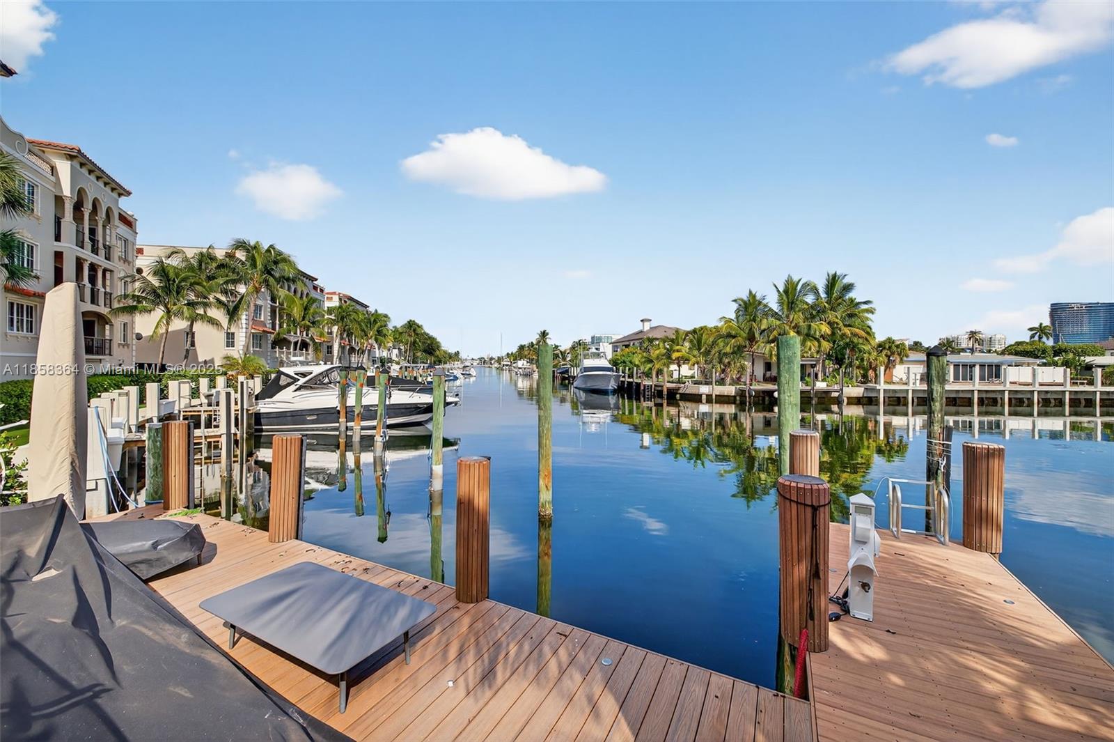 This stunning two-story waterfront home combines elegance and tranquility features 4 bedrooms and 5 1/2 bathrooms, open den/ office or library with balcony. Over the top master suite, spacious walk-in closet, large balcony overlooking the bay, his/her bathroom, double showers and sauna. Each room has been designed by interior decorator with custom wallpaper, while porcelain tiles floors give the home a clean elegant touch. Gourmet kitchen by Mia Cucina with wolf gas stove, large pantry and wine cellar. Breakfast area with breathtaking views of the bay. Elegant window treatment with motorized shades. The outdoor features built-in barbecue grill, large sink, heated pool, shower and 40-foot boat dock. Property secured by electronic gates, large driveway and two-car garage.