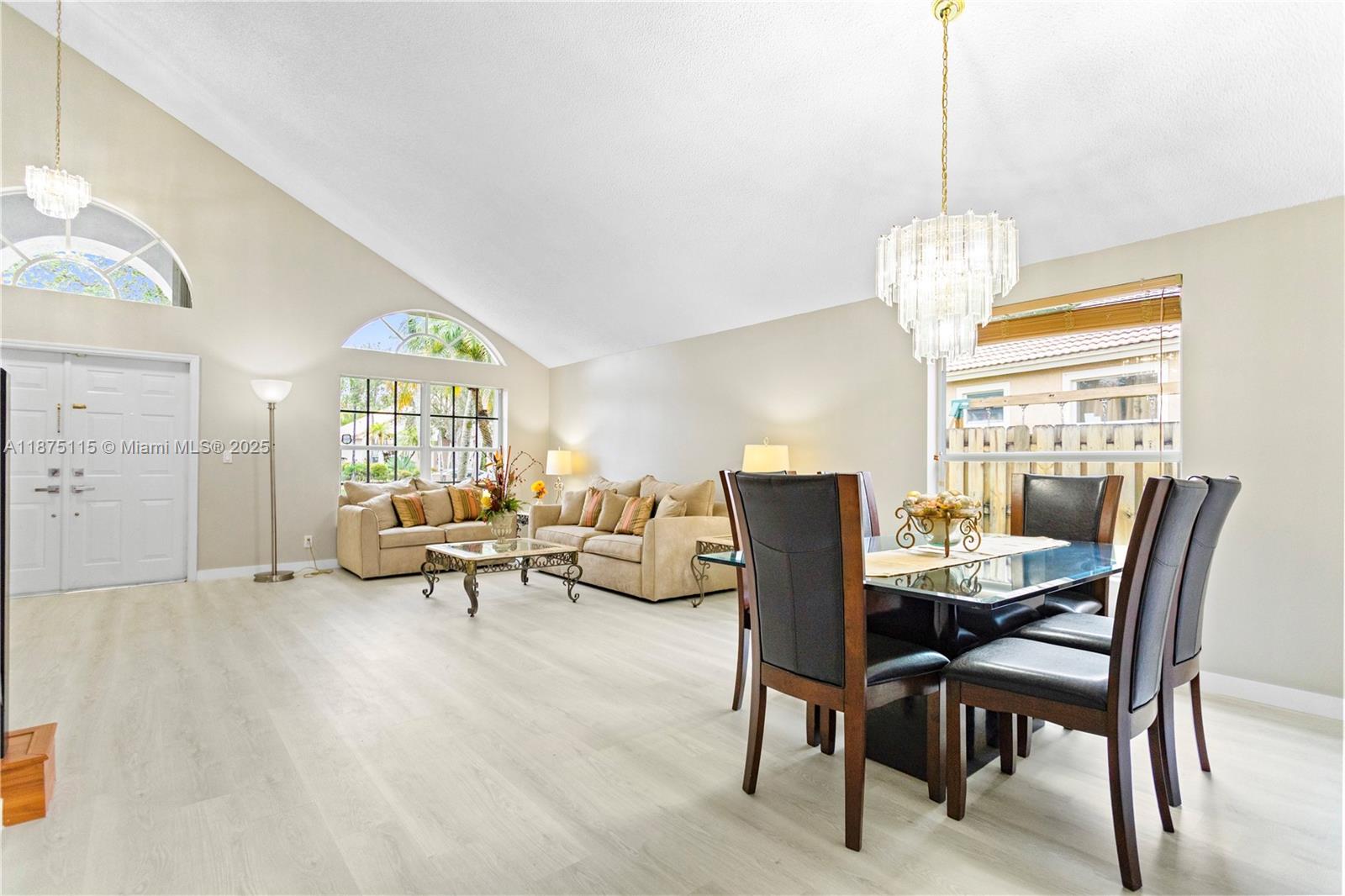 Resort-style living awaits! Enjoy an amazing clubhouse with lap pool, gym, tennis, pickleball & basketball. This modern home features a certificate of excellence roof, accordion shutters on all windows, impact French doors, and a fully fenced backyard w/ covered patio and room for a pool. Inside you'll find updated kitchen and bathrooms, new flooring, and fresh paint throughout. Energy-efficient LED lighting and 2023 water heater provide peace of mind. Includes 2-car garage plus parking for 3 more (5 total). Move-in ready! Located in Pembroke Falls community with 24-hour security, walking trails, and easy access to top schools, shopping, dining & I-75. Association covers water for sprinklers, basic cable & internet, and alarm system, adding value and convenience.