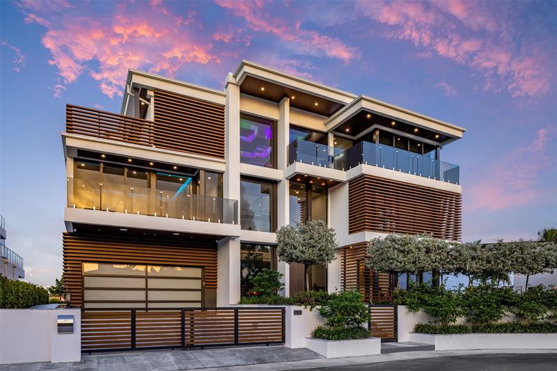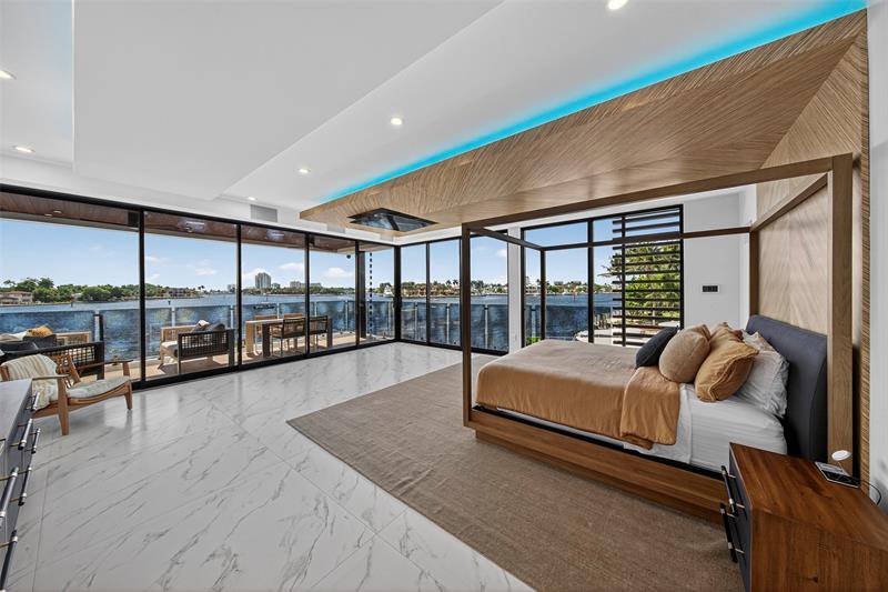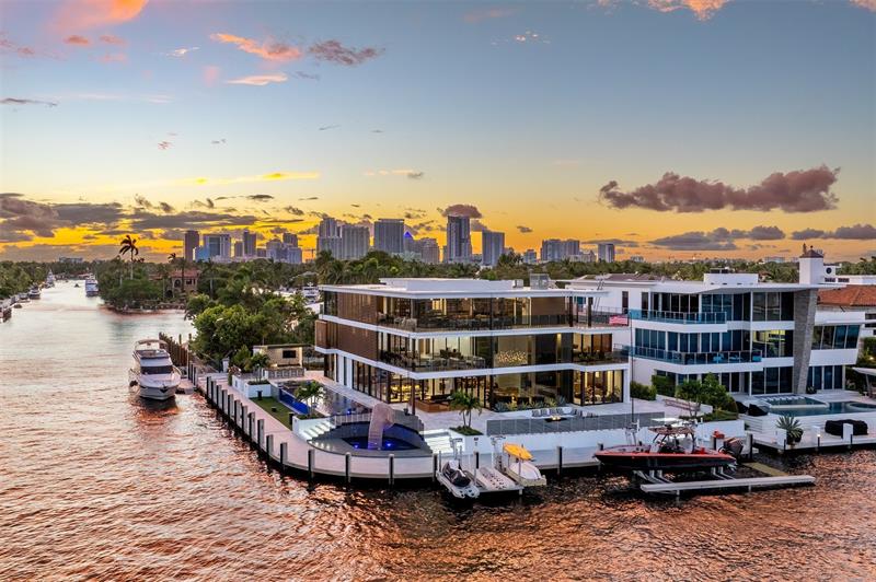 Enjoy the pinnacle of luxury living at this spectacular waterfront Point Lot estate in exclusive Rio Vista. A modern 3-story masterpiece, this residence showcases sophisticated interiors & private terraces capturing sunrise & sunset over the wide Intracoastal. W/7 bedrooms, a gourmet chef's kitchen, soaring dbl-height livingroom, office, clubroom, & an indulgent indoor/outdoor primary bath, the home offers the perfect balance of comfort & grandeur. The third-floor sky lounge, gym, & guest suite create a true retreat, while expansive glass walls frame awe-inspiring views. For yachting enthusiasts, 250 feet of deep-water frontage accommodates even the largest vessels. Outdoors, enjoy a custom glass-facade pool, summer kitchen, and water features, all designed for unforgettable entertaining.