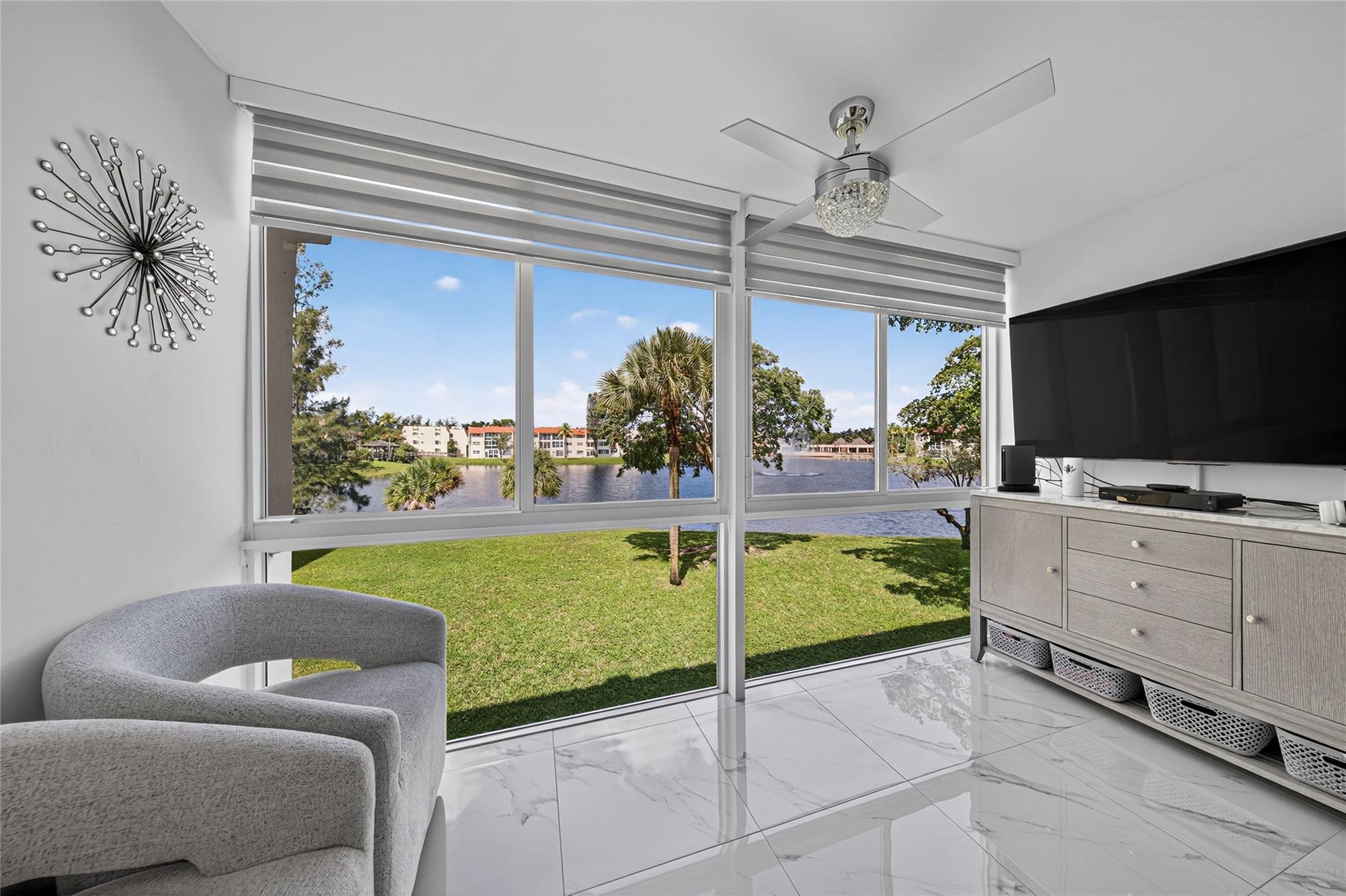 Welcome to this beautifully remodeled 2-bedroom, 2-bath condo located in the desirable 55+ community in the heart of Sunrise. This unit has been completely updated with top-of-the-line Samsung appliances, elegant countertops, modern bathrooms, impact windows, and stylish tile flooring throughout. Enjoy spectacular lake views that provide a serene and relaxing atmosphere right from your living space. Residents have access to a wide range of amenities, including a sparkling pool, tennis courts, and a shuffleboard court. Perfect for an active and social lifestyle, rentals permitted, no pets allowed, Association requires a 650+ credit score, 20% minimum down payment. Don't miss this rare opportunity to own a move-in-ready home in a well-maintained and welcoming community!