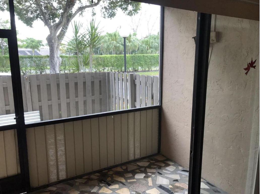 2/2 condo w/ spacious, split floor plan. Rented for 1,850.00. Stackable washer/dryer, wood floors in bedrooms, vanities/toilets/mirrors/lights in bathrooms. Updated, eat-in kitchen w/ cherry cabinets. Marble floors in living area. Fans/lights in all rooms. Verticals on all windows. Screened patio w/ custom mosaic floor & storage; fenced private yard for garden & pets. Parking at front door; easy access to major highways, shopping, dining, Sawgrass Mills; bus stop yards away. Please verify measurements.
