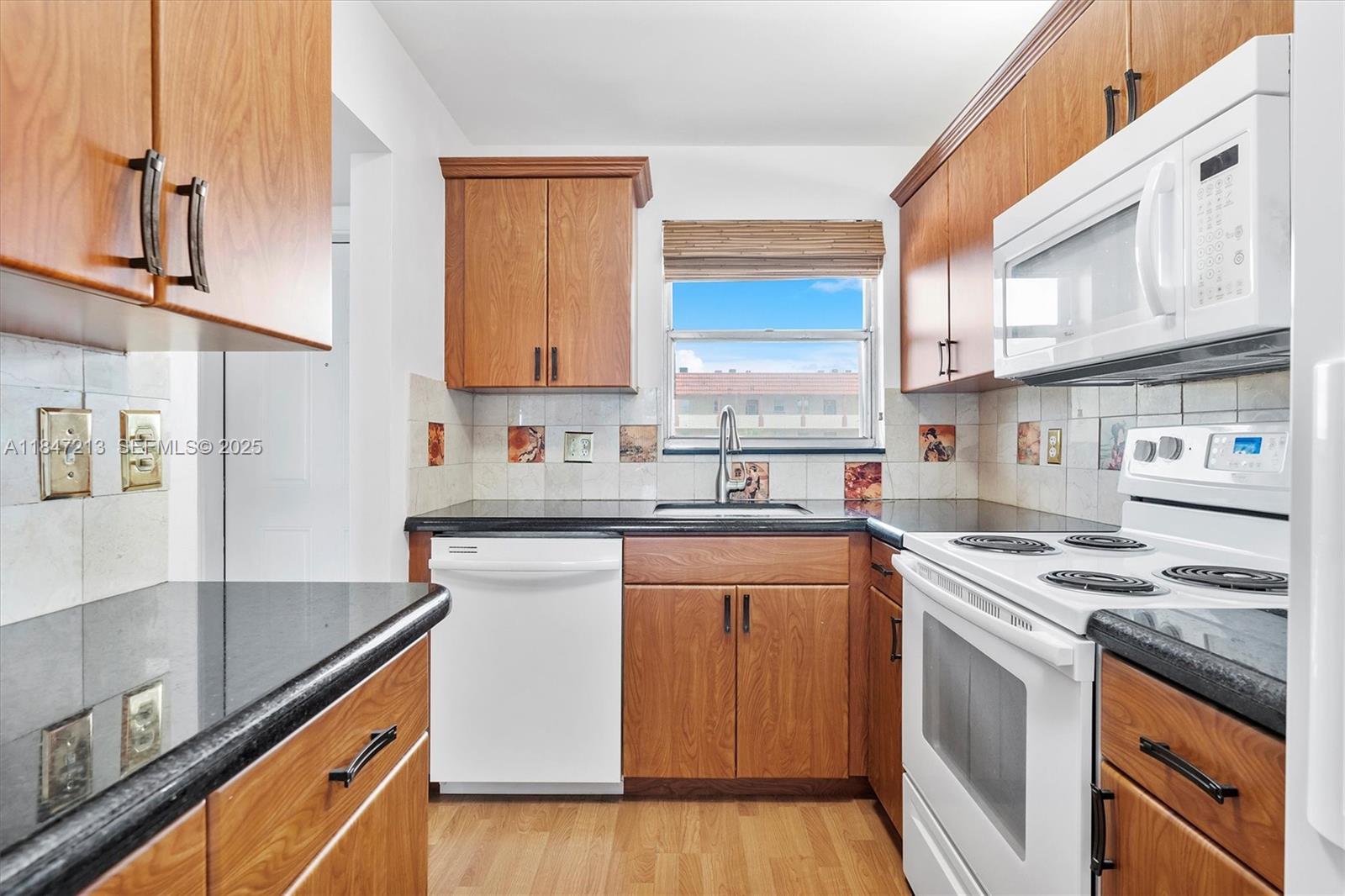 Enjoy peaceful lake views from this bright and quiet 2-bed, 2-bath 55+ condo in Sunrise Lakes. With a comfortable layout and updated features, this home offers laminate flooring throughout and thoughtful improvements, including a newer A/C (4 years), water heater (2025), new kitchen faucet, smoke detectors, patio light fixture, front door lock, sink stopper, patio screens, and front window. The screened patio is the perfect spot to unwind and enjoy the view. Community amenities include cable, internet, water, insurance, clubhouse, and grounds maintenance. Conveniently located near shopping and dining.