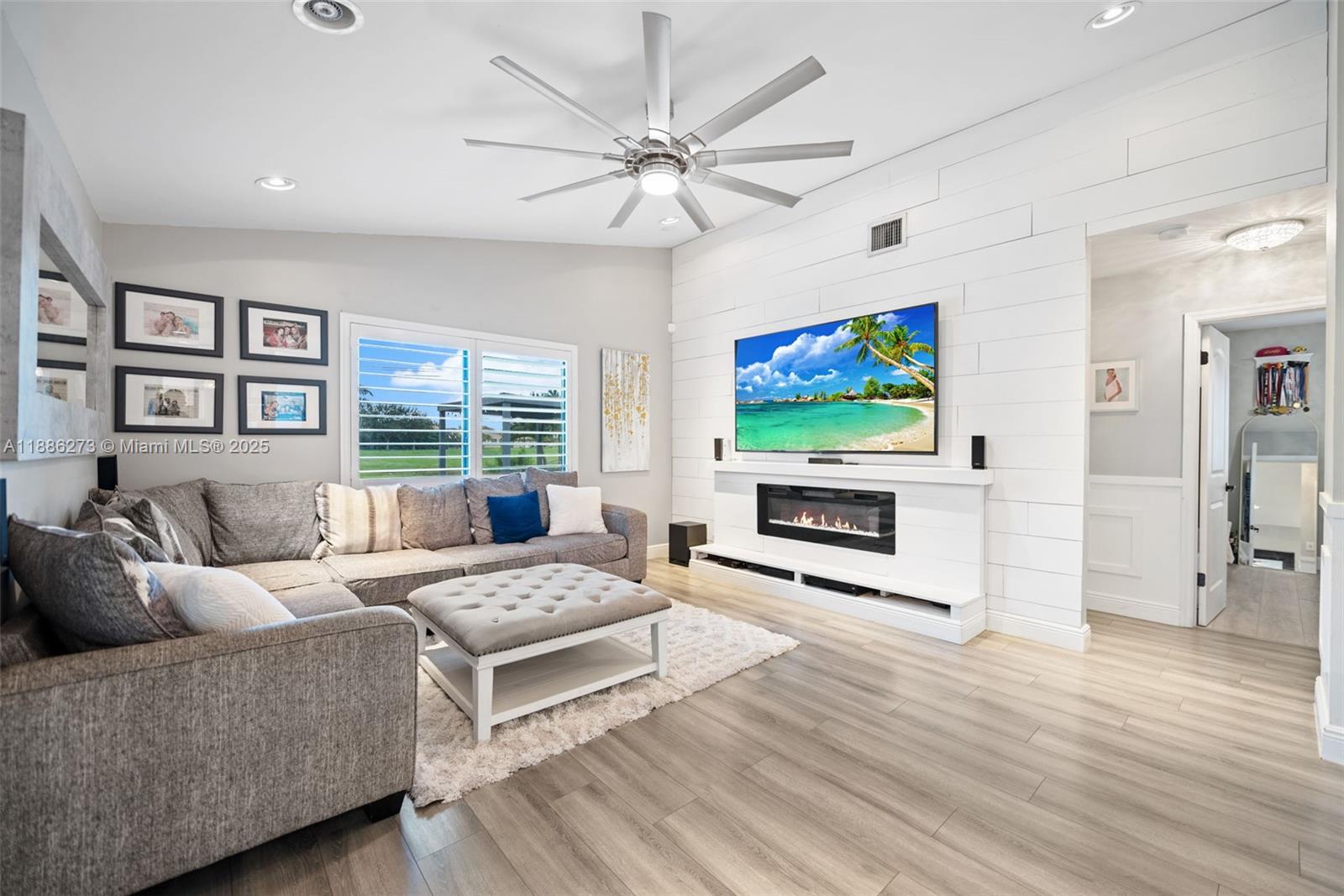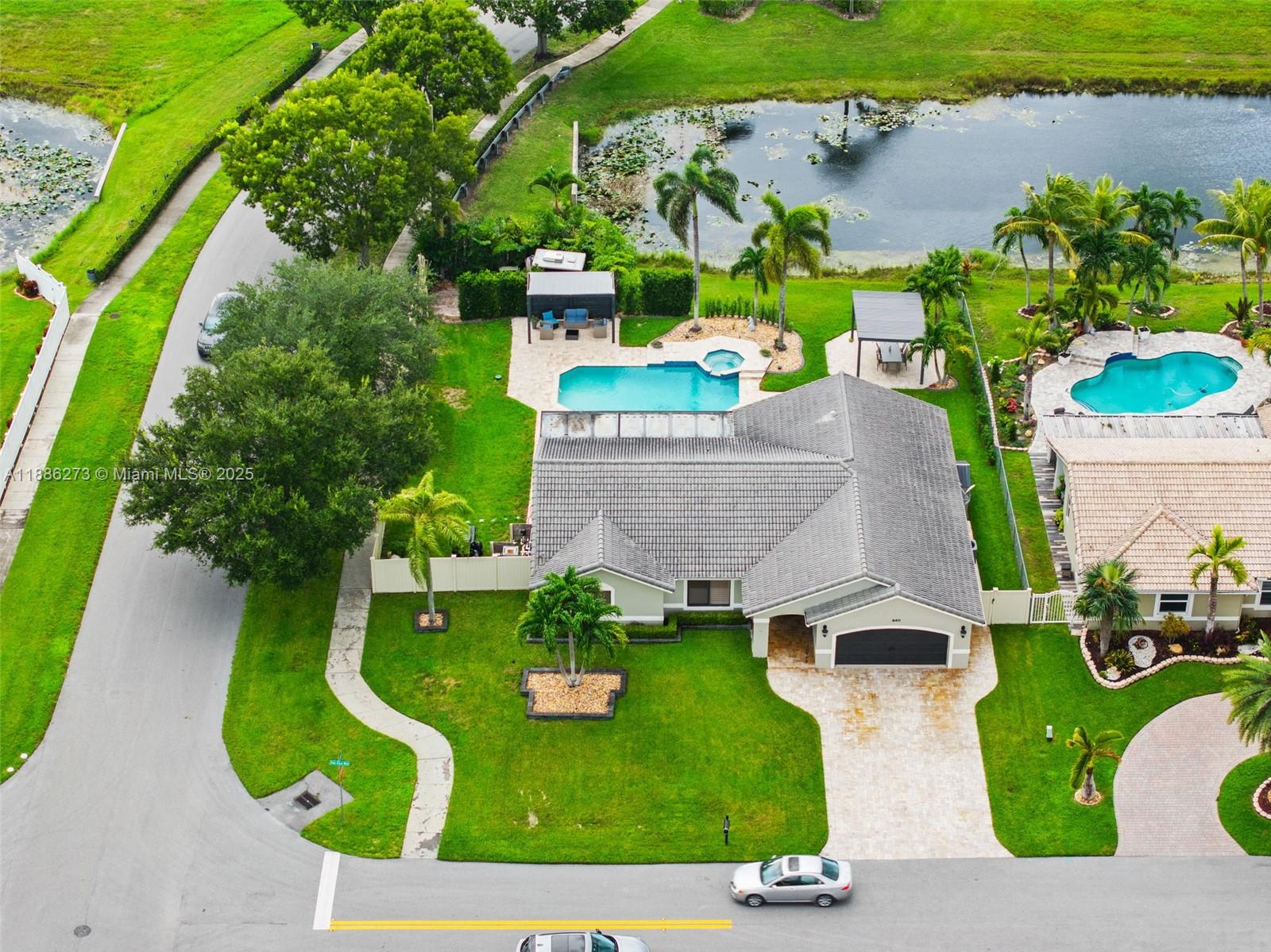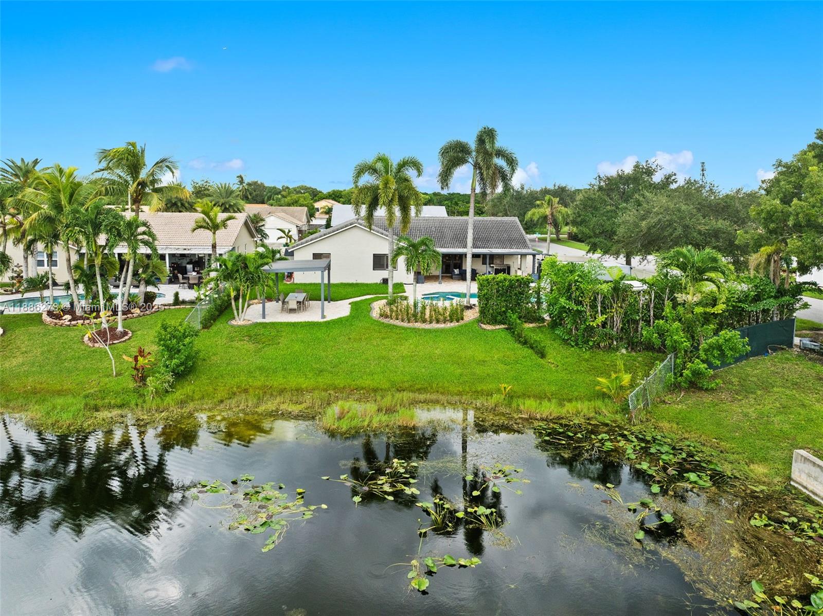 Custom lakefront masterpiece in the prestigious Waverly Hundred community! 3BR/2BA on 12,000 sq ft corner lot with vaulted ceilings, LVP flooring, plantation shutters & custom accent wall paneling that elevate every room! Gourmet kitchen with quartz counters, white cabinets, stainless steel appliances, pot filler & wine cooler! Primary suite with barn door entry & spa bath with soaking tub & glass shower! Second bath with custom tile flooring & glass enclosed shower! Large family room with built-ins & fireplace overlooking lake. Garage "car condo" with epoxy floor so clean you can eat off it! Backyard with lush tropical pool over looking lake with 3 covered entertaining areas plus private gated storage area! Barrel tile roof, brick paver driveway, low HOA, A+++ schools!