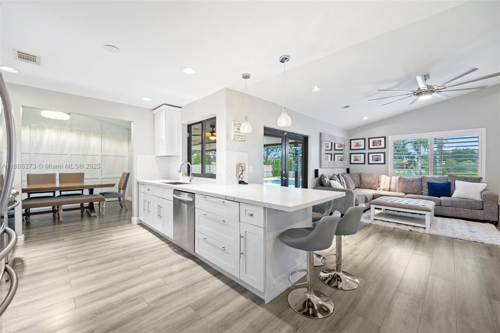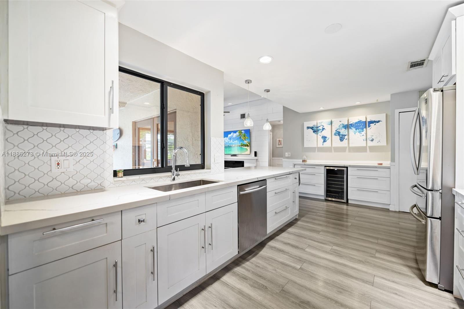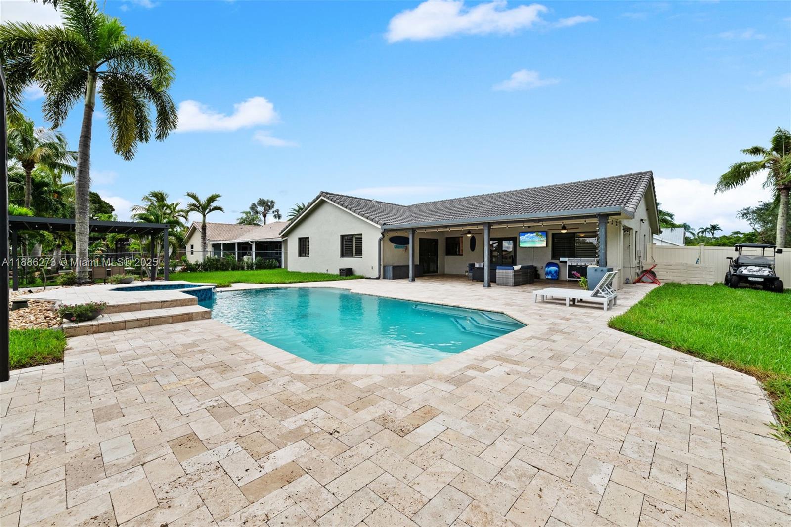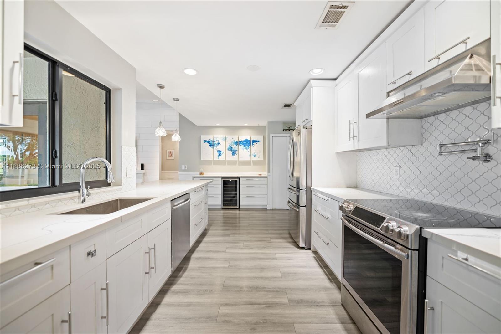Custom lakefront masterpiece in the prestigious Waverly Hundred community! 3BR/2BA on 12,000 sq ft corner lot with vaulted ceilings, LVP flooring, plantation shutters & custom accent wall paneling that elevate every room! Gourmet kitchen with quartz counters, white cabinets, stainless steel appliances, pot filler & wine cooler! Primary suite with barn door entry & spa bath with soaking tub & glass shower! Second bath with custom tile flooring & glass enclosed shower! Large family room with built-ins & fireplace overlooking lake. Garage "car condo" with epoxy floor so clean you can eat off it! Backyard with lush tropical pool over looking lake with 3 covered entertaining areas plus private gated storage area! Barrel tile roof, brick paver driveway, low HOA, A+++ schools!