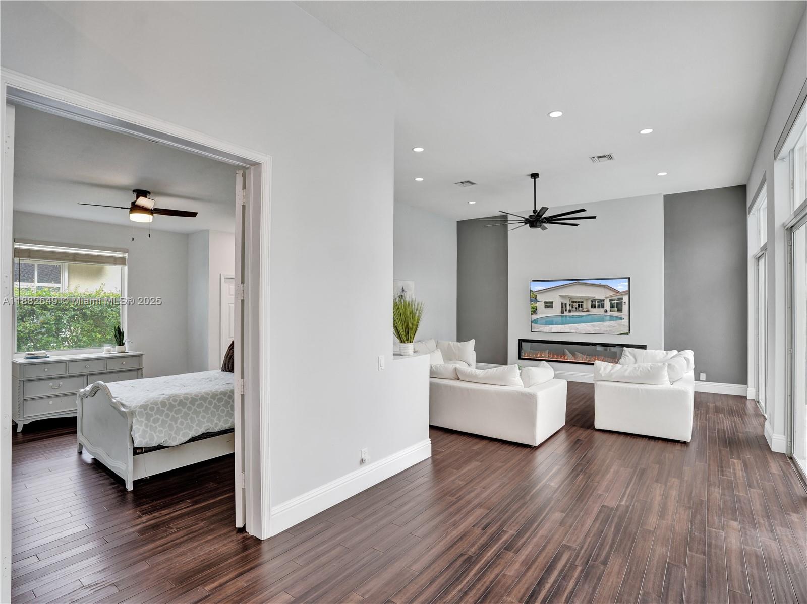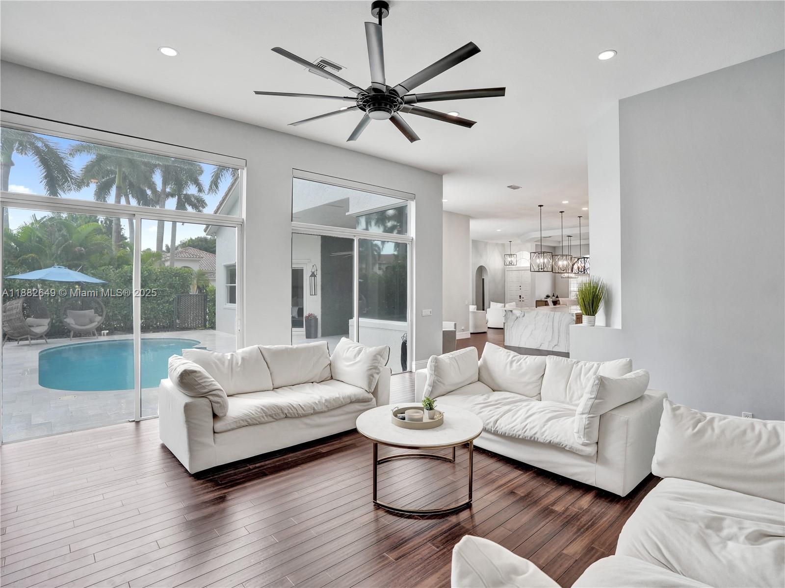 Exquisite 5BD/4.5BA/3CG nestled on a generous 10,000 sqft corner lot in the exclusive enclave of WHCC. Updated open floor plan includes showpiece remodeled gourmet kitchen at the heart of the home w/ huge quartzite island/countertops, high end appliances + eat in nook, custom dry bar w/ wine fridge, Cali Bamboo & Eucalyptus floors, modernized bathrooms, flush LED lighting, electric fireplace + smart electric shades in fam room, 20K designer chandelier in liv room. Additional updates incl new AC (2025), 2nd unit (2022), hybrid water heater (2024), Aug 2019 roof. Heated saltwater pool w/ marble tile deck, pool heater (2025), variable-speed pump (2024). Smart tech includes security cameras, EV charger, and app-controlled shades. Exterior freshly painted (2025). Move-in ready luxury!