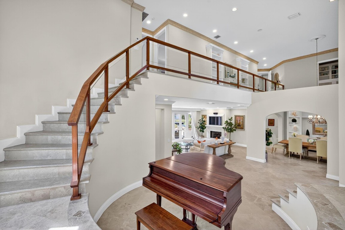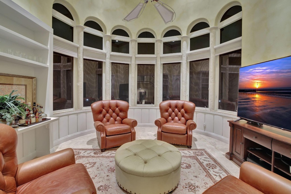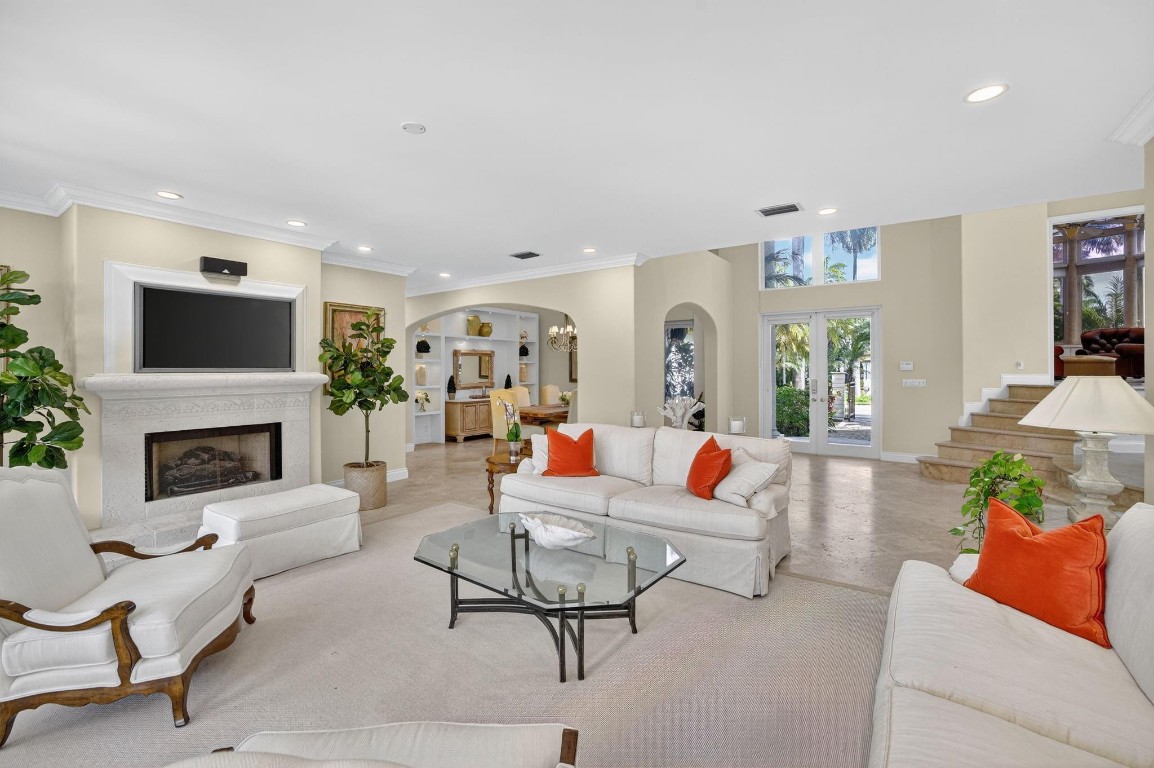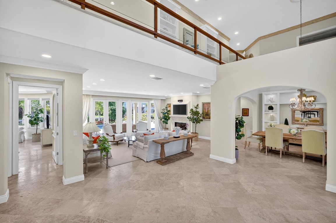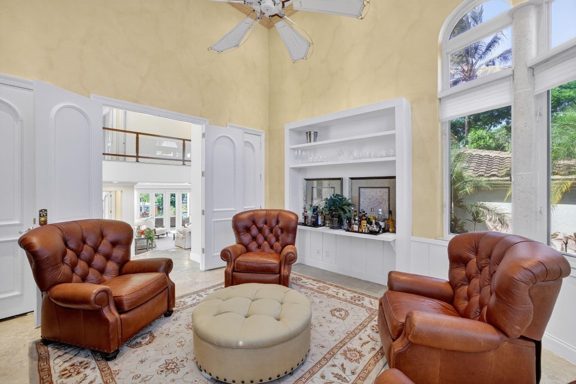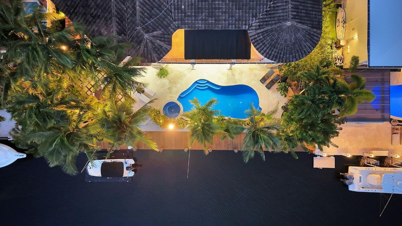 Offered below $300k of October appraised value! 100 ft deep water, walled & gated, island inspired & furnished residence has much to offer. The floor plan is exceptionally flexible with abundant natural light & great entertaining space. Enjoy 2 ground floor bedroom suites. Perfect for entertaining large kitchen/living room, adjoining formal dining room, wine cellar, formal living room with fireplace. Rotunda bar/club room or potential office. 3 bedroom suites upstairs include an extremely expansive primary suite, with private office, gym or third office, separate baths connected with honeymoon shower & large closets. Balcony access. Delightful pool area with cabana bathroom. 3 garage bays & additional guest parking driveway, all walled & gated. Private security also available on this Isle.