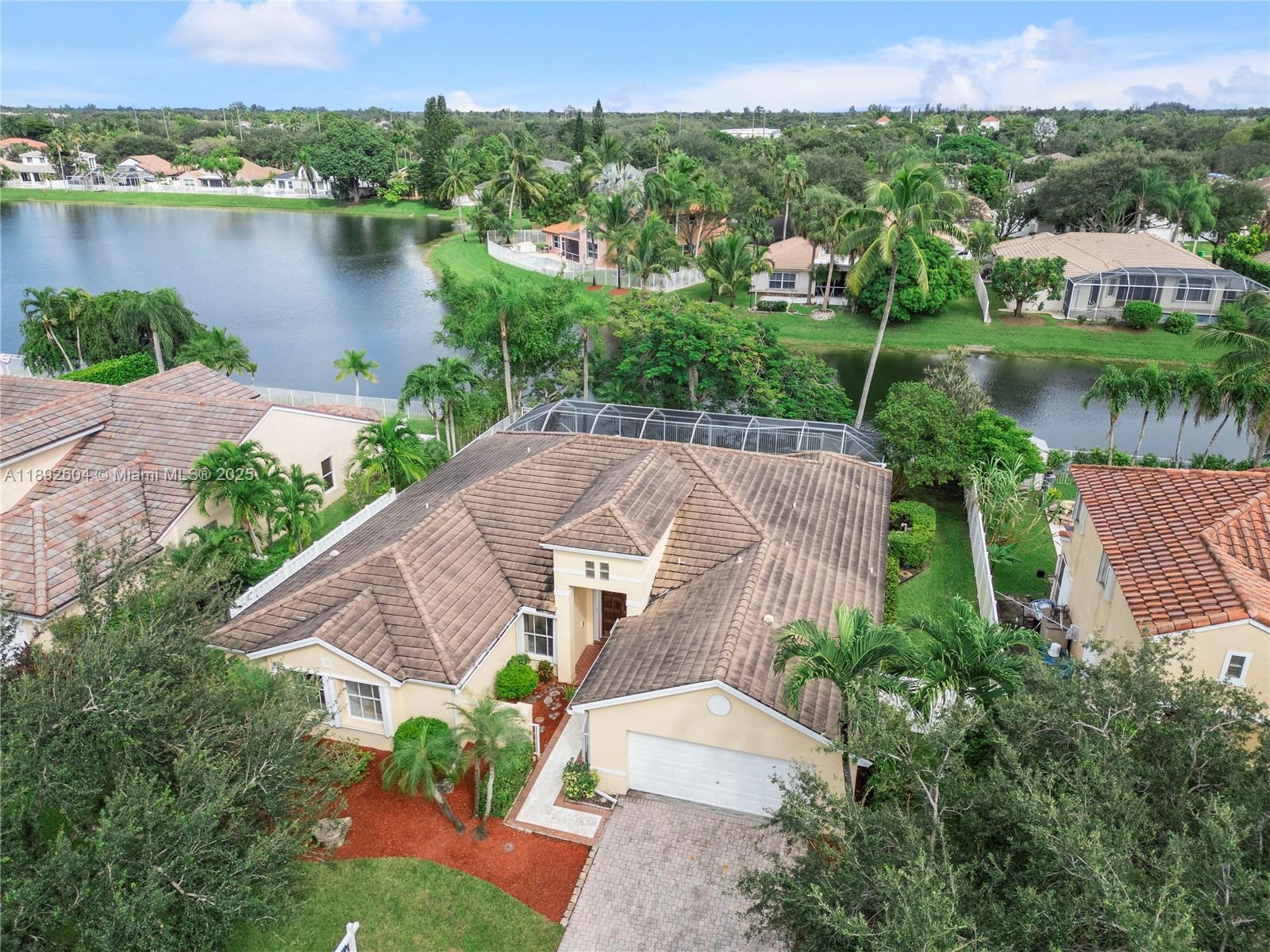 Single-owner 4BR/2.5BA lakefront, pool home w/amazing bones & endless potential! Thoughtfully designed split-bedroom floor plan offers spacious living areas & formal dining room that can easily be reimagined to fit your needs. Oversized primary bedroom w/ views & alcove for sitting area or desk. Beautifully updated pool over looks a serene lake surrounded by mature landscaping, creating a private retreat. Located in a sought after area near highways, shopping, sports/concert venue as well as corporate parks, & even closer distance to gorgeous park w/ splash pad, basketball courts, sports fields, & more to be enjoyed by entire family. Well cared for & ready for your personal touch, this is the perfect canvas to make your own! *The roof was replaced in 2017. *Home has accordion shutters.