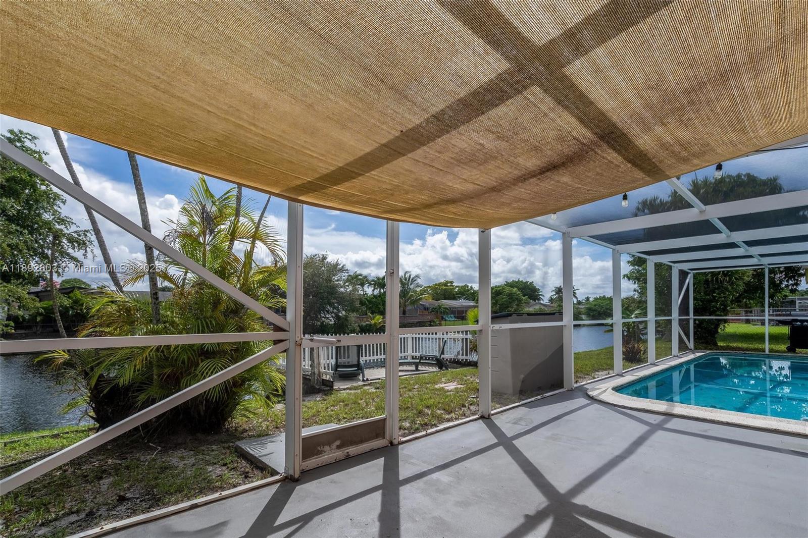 Welcome to your waterfront oasis in Sunrise Golf Village! This beautifully maintained 3-bedroom, 2-bath single-family home offers nearly 2,000 sq ft of living space and sits on a 6,900 sq ft canal-front lot with NO HOA. Enjoy Florida living with a private pool, spacious deck & patio ...perfect for entertaining or relaxing by the water. Interior features include a bright, open layout with ceramic tile flooring throughout, updated kitchen appliances, and a converted garage for extra living space, GAME ROOM, OFFICE or for ypur lovely guest .Accordion shutters ,Located in a quiet neighborhood with a circular driveway, Just a minutes from schools, parks, shopping, and dining. Newer roof, A/C, floor and water heater offer peace of mind. OK to lease . the potencial of this house is unbeliavable.