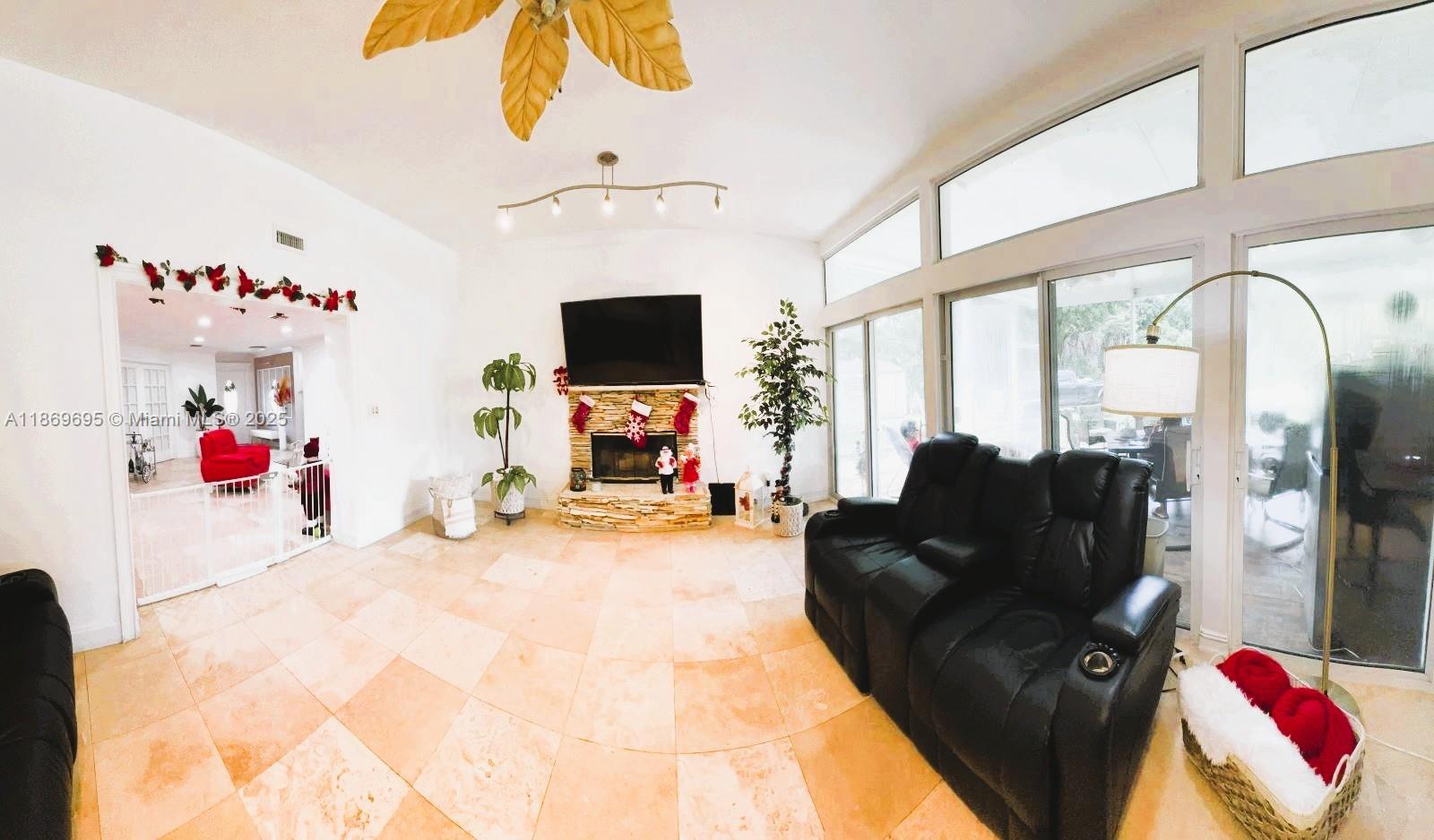 Discover a truly rare gem in Davie, living in the countryside in the city:this 4 Bedrooms, 2 renovates bath spans nearly 1930sqft on an expansive 0.99 acre,no-HOA lot that invites horses, chickens, goats, Rvs and play.You love the chef-ready kitchen with granite counters, stainless steel appliances and a double oven. Enjoy peace of mind with impact glassdoor/windows, a whole-house generator (2018), newer Rheem AC (2016), updated water heater(2018), new roof (2024),water system filter (2025), Septic Tank (2025) new driveway(2024).Luxuriate under the marble floors, crown molding and a wood-burning fireplace. Screened patio, a beautifully manicured backyard, mangos trees, guava,coconuts,anon, complete this private retreat, your perfect blend of elegance, comfort and florida lifestyle!!