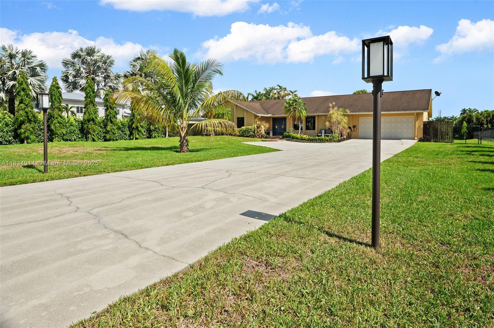 Back in the Market, fell through due to financial circumstances on the buyer's side, the property is back on the market due to no fault of the property or seller. Discover this exceptional opportunity to own a beautifully maintained 3 BED / 2 BATH home situated on a true builder's acre in one of Davie's most desirable areas -- just minutes from Southwest Ranches. Surrounded by lush, mature landscaping, this serene property offers privacy, space, and flexibility for RVs, boats, horses, or future expansions. Spanish tile flooring throughout, a stylish kitchen with granite countertops, and impact windows for peace of mind. Step outside into your personal oasis -- a huge covered patio ideal for entertaining, overlooking a sparkling pool and expansive green space.