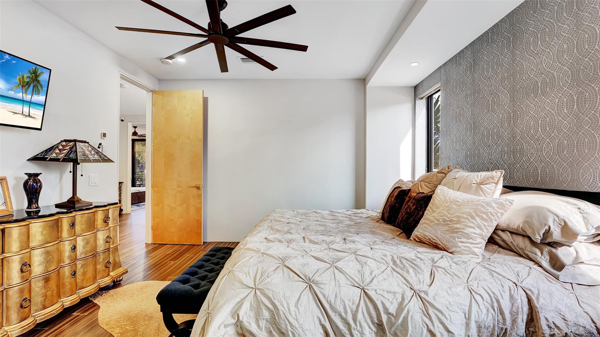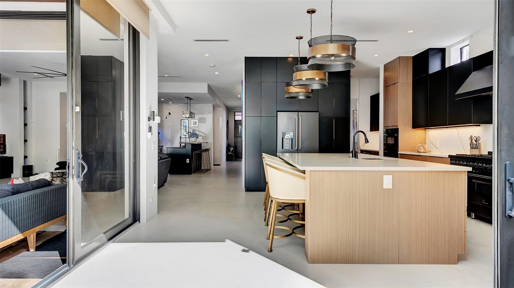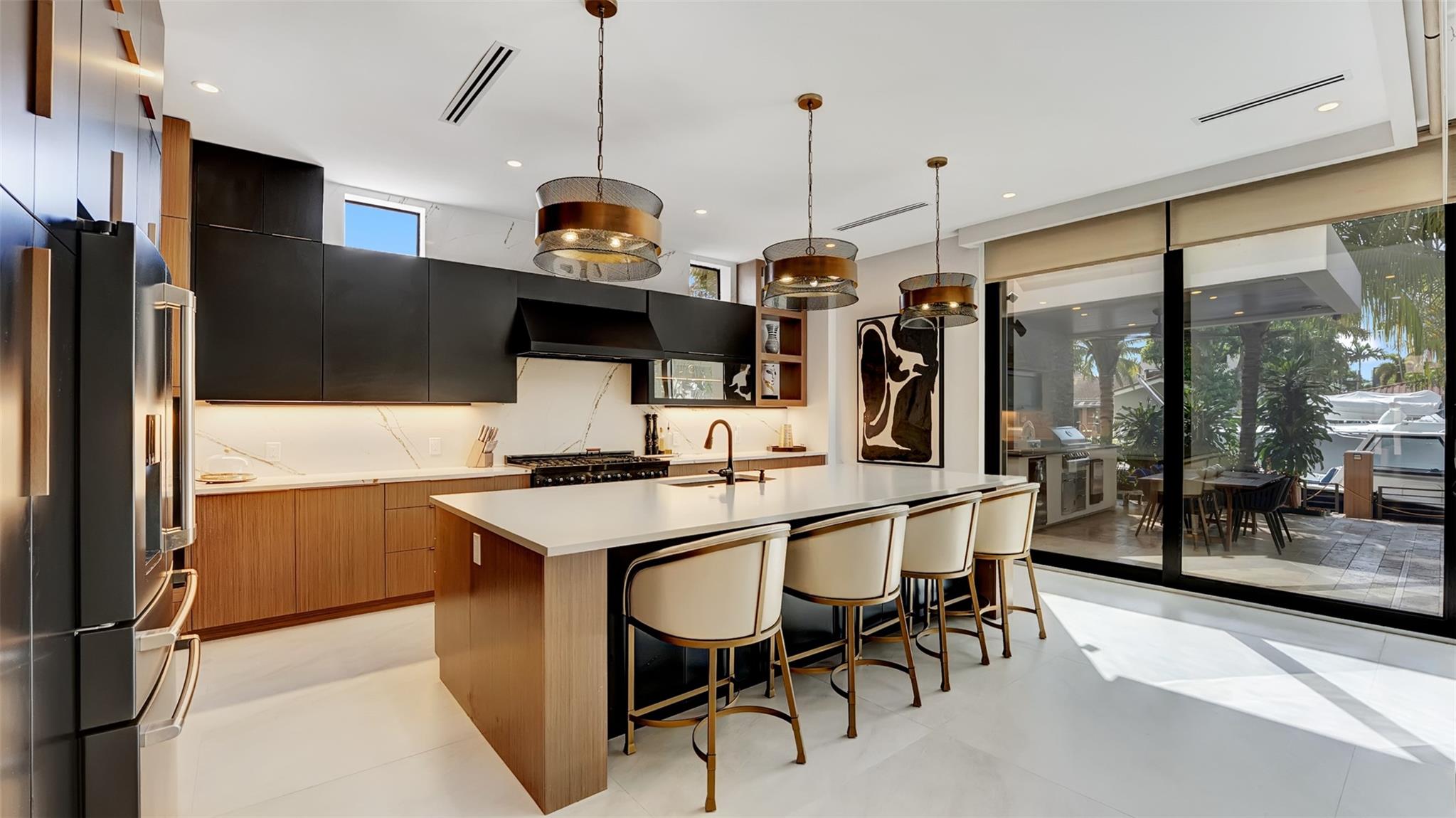 Not your average home on the Las Olas Isles, behind the gates this custom 4-bed, 4.5-bath home spans 4,539 Sqft. Meticulous attention to detail and modern elegance helps define this home, which comes equipped with high-impact windows, 12 camera surveillance system, 48x48 porcelain tiles, quartz counters, 8.5 Tons of AC systems, low E windows with bronze tint a floating staircase over a 170-bottle wine cellar, a bar for entertaining, the kitchen has a huge island, 6 burner gas range that overlooks the family room that flows outside through the 11’ pocket sliders to a screened Lani. Outside you can entertain with your pizza oven & grill, pool and jacuzzi, the 50’ dock is well equipped with 30/50 amp. smart illumination by Lutron & Dals. Live luxuriously in this exquisite Idlewyld residence.