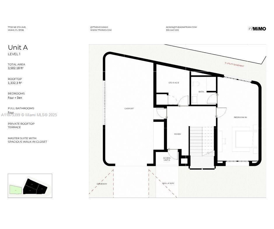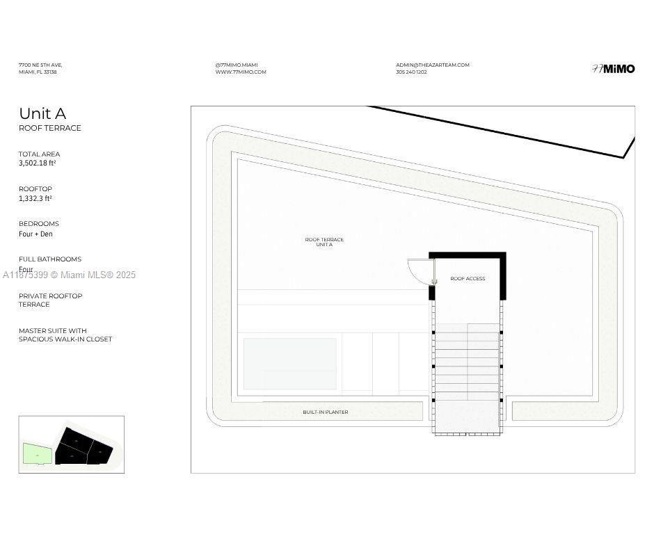 Now taking reservations for pre-construction delivery set for 2027. This new construction townhome is part of 77 MIMO, a boutique collection of four luxury residences in Miami’s historic Palm Grove. Contemporary design meets timeless charm with stucco façades, rounded corners, and expansive windows inspired by Art Deco and Spanish Eclectic styles. Unit A offers 3,502 SF under A/C plus a 1,332 SF private rooftop terrace. The layout includes 4 bedrooms, 4 full baths, and a den. Interiors feature 10’ ceilings, wood floors, premium Reform kitchens, walk-in laundry rooms, and spacious primary suites. A rare opportunity to secure luxury living in one of Miami’s most vibrant neighborhoods.