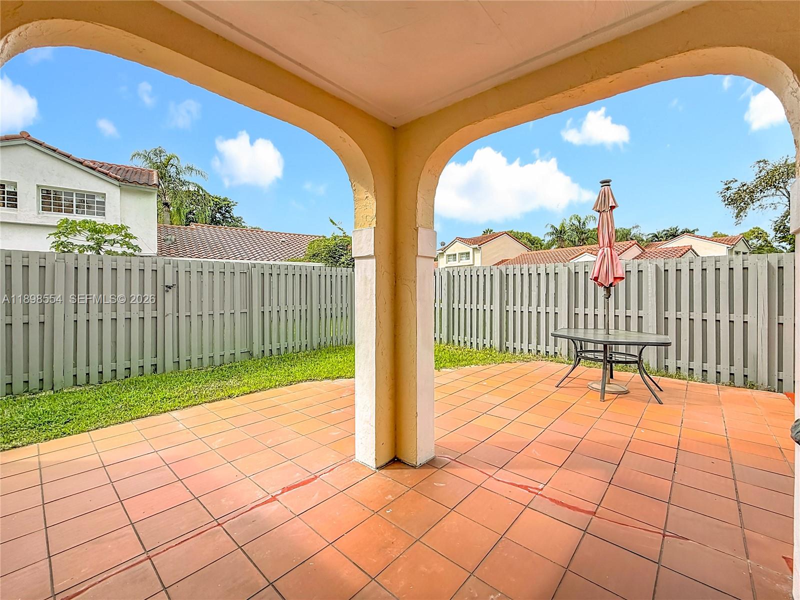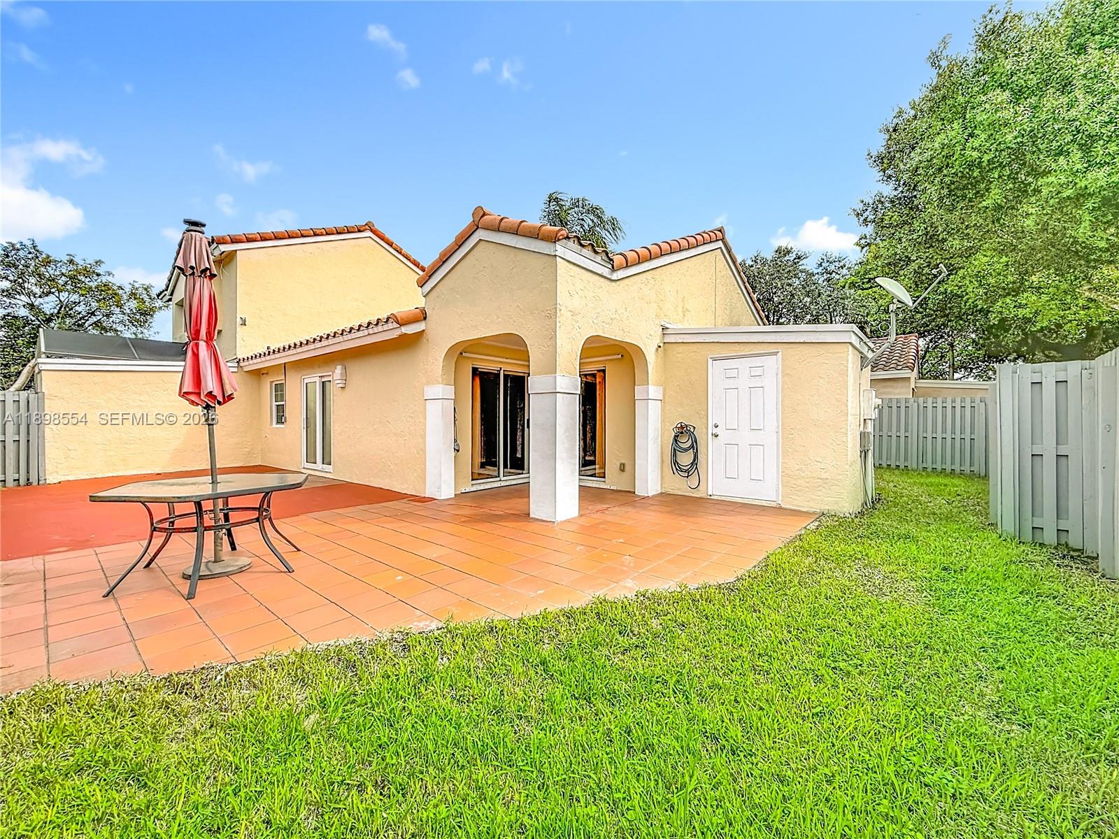 Located in the highly sought-after City of Weston, known for its exceptional quality of life and top-rated schools, this updated 2-bedroom, 2-bath corner villa offers comfort and modern style on one floor. Features include updated kitchen and bathrooms, fresh paint, marble floors throughout and hurricane-impact windows and doors, providing peace of mind. Enjoy the expansive fenced patio and green area ideal for outdoor relaxation, play, or entertaining. The generous outdoor space makes it easy to unwind or host gatherings in privacy and comfort. Small enclosed storage area. Prime location close to shops, restaurants, & grocery stores. Community amenities include a well-maintained pool. Perfect combination of location, comfort, and value in one of South Florida's most desirable communities.