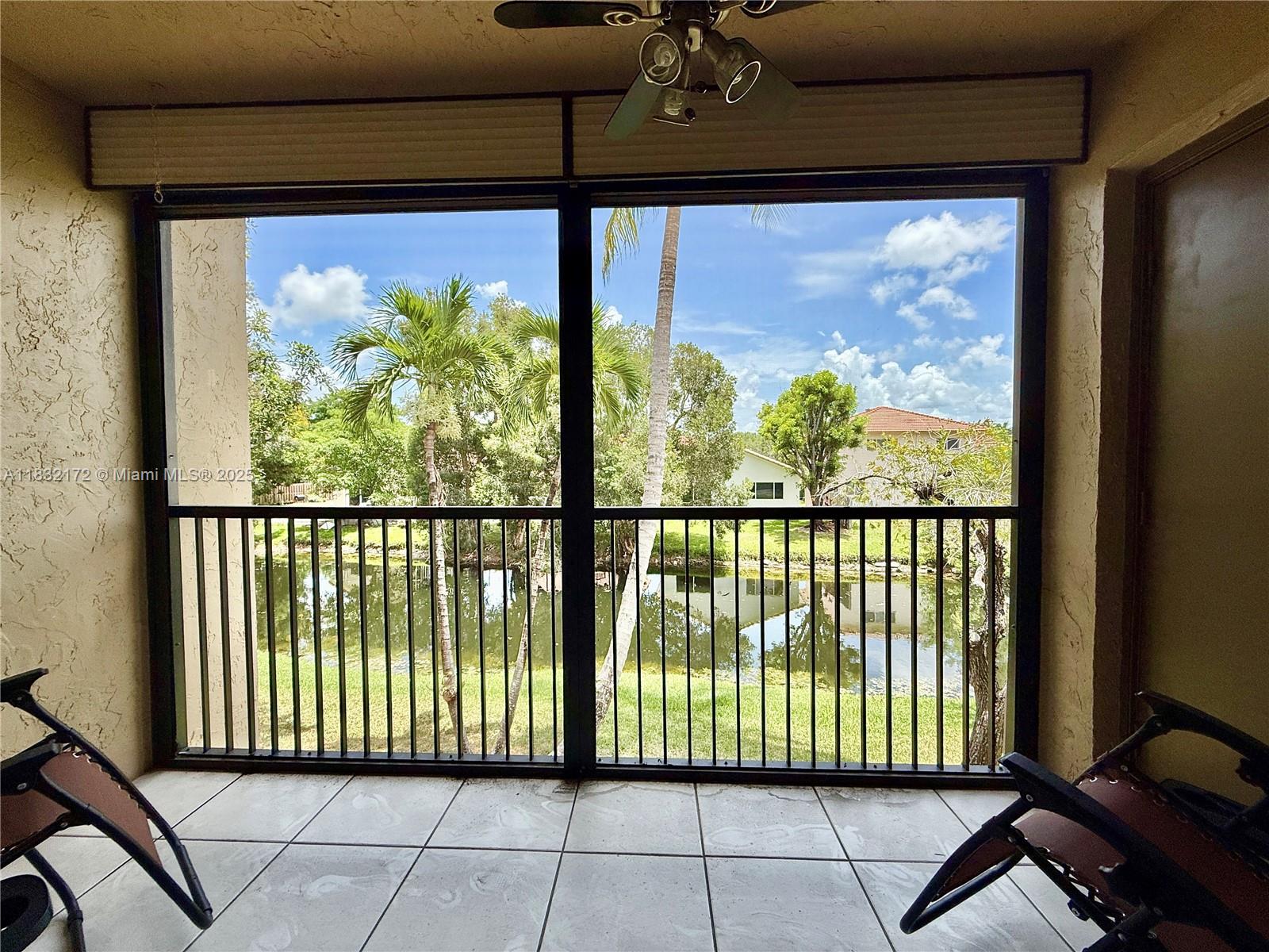 Spacious & impeccably maintained 2BR garden apartment on the 2nd floor with tranquil water views. Features tile & hardwood floors, Impact Windows & Entry Door + Accordion Shutters, updated baths, A/C, water heater, appliances & electrical panel. Ceiling fans & room-darkening pleated blinds in every room, stackable washer/dryer, screened porch & balcony with storage closet. One assigned parking spot in front + guest spaces. Maintenance dues include water, cable TV & Internet! Association finances in order, and the **40-year milestone inspection is complete** Enjoy a community pool & full access to Bonaventure Town Center Club--gym, tennis, racquetball, bowling, skating, basketball, 2 pools, kids' splash area & more! Leasing is allowed after 1 year of ownership. **GOT CASH? MAKE YOUR OFFER**