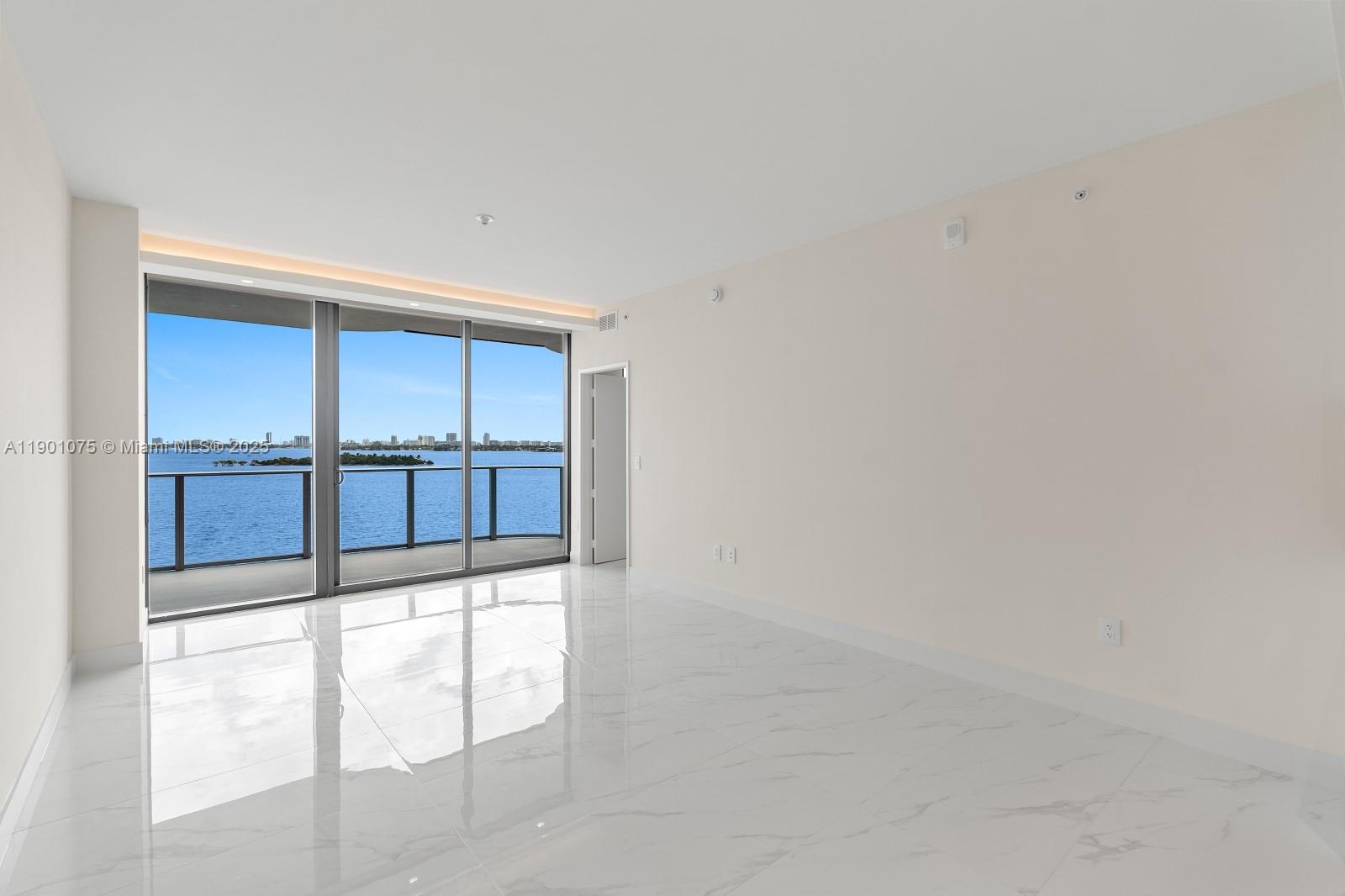 Elevated luxury in this waterfront 1BR+Den, 2BA residence at Aria Reserve. Premium upgrades include custom soffit lighting throughout, motorized shades in the primary bedroom, premium roller shades in the living area, and fully customized built-out closets in both the primary bedroom and den. Floor-to-ceiling windows, open layout, modern kitchen with Thermador appliances and quartz countertops. Flexible den ideal for office or guest room. Private balcony with sweeping views of Biscayne Bay. Aria Reserve offers 2+ acres of world-class amenities: bayfront and rooftop pools, spa, fitness center, co-working space, theater, tennis/basketball courts, café, and 24/7 concierge. Prime Edgewater location near Design District, Wynwood, Midtown, Brickell, and Miami Beach.