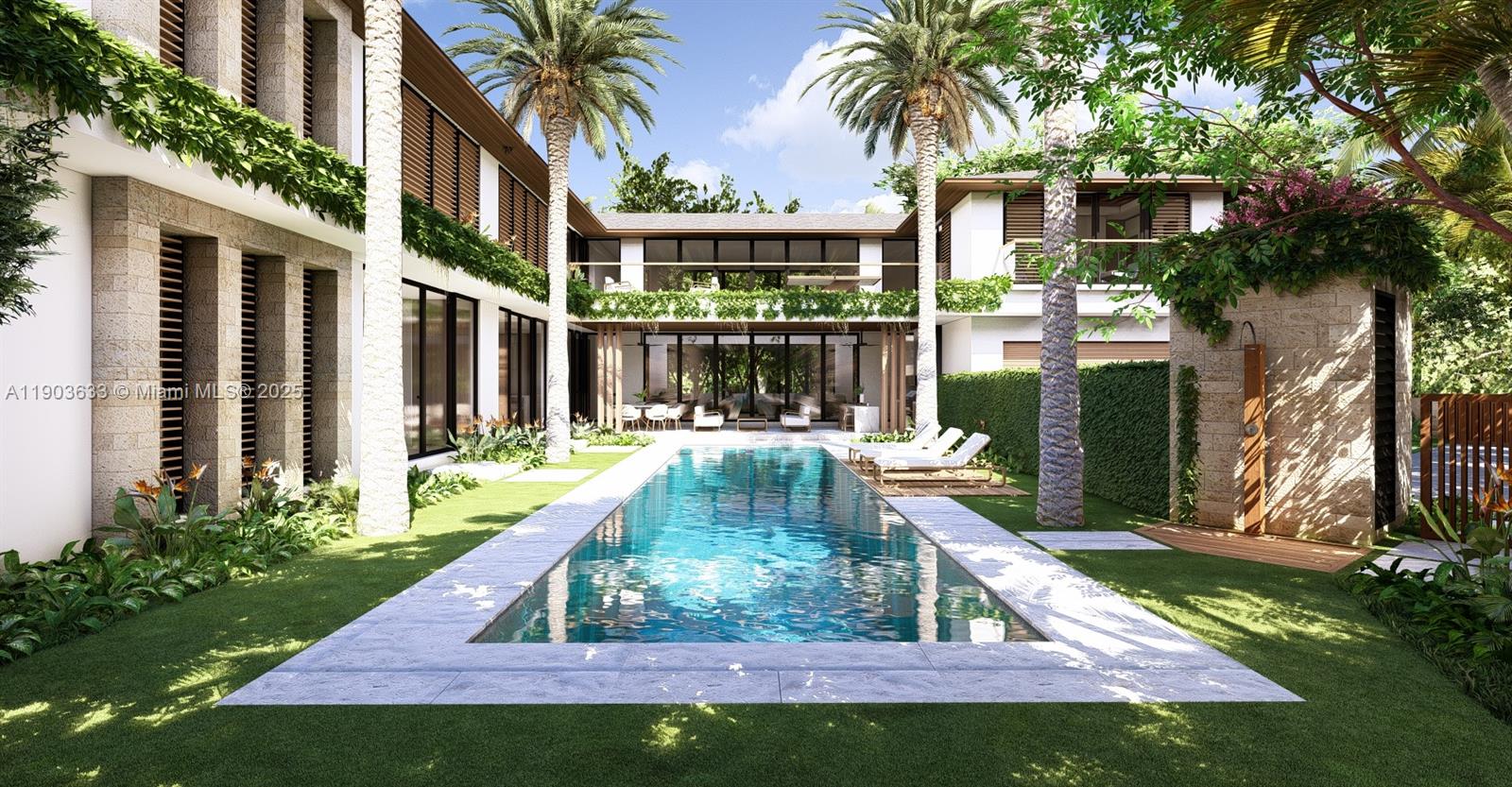 Impeccably designed Baliense Wellness Retreat residence offering exceptional privacy, masterfully crafted by architect Cesar Molina. Set within guard-gated Bay Point Estates, this 6-bed, 7-bath modern tropical villa offers 8300 SF total (7300 SF under AC). Features include Gaggenau appliances, an Italian kitchen, marble and oak flooring, Lutron Palladiom lighting, Control4 automation, and PGT impact windows. Zen garden, wellness quarters, and lush modern tropical landscaping. An oasis in the middle of the city. Walking distance to Design District, upscale dining, and entertainment. TO BE COMPLETED Q1 2027 ***** UNDER CONSTRUCTION****