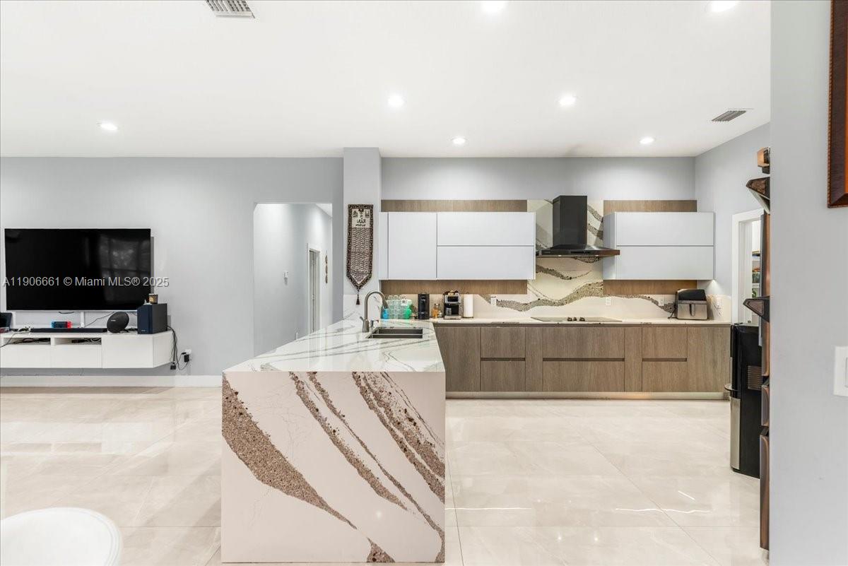 Wonderful, secure and manicured maintained beautiful Imagination Farms. Move in ready 4 bedroom, 3 bath and 3 car garage. This amazing Cambridge model features 4 bedrooms and 3 full bathrooms sitting on 3 QUARTER of a acre Lakefront lot. Large circular driveway upgrade can hold up to 8 vehicles! Foyer leads to an open floor plan with high ceilings. Huge master bedroom with walk in closets and master bath with dual sinks, shower and jetted Jacuzzi tub.