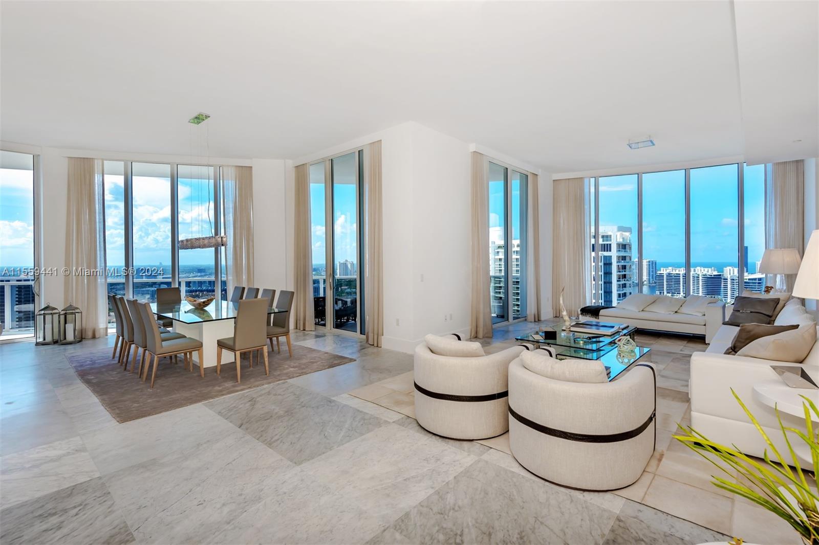 Turnkey +6000 SQ FT Penthouse 4 Full Suites 6.5 Baths at the Bellini Williams Island. +80 Acres of nature surrounded by water, marina, and the bay. Ocean views in 180 degrees of absolute beauty and an outstanding life-style to your family. Restaurants, nature pools, 16 tennis courts and 4 pickleball courts, spa, gyms, so much more?12 Feet Ceiling, +6000 Sq Ft Italian Marble flooring. An incredible Master Suite, his and hers walking closets and bathrooms. Italian Miele kitchen appliances, private shuttle bus, park, private marina slips on site.