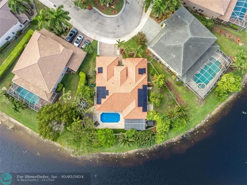 Panoramic Wide Water Views from this stunning Oversized Cul-de-Sac Lot, In the highly sought-after Savanna 24/7 gaurd gated community. Unparalleled Community Center w/ water slide, multiple pools, mini golf, grill, entertainment rooms, ball court & more! New Roof 2019. The floors, kitchen, & baths upgraded in 2020. Accordion Shutters. TROPICAL PLANTS GLORE. Orchids, mango, papaya, coconut, avocado & jack fruit, just to name a few. High Ceilings. New washer/dryer. A/C (2022). Solar panels installed in 2021 produce 11.6kw. Amazing outdoor area with/ a stunning kitchen, built-in BBQ, hibachi, fridge, table pergola w/ fans, a 2nd pergola as a solarium, and complete with surround added system. Automatic mosquito misting system. Located in CYPRESS BAY DISTRICT. A true entertainers paradise!