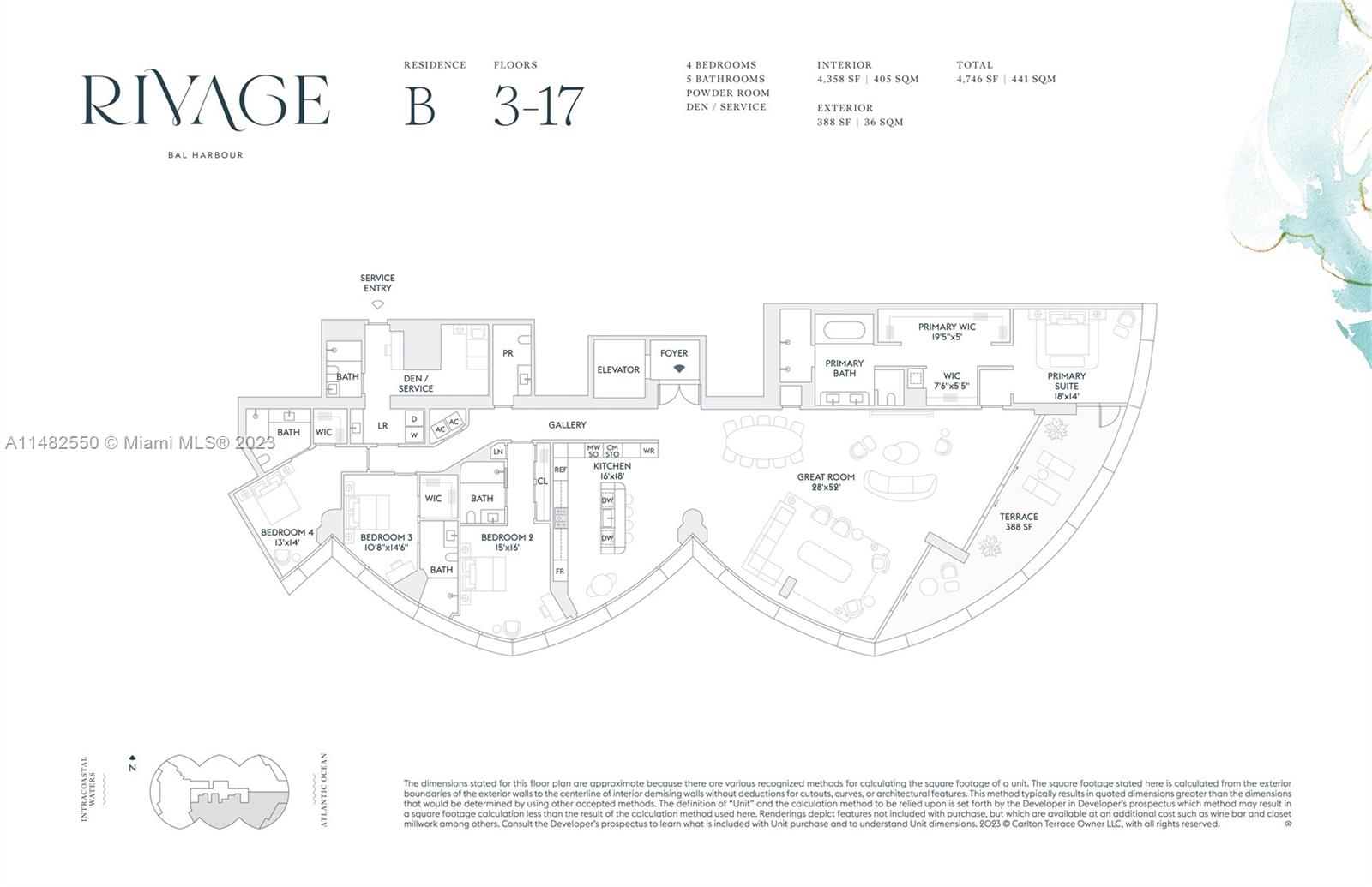 Designed by renowned architecture firm S.O.M., Rivage Bal Harbour is perfectly positioned on the most beautiful stretch of sand in the country. Steps from Bal Harbour Shops, owners will enjoy the best of this exclusive beachfront enclave with residents-only amenities including oceanfront dining, two pools, beach service, cocktail lounge, padel and pickleball courts, and spa with sauna, hammam, hot/cold plunge pools. Residences, at no more than three per floor, are reminiscent of private homes with gracious, light-filled floor plans, oversized primary suites, deep terraces for entertaining, private elevators, and enclosed two-car garages. Bespoke kitchens, exquisite bathrooms, and fully finished wardrobes are designed by Rottet Studio with impeccable attention to detail.