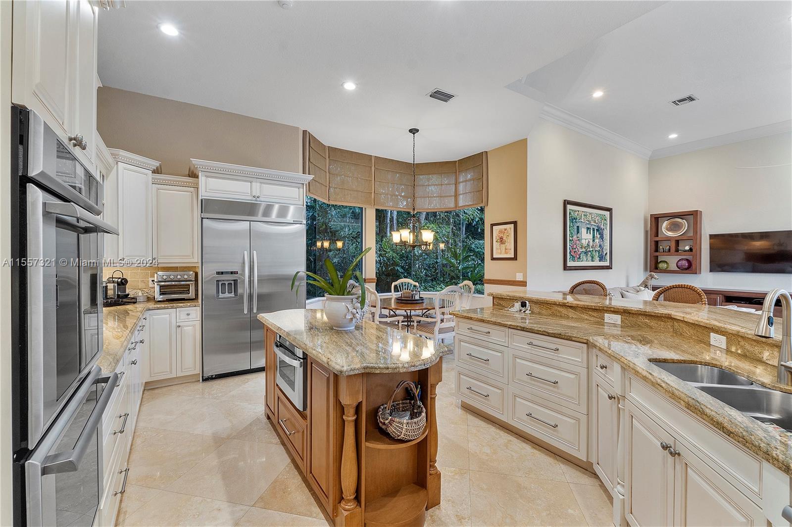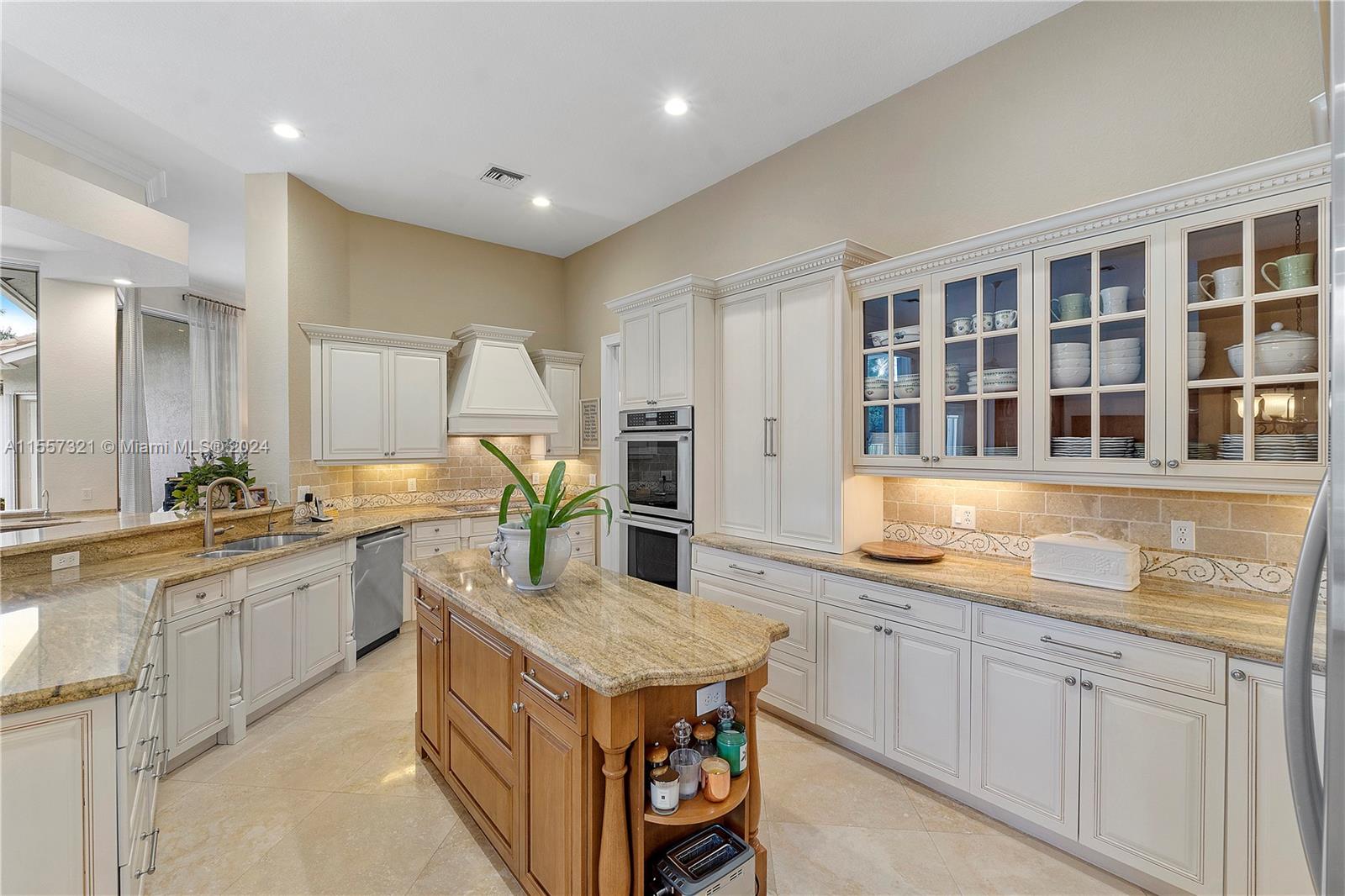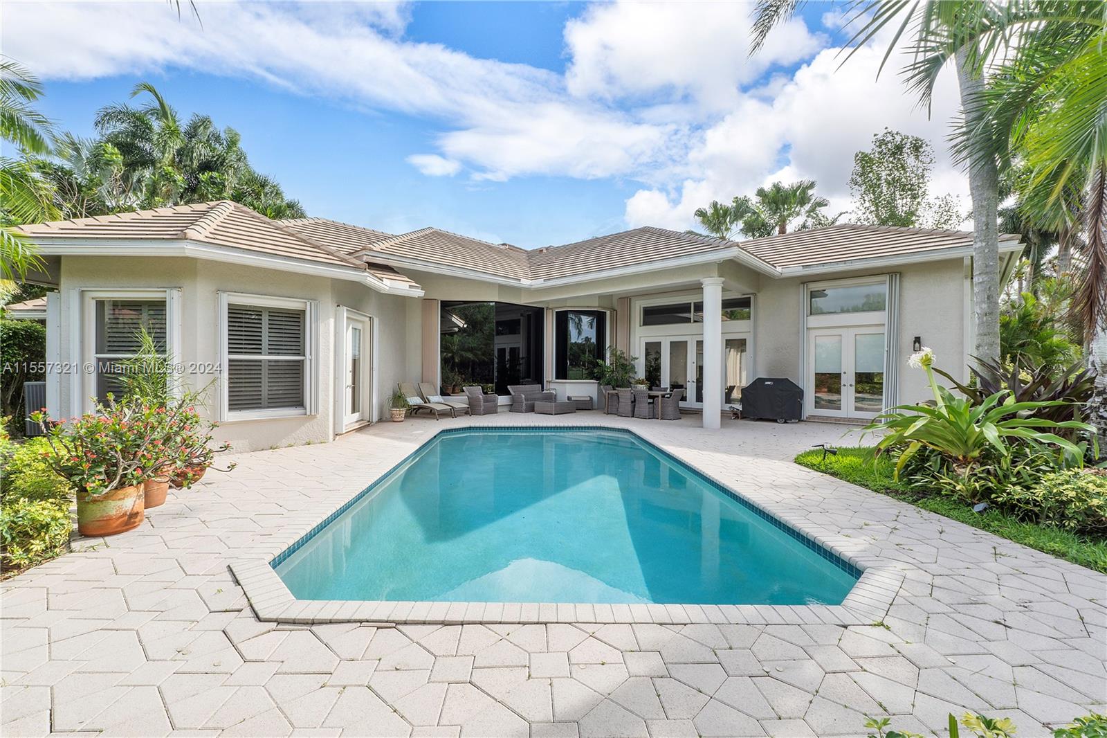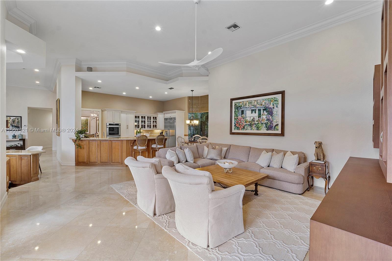 Welcome to your luxurious retreat in the rarely available "Princeton" subdivision of Weston Hills Country Club! This Pristine and Stunning home offers a triple split floor plan with 5 bedrooms PLUS office/den and 4 1/2 baths. Features include: marble floors through-out living areas, volume ceilings with gorgeous crown moldings & LED lighting, formal dining room, formal living room with wet bar & a beautiful updated kitchen with center island, top of the line appliances & breakfast area. In addition, primary suite with sitting area, spa-like bath, & two spacious walk-in closets. Enjoy the relaxing outdoor area with a covered patio, heated pool, lush landscaping & vast golf course views! Newer Roof (2019) & a grand circular driveway with 3 car garage!