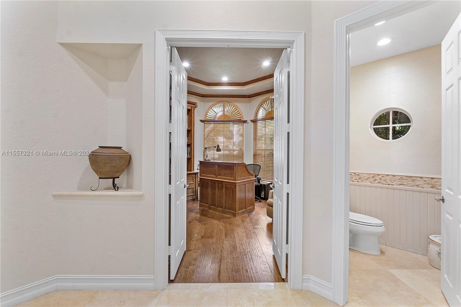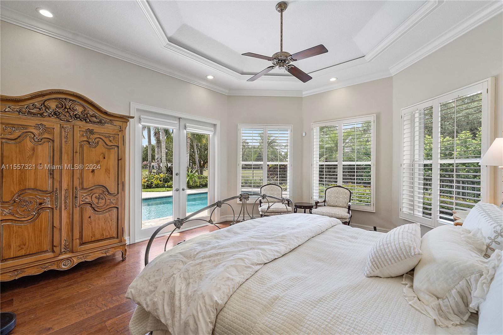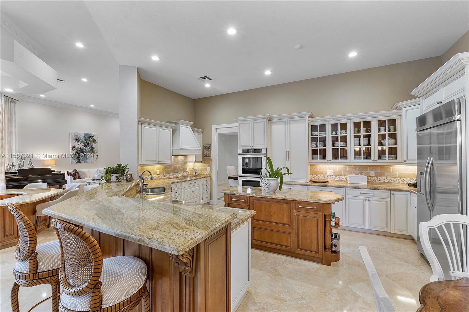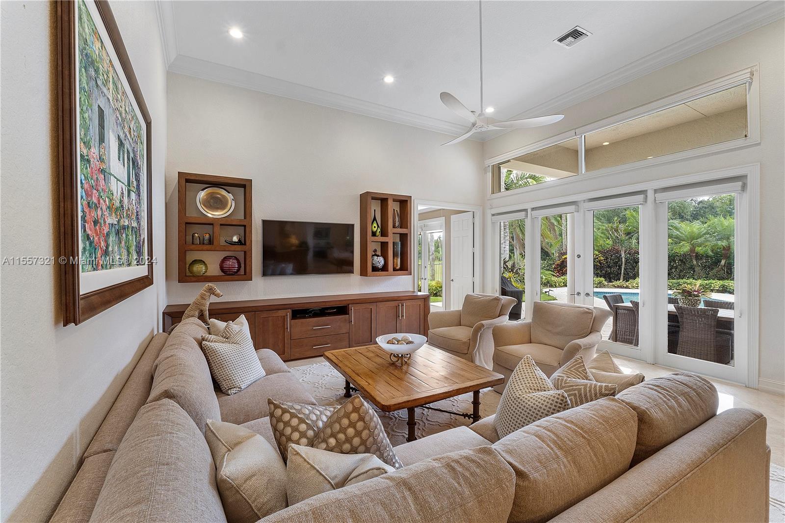 Welcome to your luxurious retreat in the rarely available "Princeton" subdivision of Weston Hills Country Club! This Pristine and Stunning home offers a triple split floor plan with 5 bedrooms PLUS office/den and 4 1/2 baths. Features include: marble floors through-out living areas, volume ceilings with gorgeous crown moldings & LED lighting, formal dining room, formal living room with wet bar & a beautiful updated kitchen with center island, top of the line appliances & breakfast area. In addition, primary suite with sitting area, spa-like bath, & two spacious walk-in closets. Enjoy the relaxing outdoor area with a covered patio, heated pool, lush landscaping & vast golf course views! Newer Roof (2019) & a grand circular driveway with 3 car garage!