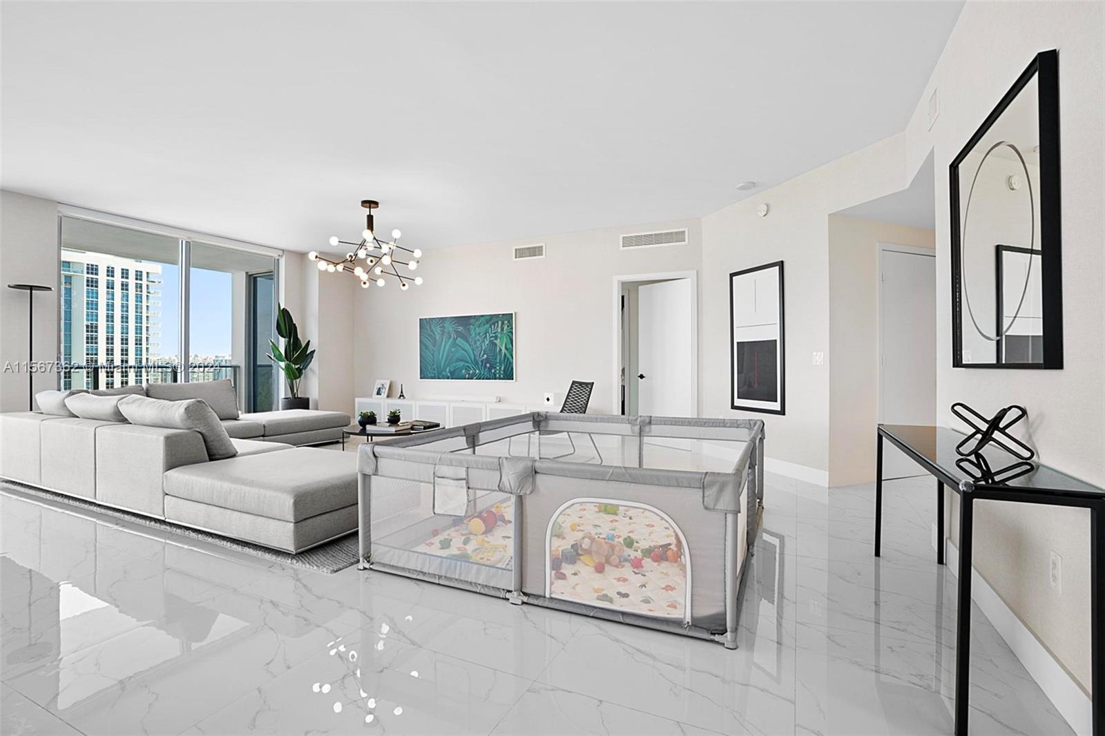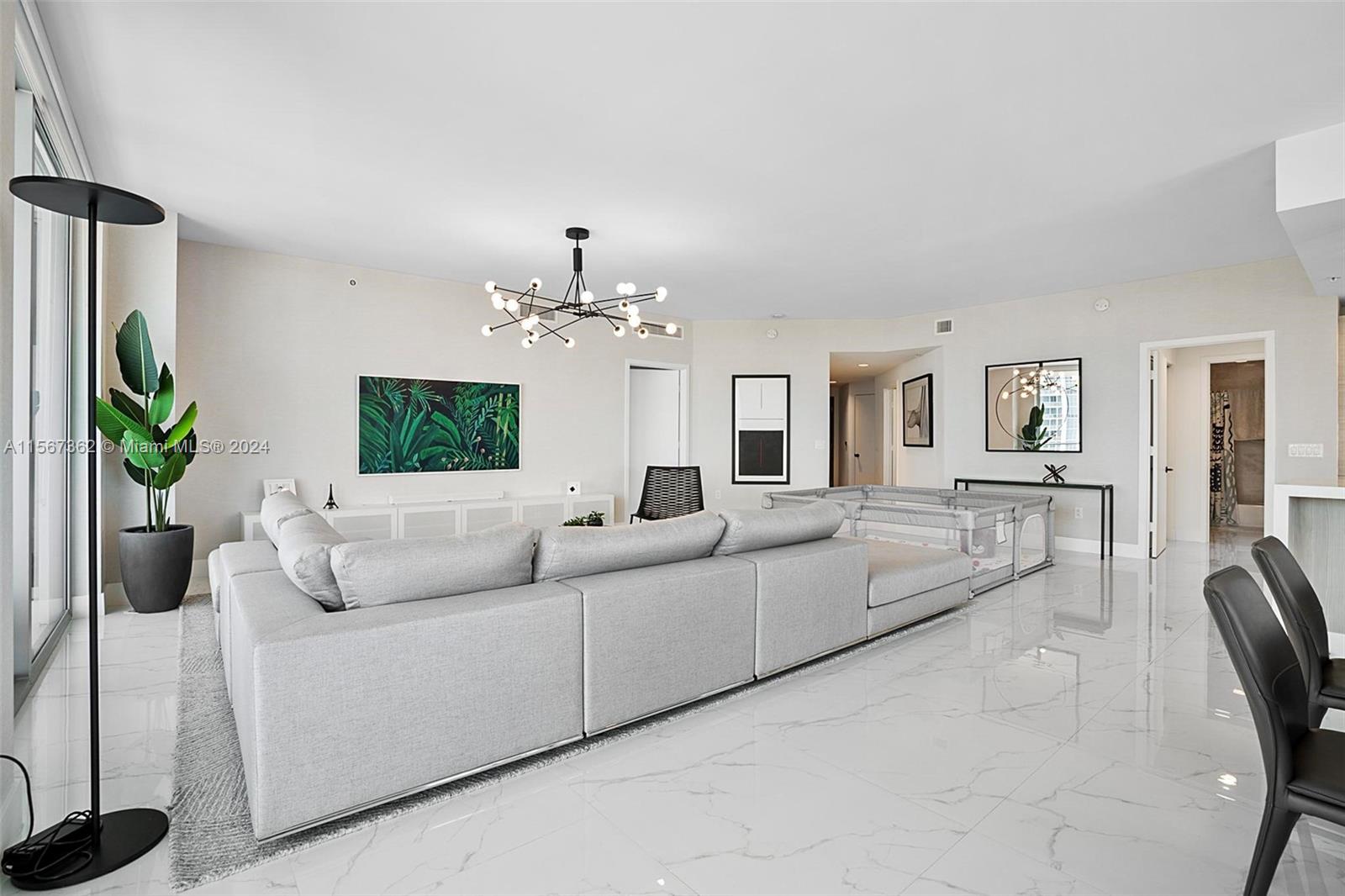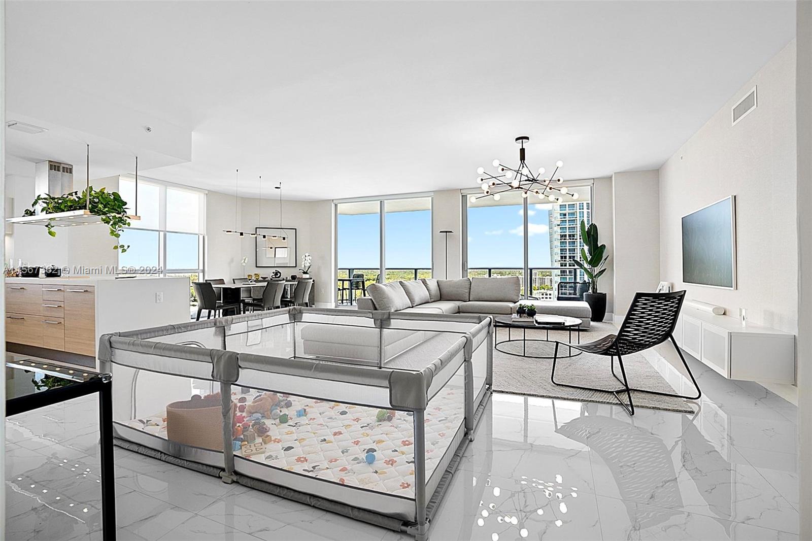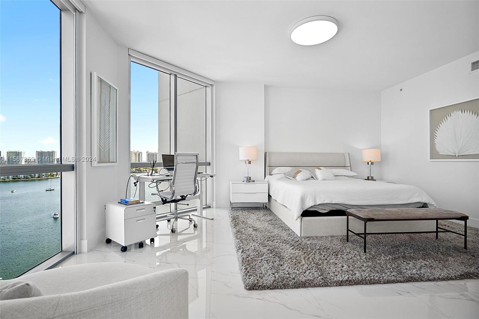 Marina Palms South Tower, Beautiful 3BA/2.5BA (den was converted into a bedroom) unit features porcelain floors, high end finishes throughout, subzero appliances, top of the line bathrooms fixtures and impressive bay and city views from every room. World class amenities include Pool, State of the art spa and fitness center, club room, kids' room, business lounge, marina, water sports gear at no costs (kayak, paddle boards) and more.