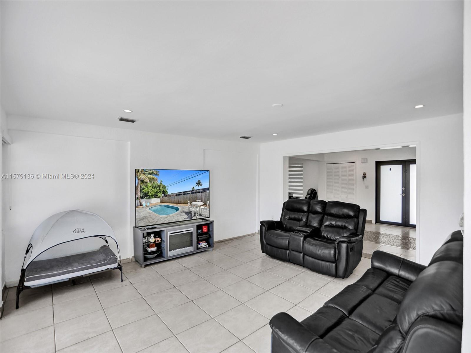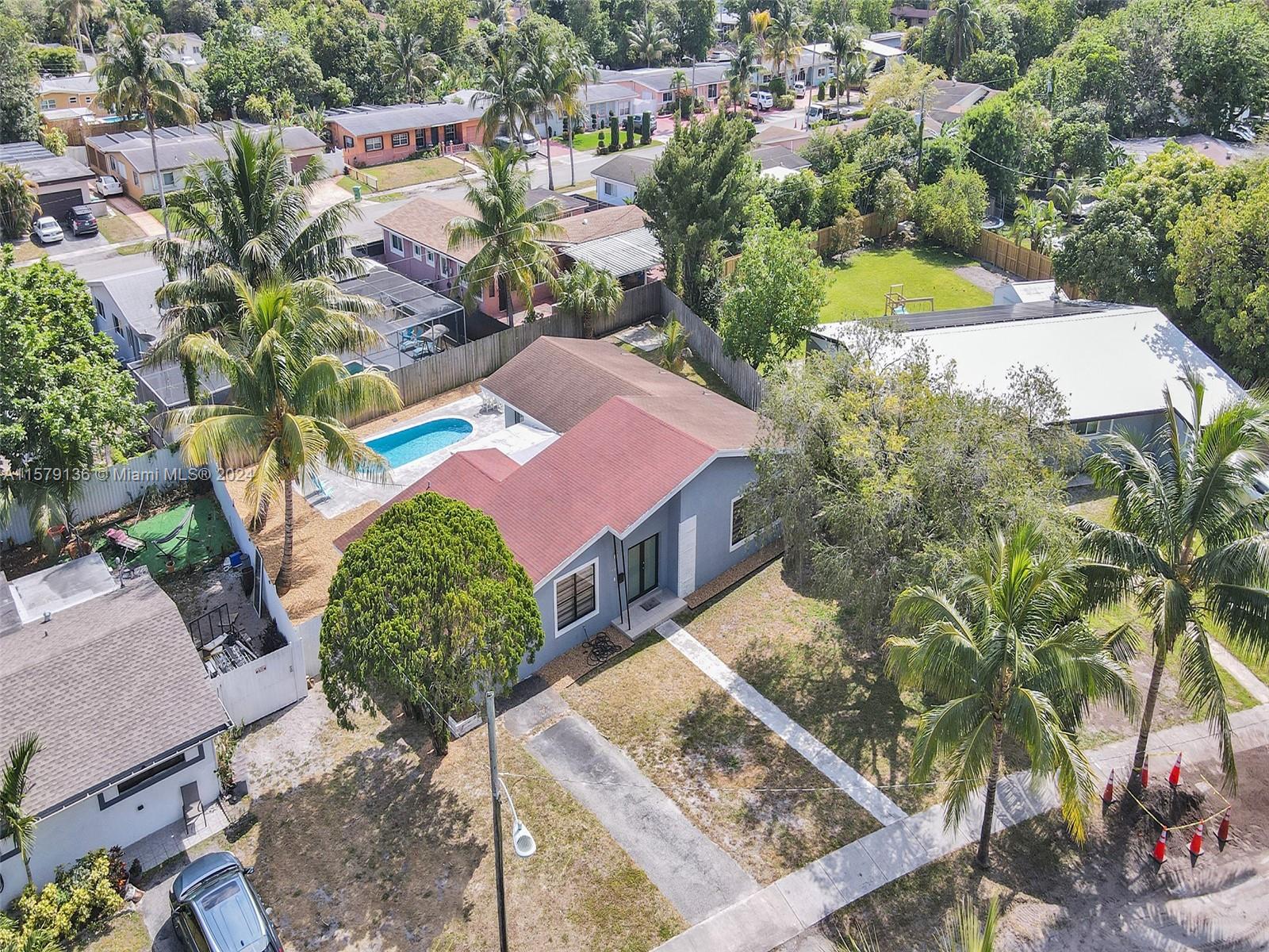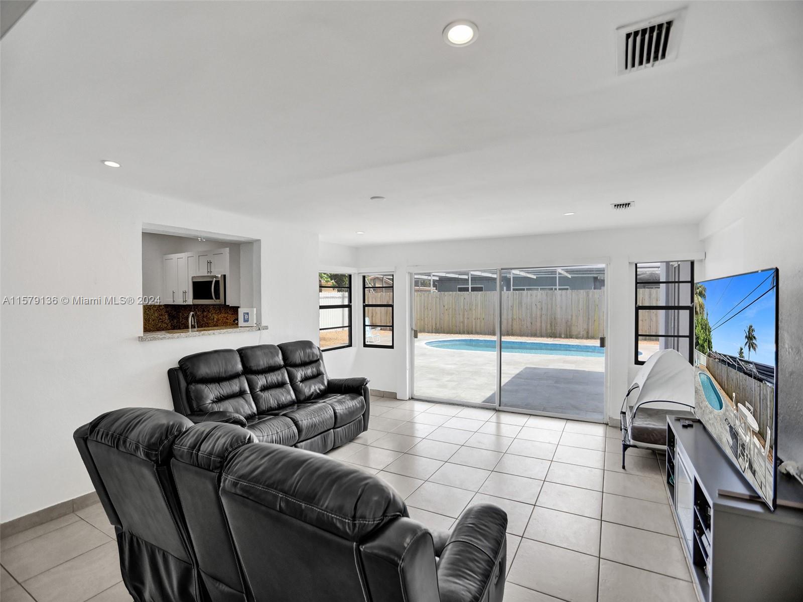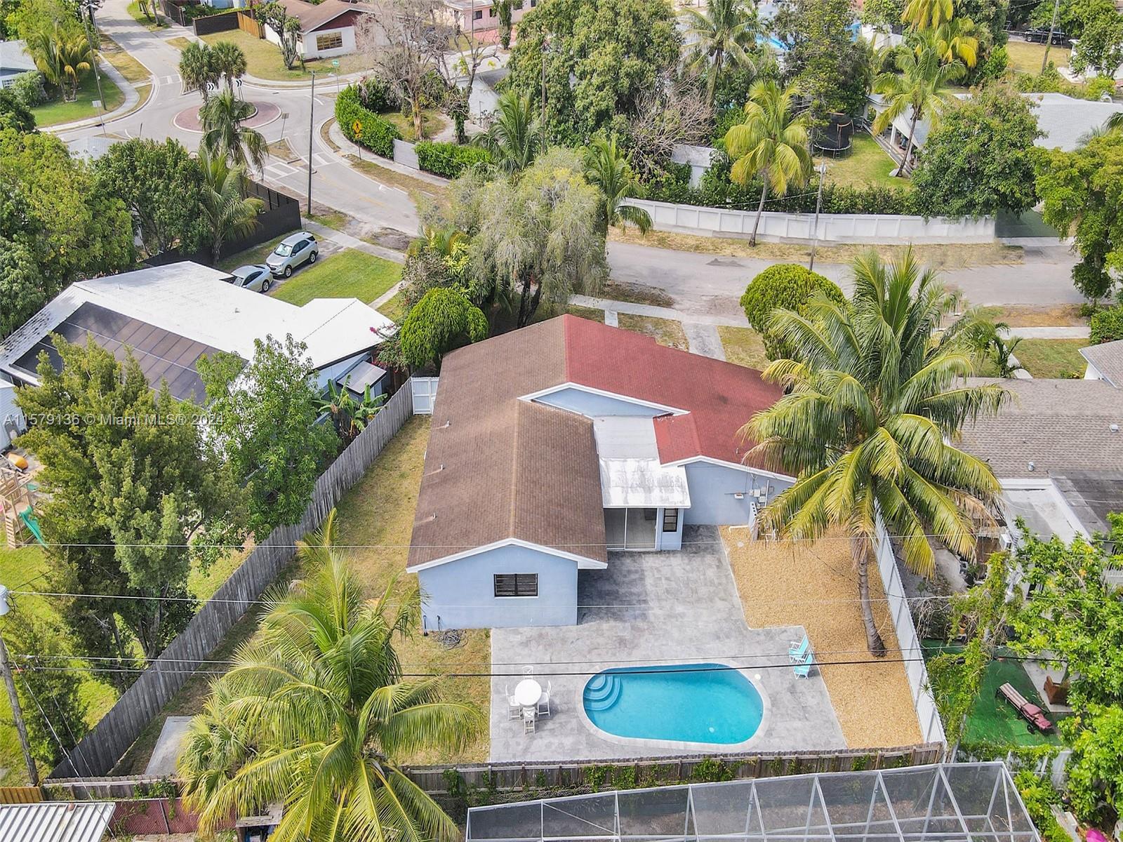 This stunning 4-bedroom, 2-bathroom home boasts a refreshing pool, hurricane-impact doors, and plenty of parking space. This home has 2,169 SQFT of living space and sits on a large 10,671 SQFT lot. The updated kitchen with white cabinets, double sinks, stainless steel appliances, and granite countertops is a chef's dream. Recessed lighting adds a sophisticated touch to the living and dining rooms, while the den provides ample space for entertainment. The outdoor area features a pristine pool, paved patio, palm trees, and a large grassy yard. Proximity to parks, great schools, grocery stores, Aventura Mall, and the beach make this home the ultimate in comfort, convenience, and luxury living.