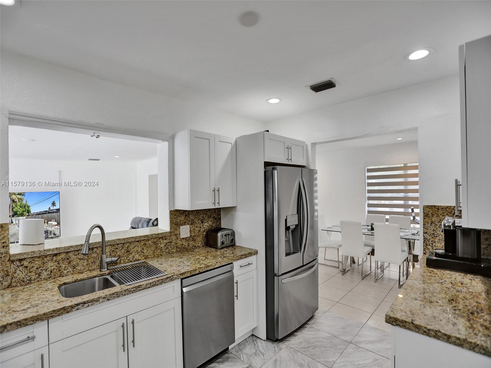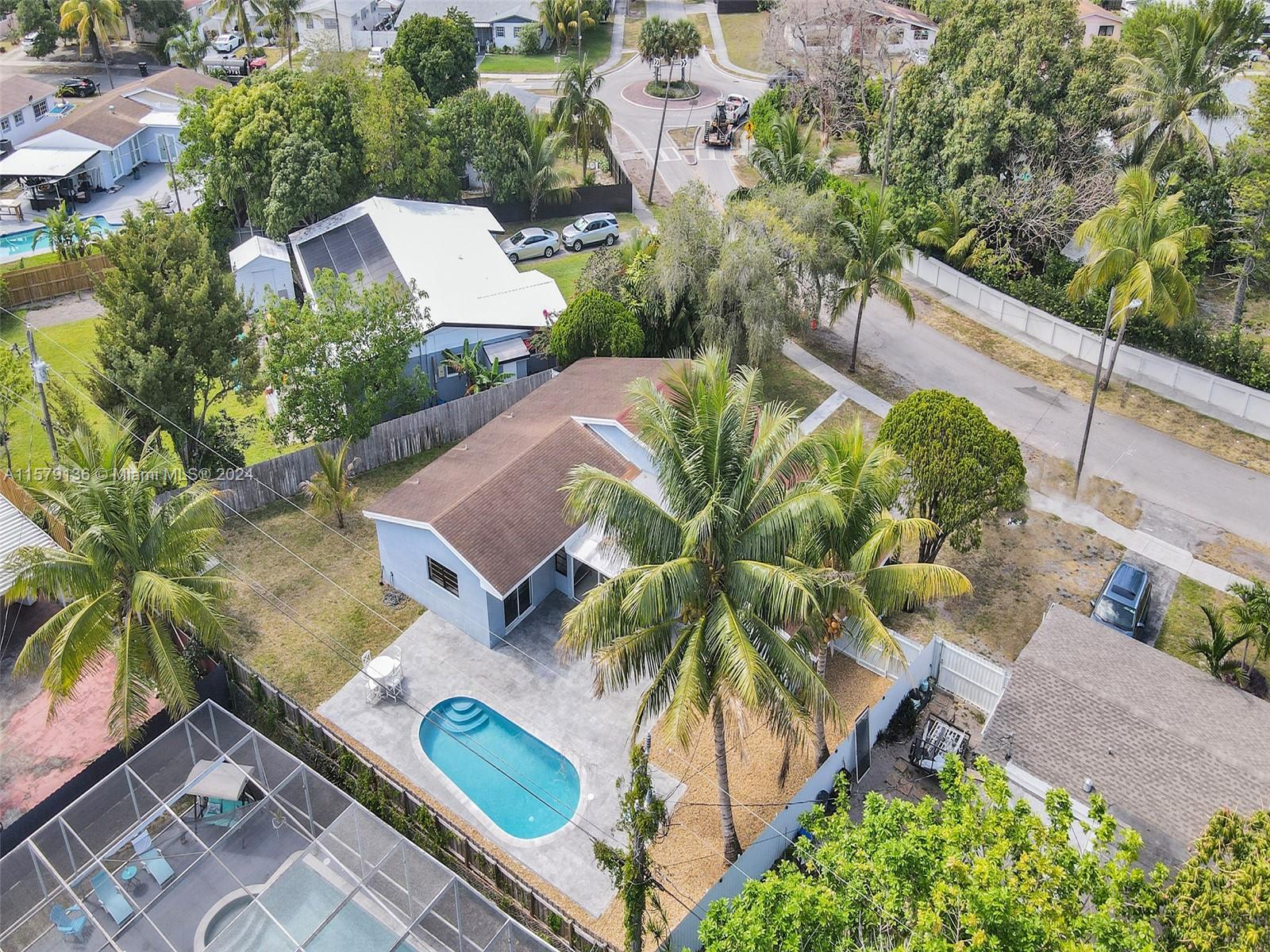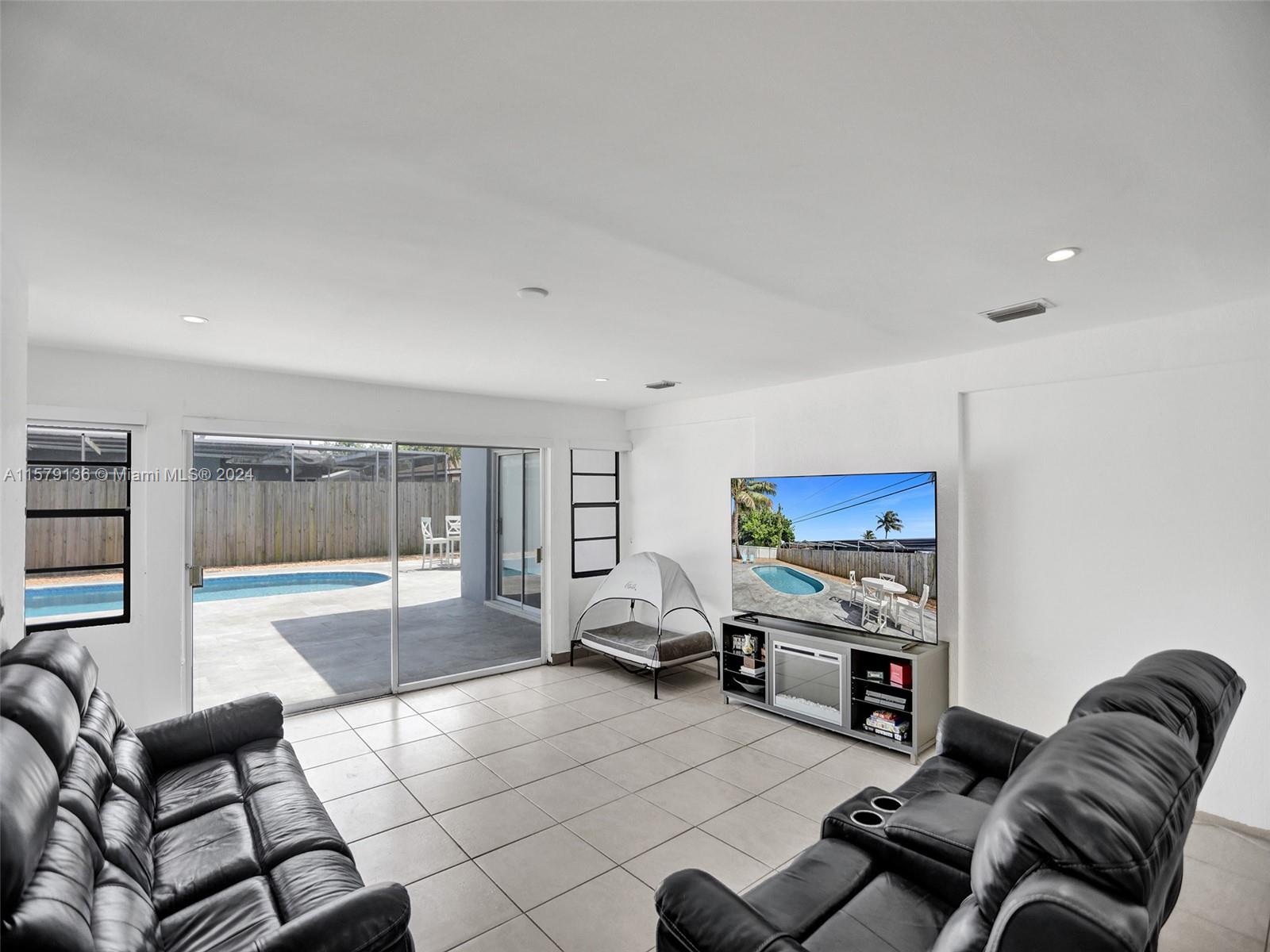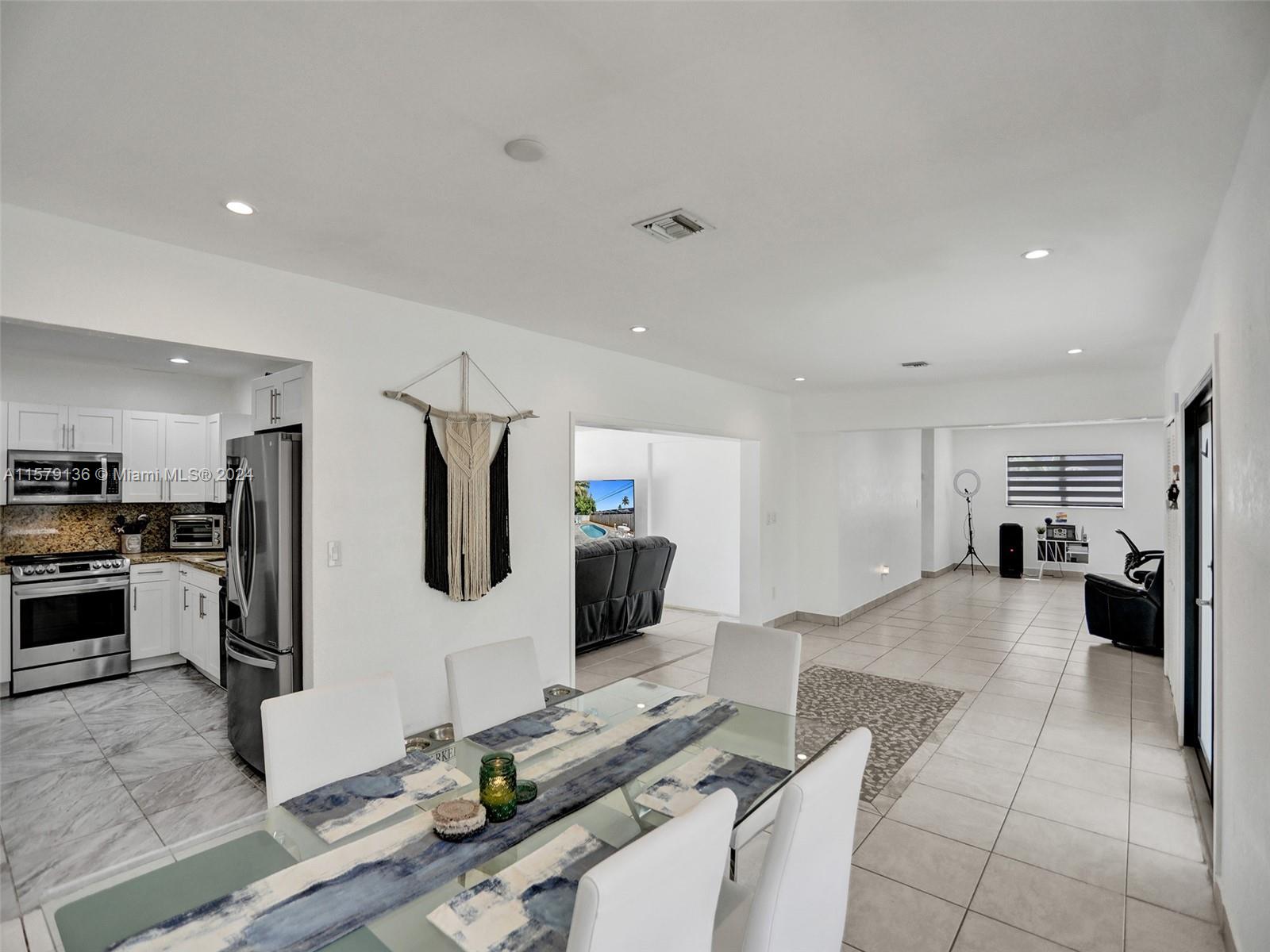 This stunning 4-bedroom, 2-bathroom home boasts a refreshing pool, hurricane-impact doors, and plenty of parking space. This home has 2,169 SQFT of living space and sits on a large 10,671 SQFT lot. The updated kitchen with white cabinets, double sinks, stainless steel appliances, and granite countertops is a chef's dream. Recessed lighting adds a sophisticated touch to the living and dining rooms, while the den provides ample space for entertainment. The outdoor area features a pristine pool, paved patio, palm trees, and a large grassy yard. Proximity to parks, great schools, grocery stores, Aventura Mall, and the beach make this home the ultimate in comfort, convenience, and luxury living.