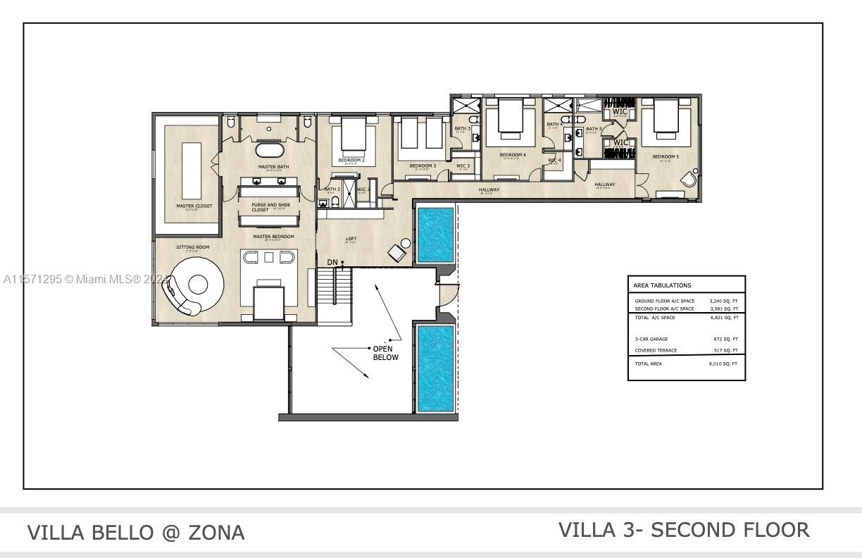 "VILLA THREE" Dreams Edition at VILLA BELLO. This bespoke model offers 6 beds, 6 baths, a living area of 6,821 sqft & over 8,010 sqft total, with a double pool (24 x 9 and 45 x 12). Enjoy Tesla Powerwall, hidden solar panels, and LED lighting trim package throughout. Personalize your entertainment space with a media room and custom A/V prewiring. Optional playroom or gym space ready for customization. Indulge in an outdoor kitchen by Alumnatek and landscaping by world renowned architect Scott Macclure. Plus, 20 hours of complimentary design with the award winning Jorge Castillo. Signature fixtures include a 3-car garage with double doors, private entry gate, covered terrace, summer kitchen, and more. Don't miss out on this unique opportunity to create YOUR dream home.