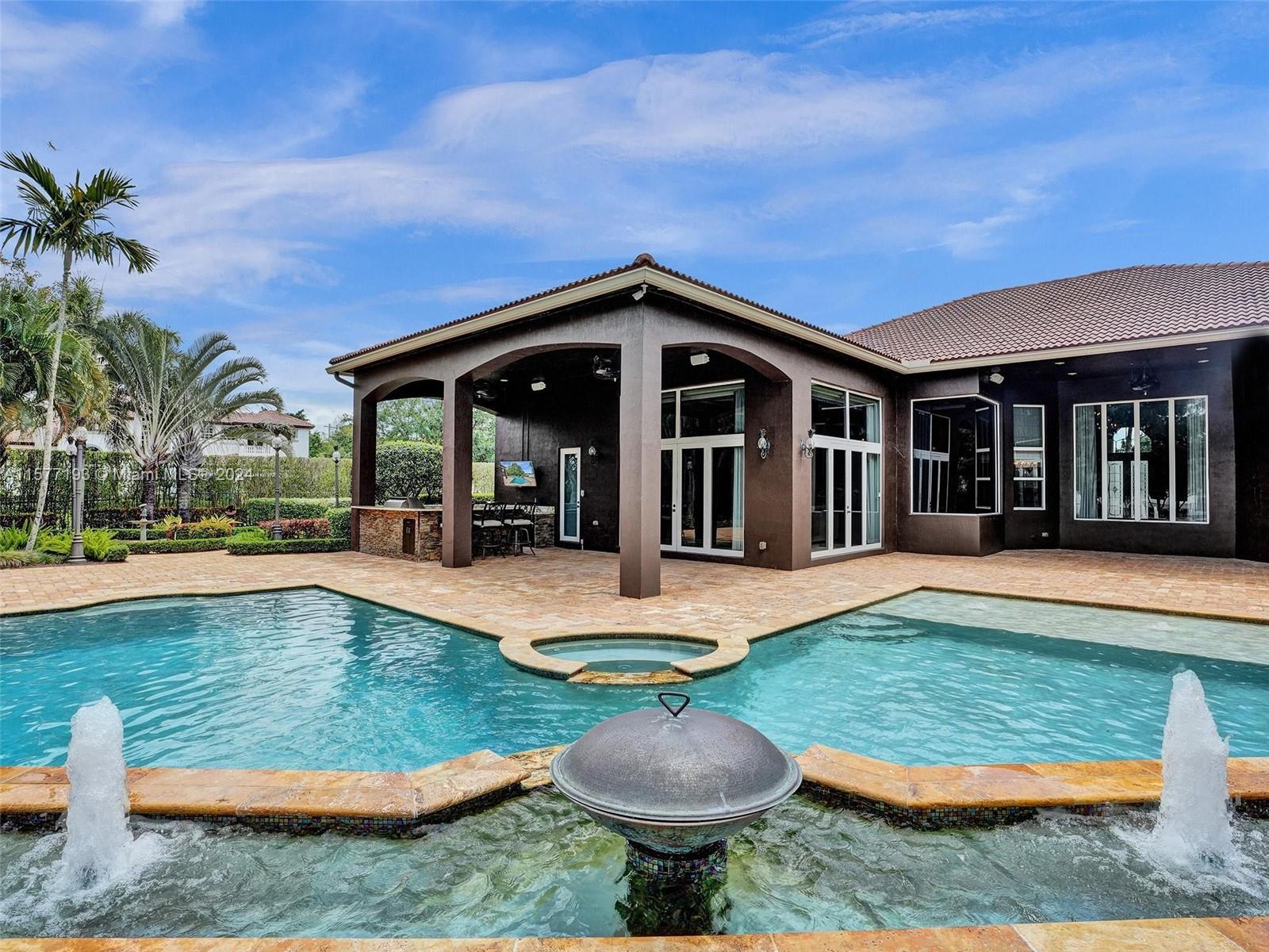 WELCOME TO BLACKHAWK RESERVE GATED TENNIS COURT COMMUNITY FEATURING CUSTOM SINGLE STORY HOME W/ SPLIT OPEN FLOOR PLAN 4BR ALL EN-SUITE/5.5BATH+OFFICE+THEATER(5TH BR) SITUATED ON PREMIUM CORNER LAKEFRONT LOT WITH DOUBLE DRIVEWAYS & BRONZE ENTRY FOUNTAIN. HIGH END FINISHES INCLUDE: IMPACT WINDOWS & DOORS, CHEF KITCHEN, TOP TEIR APPLIANCES W/ NEW DACOR FRIDGE & DOUBLE OVEN, GRANITE & MARBLE COUNTERTOPS THRU-OUT, CRESTRON HOME AUTOMATION, SONOS SYSYEM, SECURITY CAMERAS, MOTORIZED SHADES, CUSTOM CLOSETS, CUSTOM WALL UNIT, MARBLE & WOOD FLOORING, 14' COFFERED CEILINGS, NEWLY REMODELED LAUNDRY, DINING & LIVING ROOM W/ FEATURE MIRROR WALL, 3 CAR GARAGE W/ STORAGE. RESORT STYLE POOL & SPA W/ NEW HEATER, SUMMER KITCHEN, TROPICAL BACKYARD W/ LUSH LANDSCAPING & EXT. LIGHTING & GORGEOUS LAKE VIEWS!