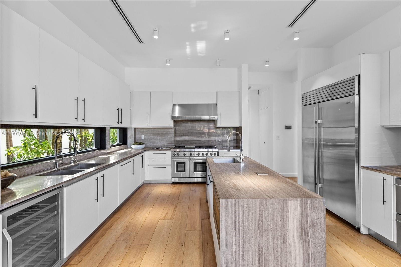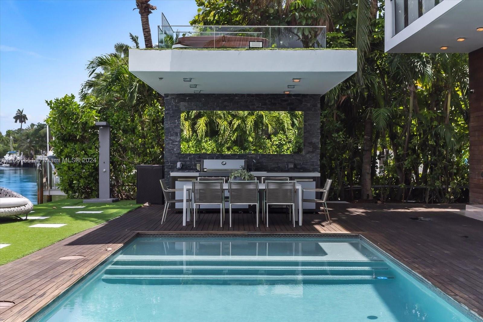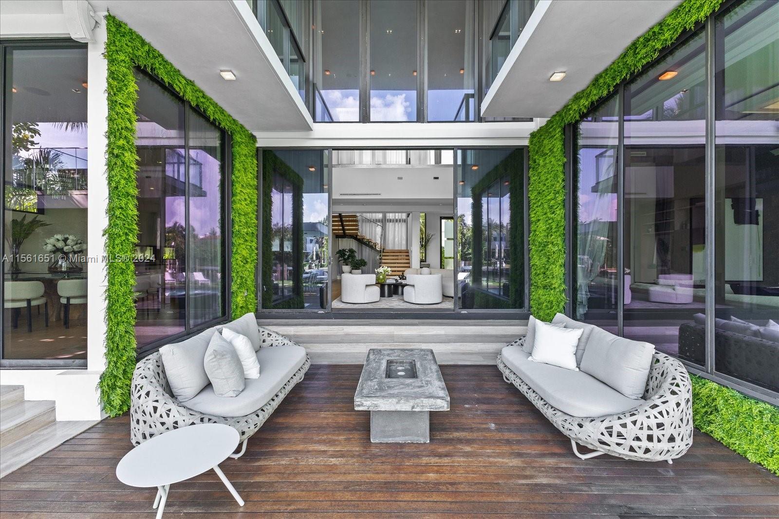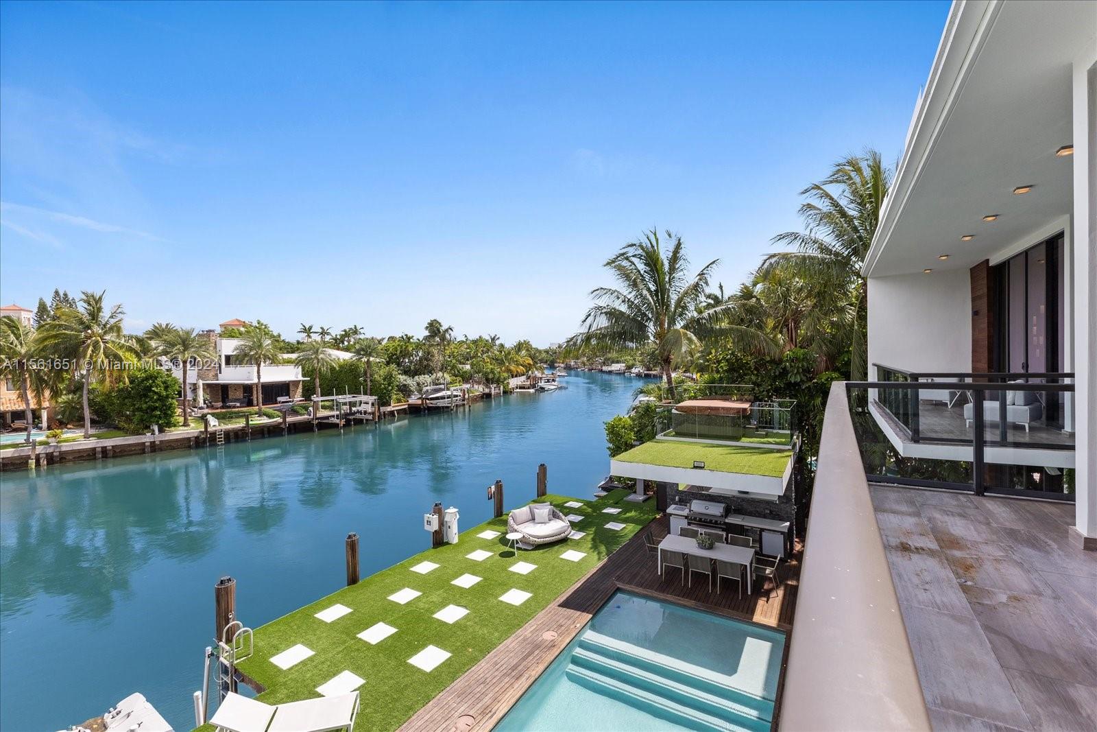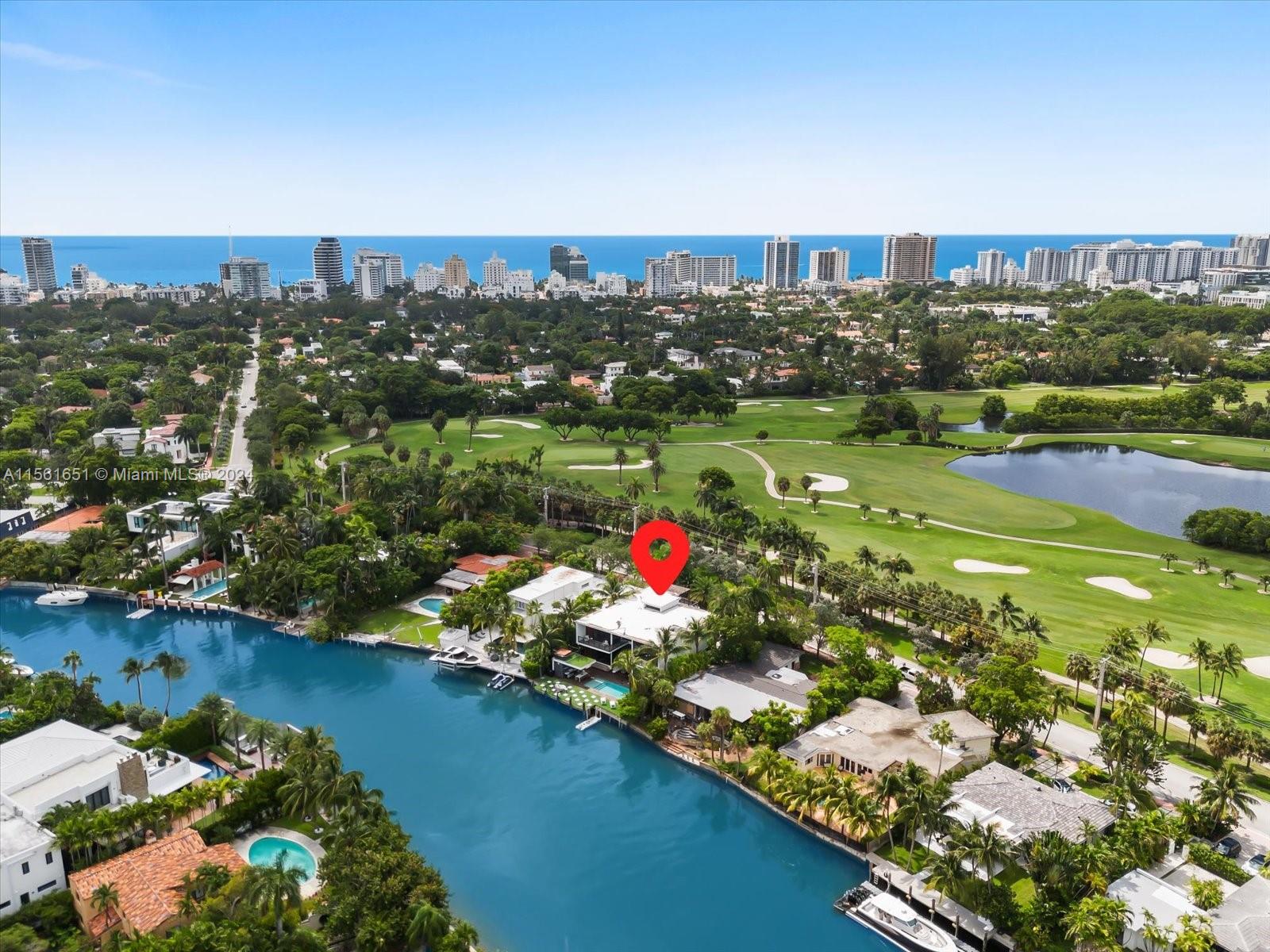 Experience modern luxury and prime location in this extraordinary Cheoff Levy Fishman masterpiece! Nestled between the Biscayne Waterway and Miami Beach Golf Club, every room offers breathtaking views. The backyard is an outdoor oasis, perfect for entertaining and relaxation, featuring terraces, a covered open-air summer kitchen, lush pool, cabana bath, and a rooftop hot tub for spectacular sunrises and sunsets. The living room impresses with a 28-ft ceiling, a gourmet Subzero-Wolf marble kitchen, a 12-person dining room, and a fabulous family room. Upstairs, the 1500 sqft primary suite provides a private retreat with three terraces and spacious closets. Plus, enjoy the convenience of parking for 12 cars, including a 4-car AC garage. Your dream home awaits!
