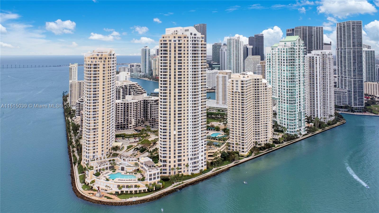 Amazing Corner Unit with spectacular views of the bay and Miami skyline. 3 bedrooms/3.5 baths, 2293 sqft, each bedroom have a private bathroom. Elegant tile floors in the living areas, wood floors in the bedrooms, spacious and updated closets and bathrooms, remodeled kitchen with top of the line appliances and breakfast area. Unit have 2 balconies, front balcony with amazing North views that will allow you to enjoy Miami best fireworks, and South balcony to enjoy Miami amazing sunsets. 2 parking spaces included and 1 storage. Three Tequesta being one of the most amazing buildings in the exclusive Brickell Key, with top amenities. Must See!!