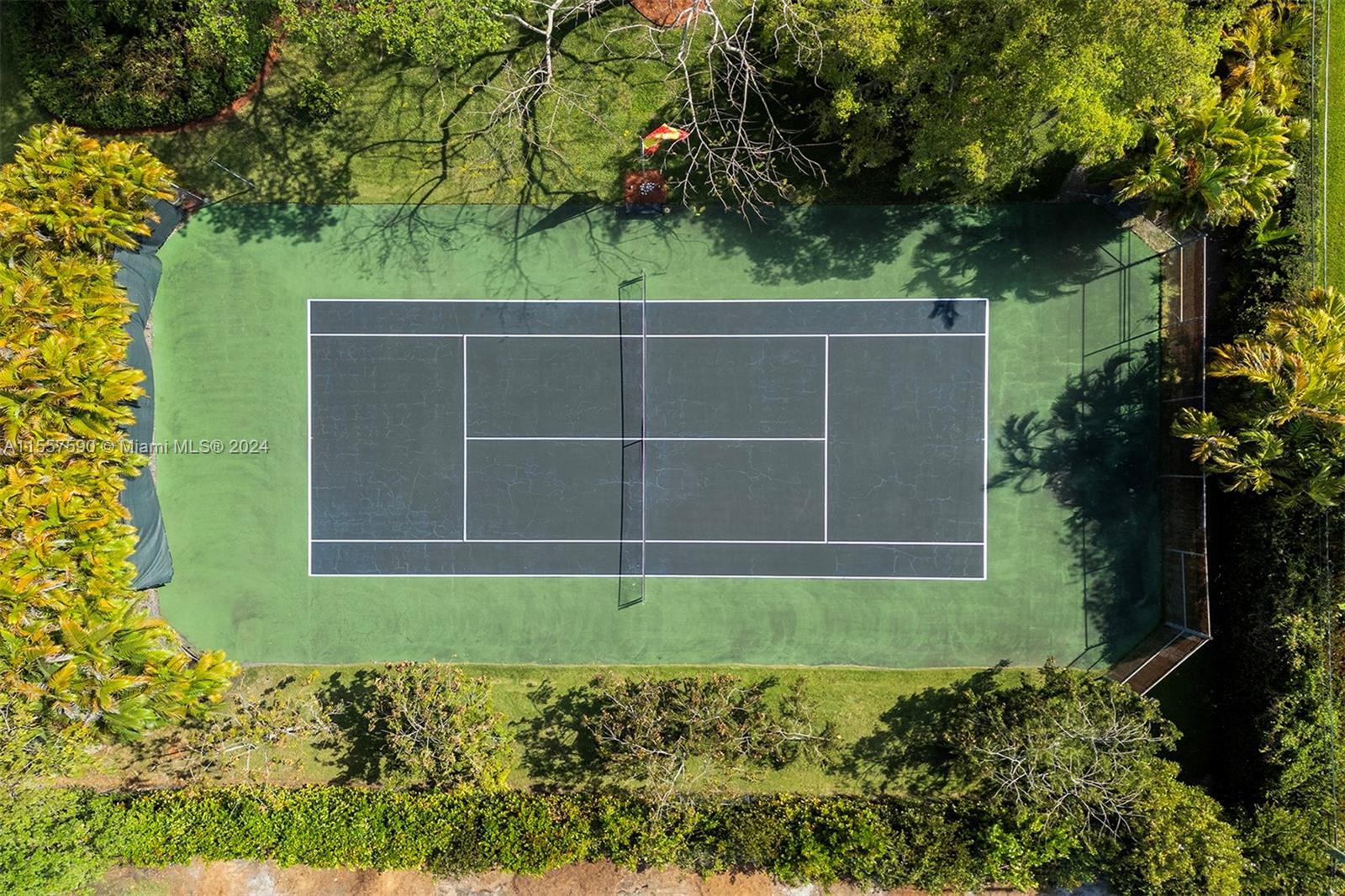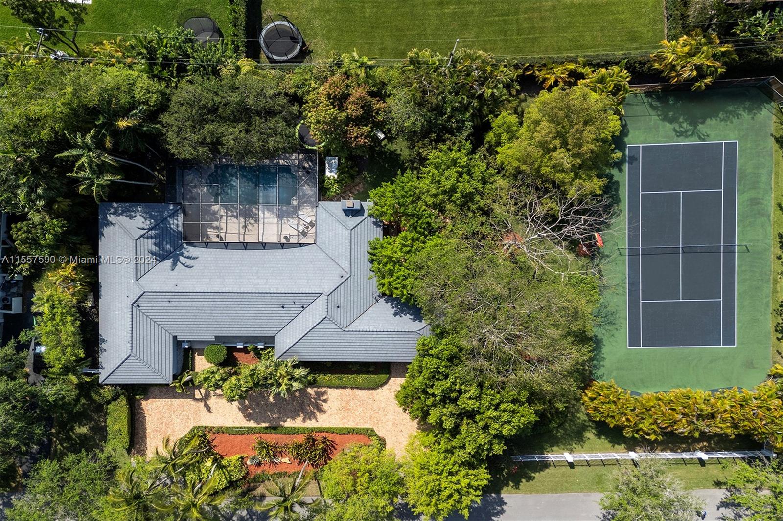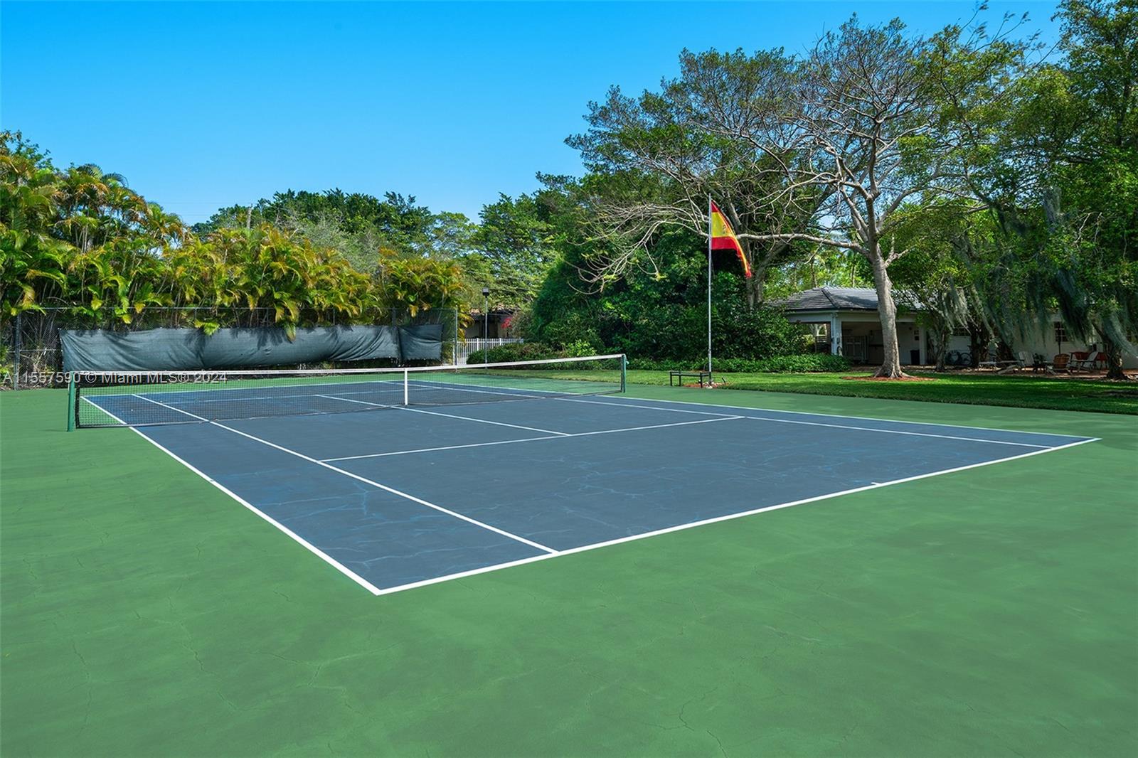 Nestled in the Hammock Oaks exclusive community, this charming residence sits on an acre lot with gated entry. It boasts 4 bedrooms with updated floors, 4 bathrooms, and a spacious den ideal for a home office or gym. A circular driveway and two-car carport add to the appeal. Featuring a 7-year-old roof, two recently installed AC units, and impact-resistant windows and doors. The kitchen is semi private but still connects to the family room and outdoor area. Formal living areas are bathed in natural light from French doors leading to the pool and patio. Outside awaits a private tennis court, surrounded by lush foliage. Additionally, community has marine docks with for purchase or rent upon availability. Perfect to live or remodel to your taste.