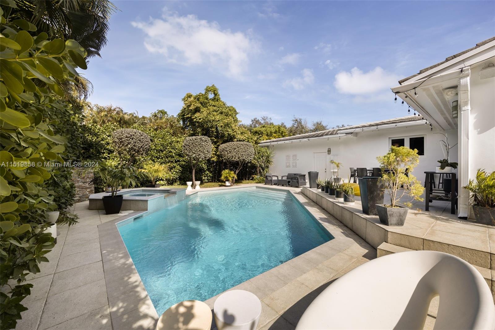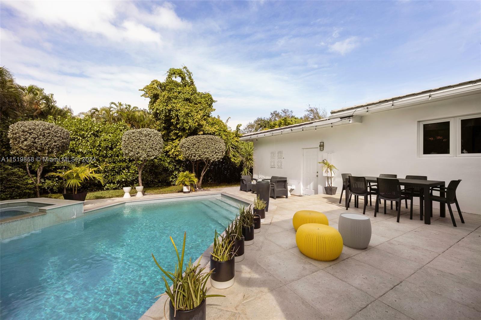 This modern mid-century style home in the sought-after South Coral Gables neighborhood is a true gem. Updated in 2008, this property seamlessly blends contemporary amenities with the timeless appeal of mid-century design.Boasting 5 bedrooms and 4 bathrooms, this home provides ample space for both privacy and shared moments. The addition of a denloft office adds versatility, making it an ideal space for work or relaxation.The floor-to-ceiling impact windows and doors not only flood the interiors with natural light but also offer stunning views of the surrounding landscape. The open floor plan is a highlight, creating a fluid and dynamic living space that is perfect for entertaining.
