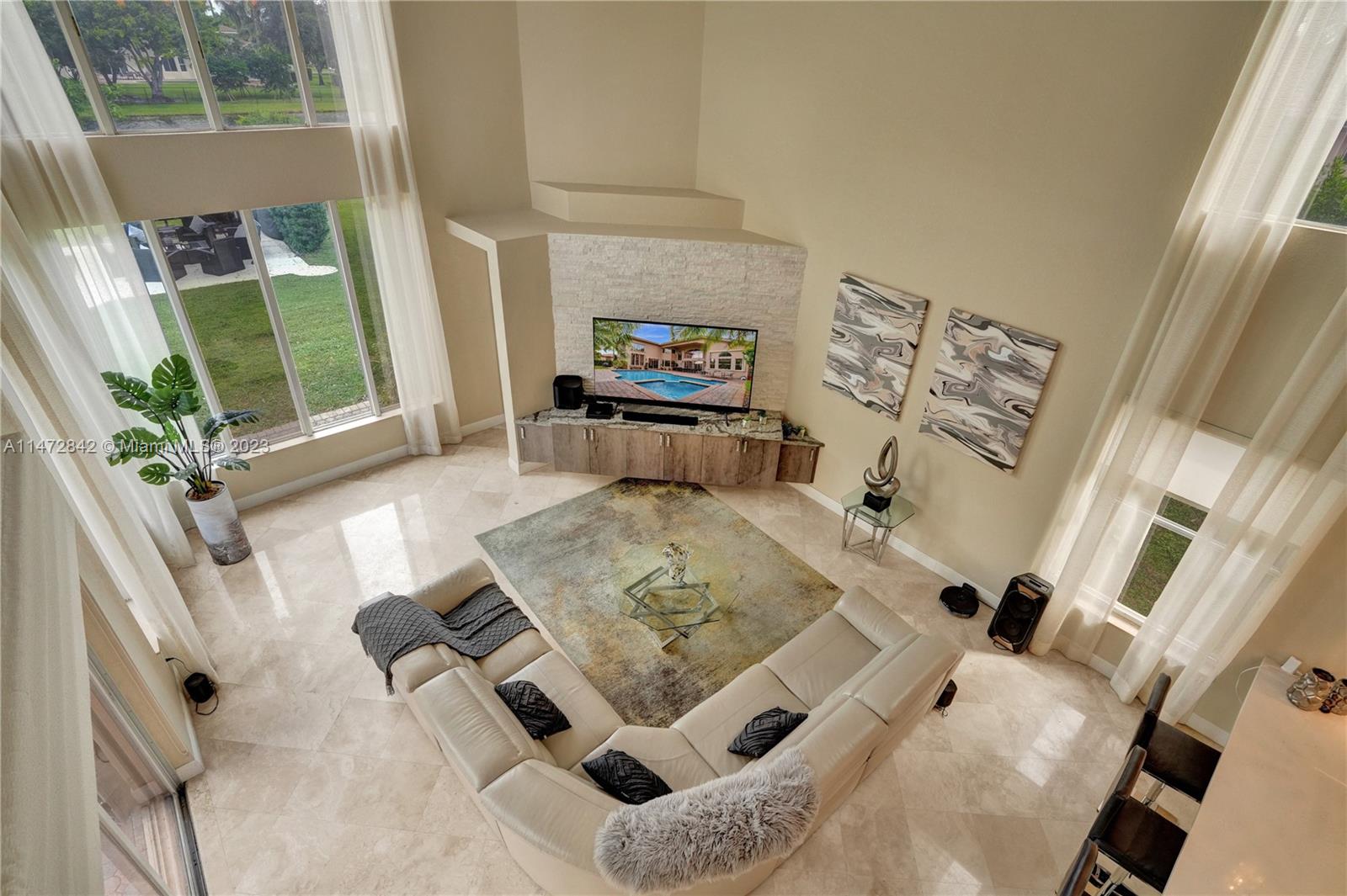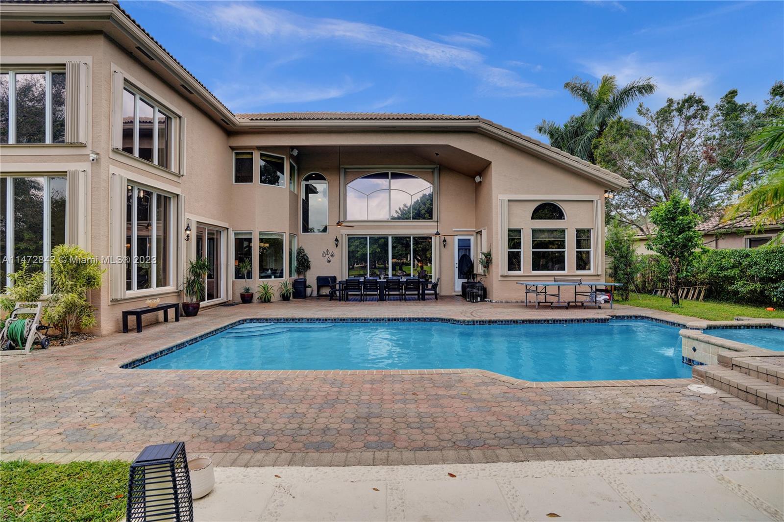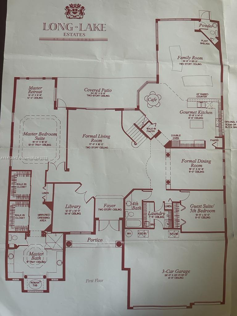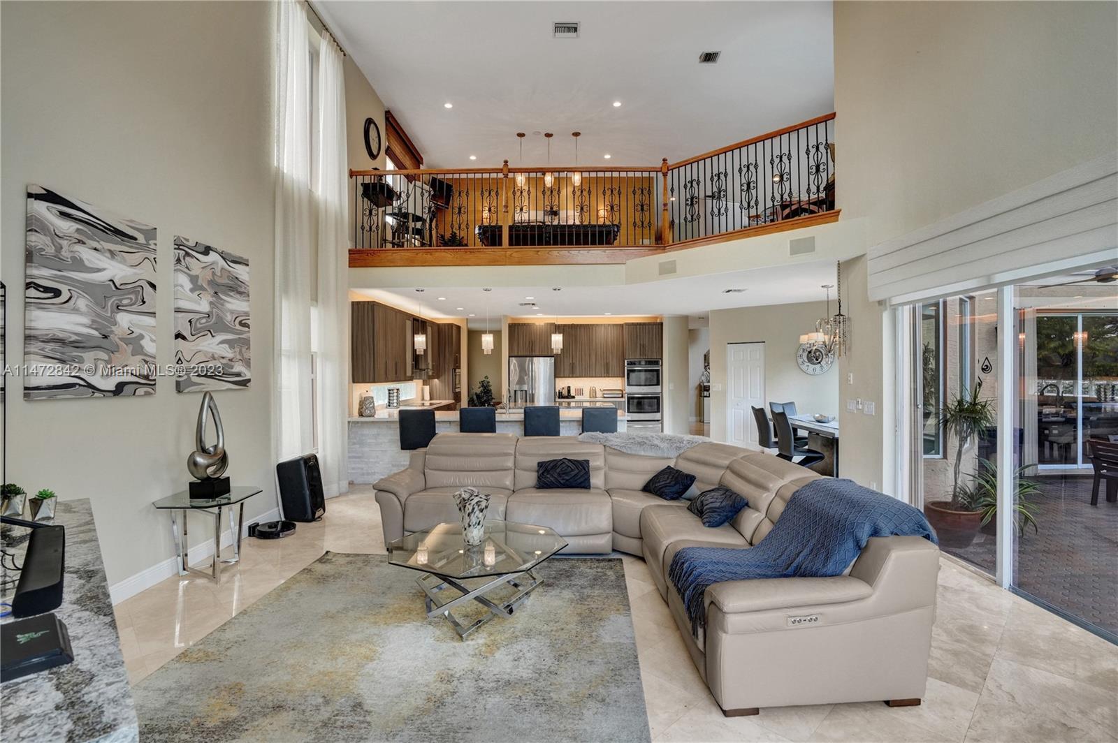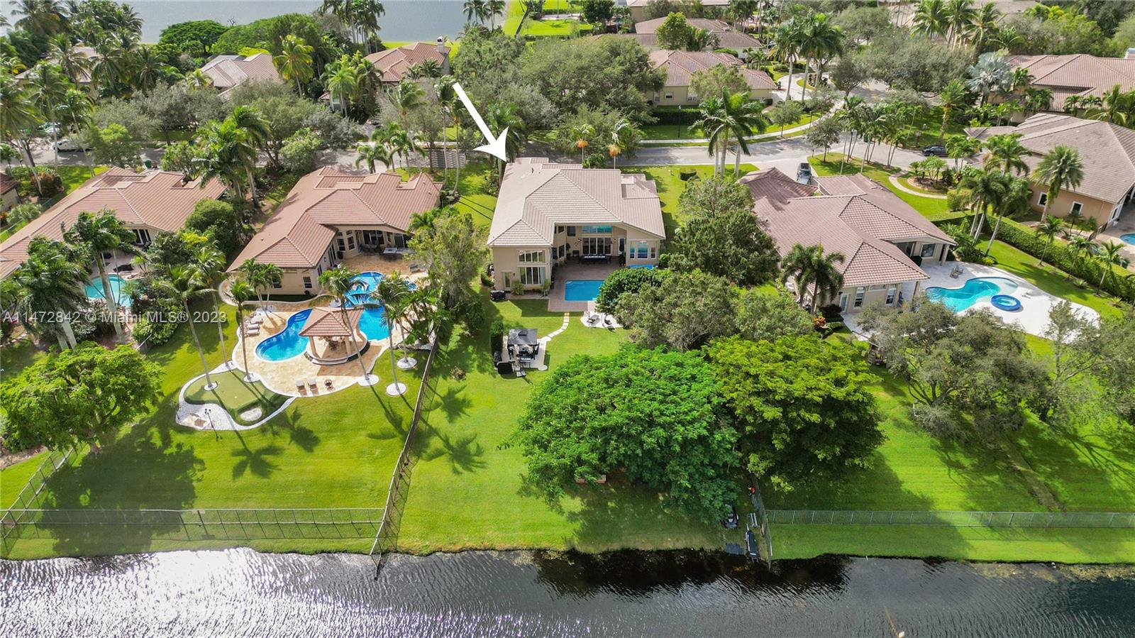 Exquisite lake home situated in the prestigious gated community of Long Lake Estates. Breathtaking views of the lake where you can enjoy waterskiing, this 5 bedroom 4.5 bath plus a dedicated office space complete with stylish built-in furniture, showcases soaring tray ceilings throughout the living spaces, elegant marble floors, situated in an oversized lot. This beautiful turnkey home offers a host of luxury elements including a grand entrance, a newly renovated kitchen with white quartz countertops and high-end stainless-steel appliances, a luxurious main bedroom, impact-resistant windows and doors, and a three-car garage. Outdoor Florida living with a resort style heated pool. The community features a tennis court and basketball court. ONLY NAVIGABLE LAKE/CANAL IN TOWN.