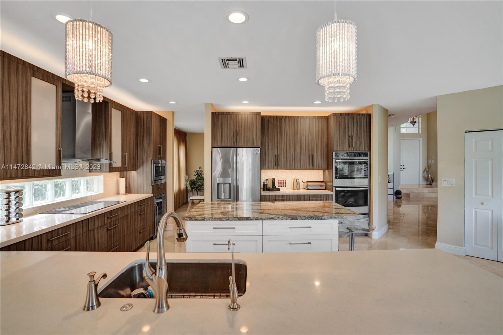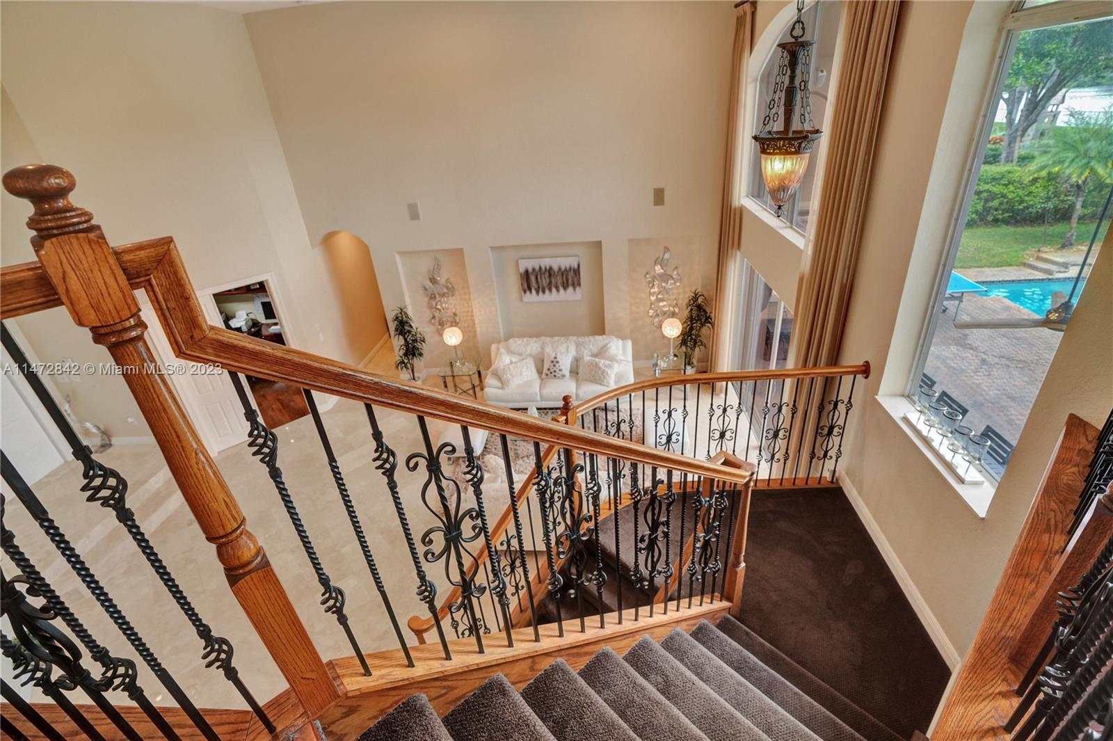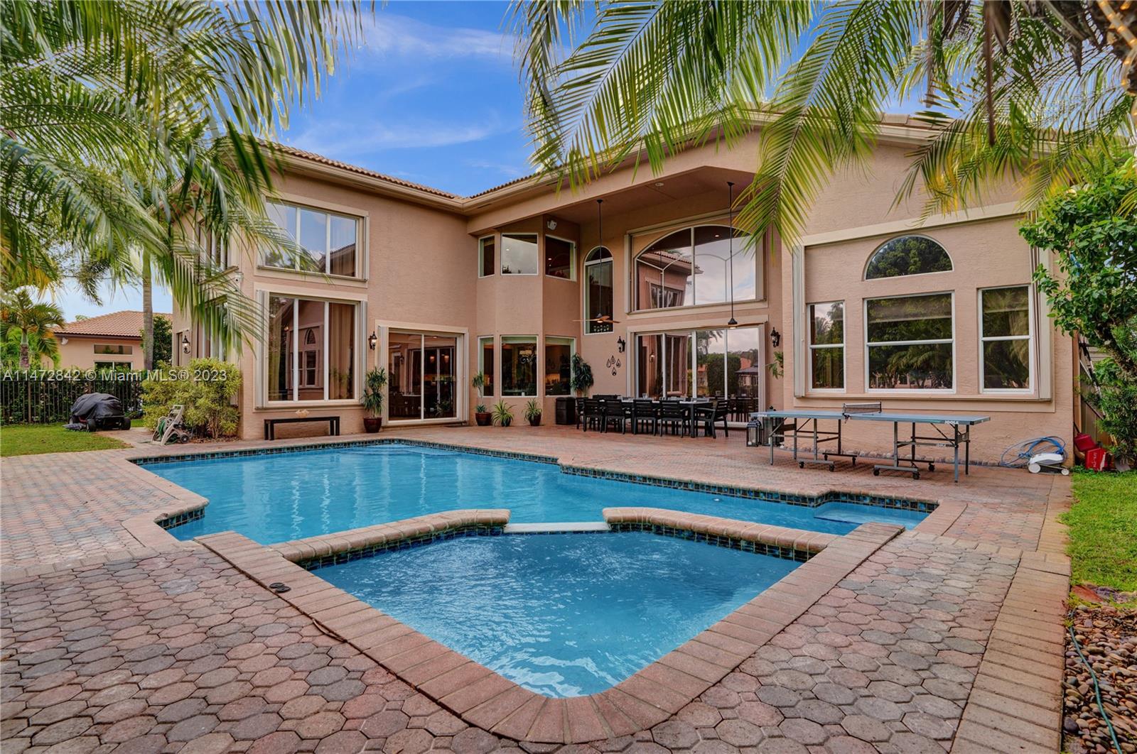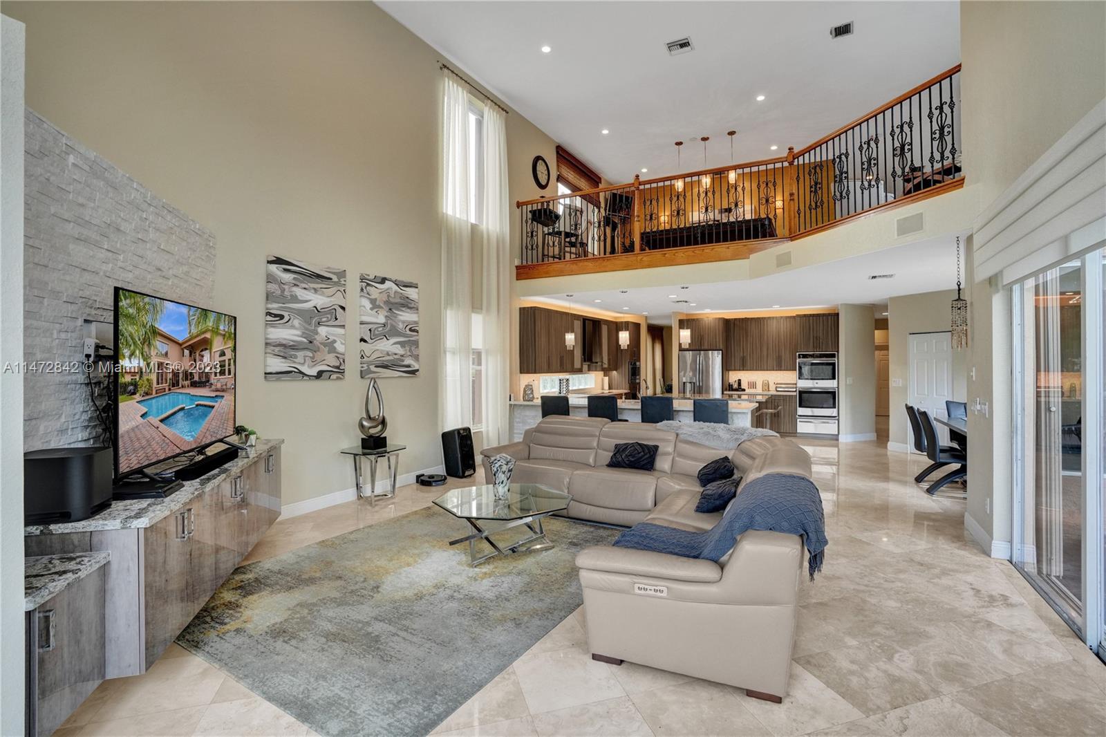 Exquisite lake home situated in the prestigious gated community of Long Lake Estates. Breathtaking views of the lake where you can enjoy waterskiing, this 5 bedroom 4.5 bath plus a dedicated office space complete with stylish built-in furniture, showcases soaring tray ceilings throughout the living spaces, elegant marble floors, situated in an oversized lot. This beautiful turnkey home offers a host of luxury elements including a grand entrance, a newly renovated kitchen with white quartz countertops and high-end stainless-steel appliances, a luxurious main bedroom, impact-resistant windows and doors, and a three-car garage. Outdoor Florida living with a resort style heated pool. The community features a tennis court and basketball court. ONLY NAVIGABLE LAKE/CANAL IN TOWN.