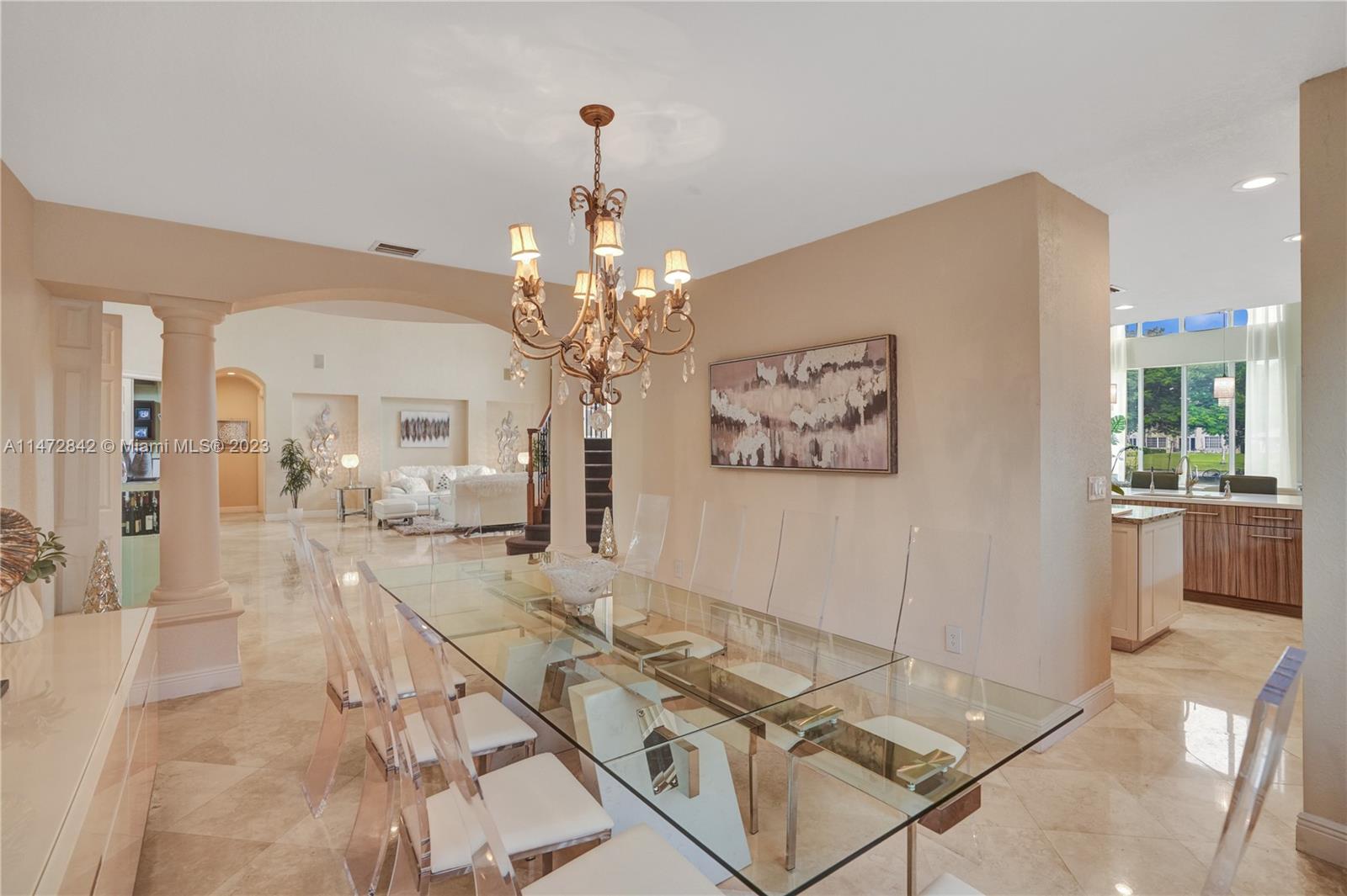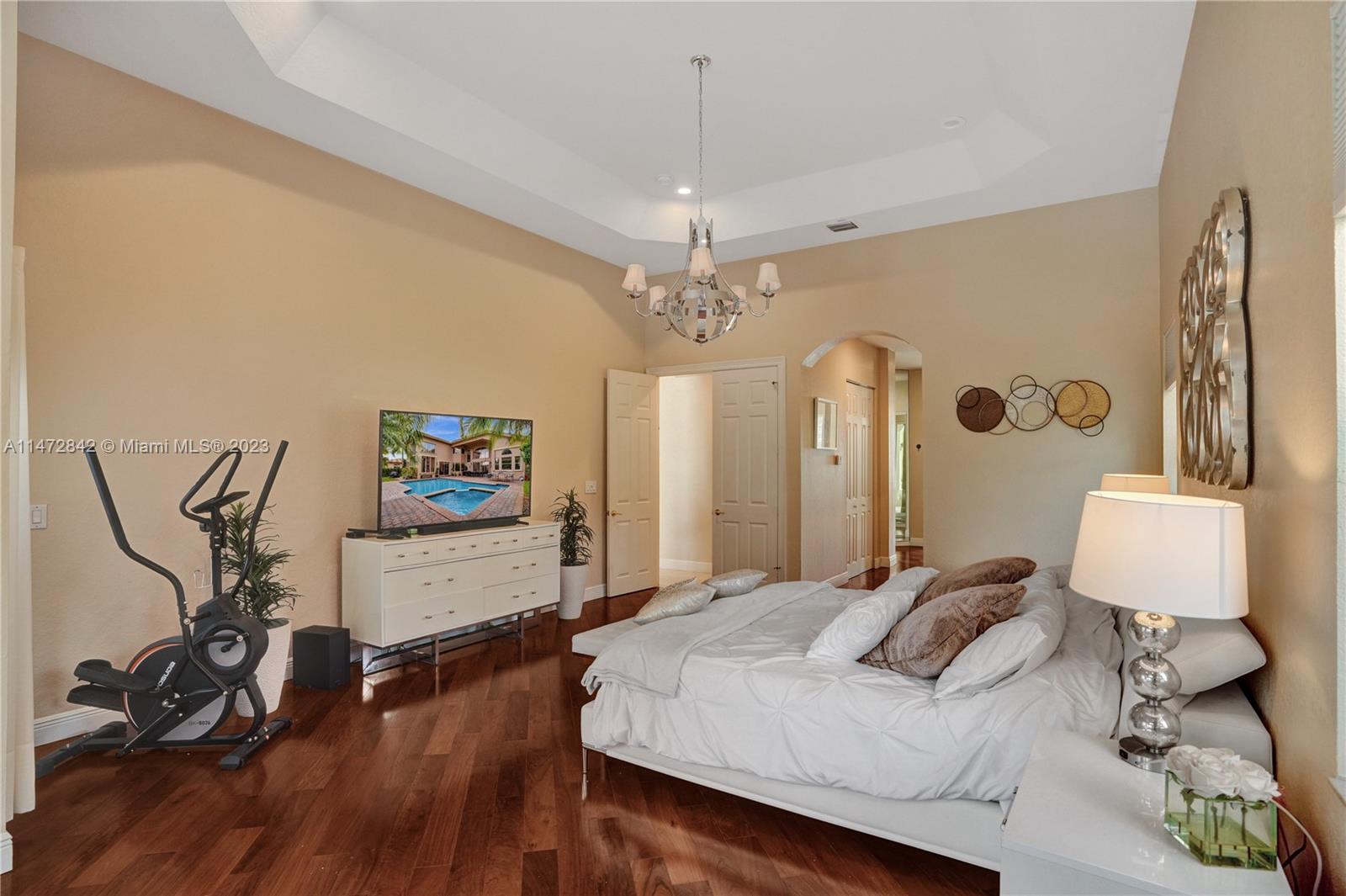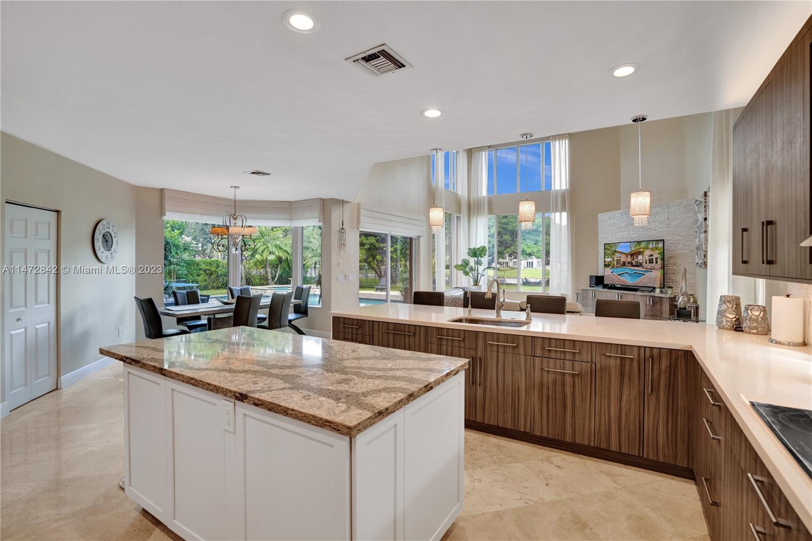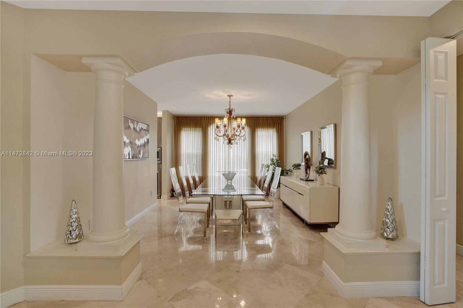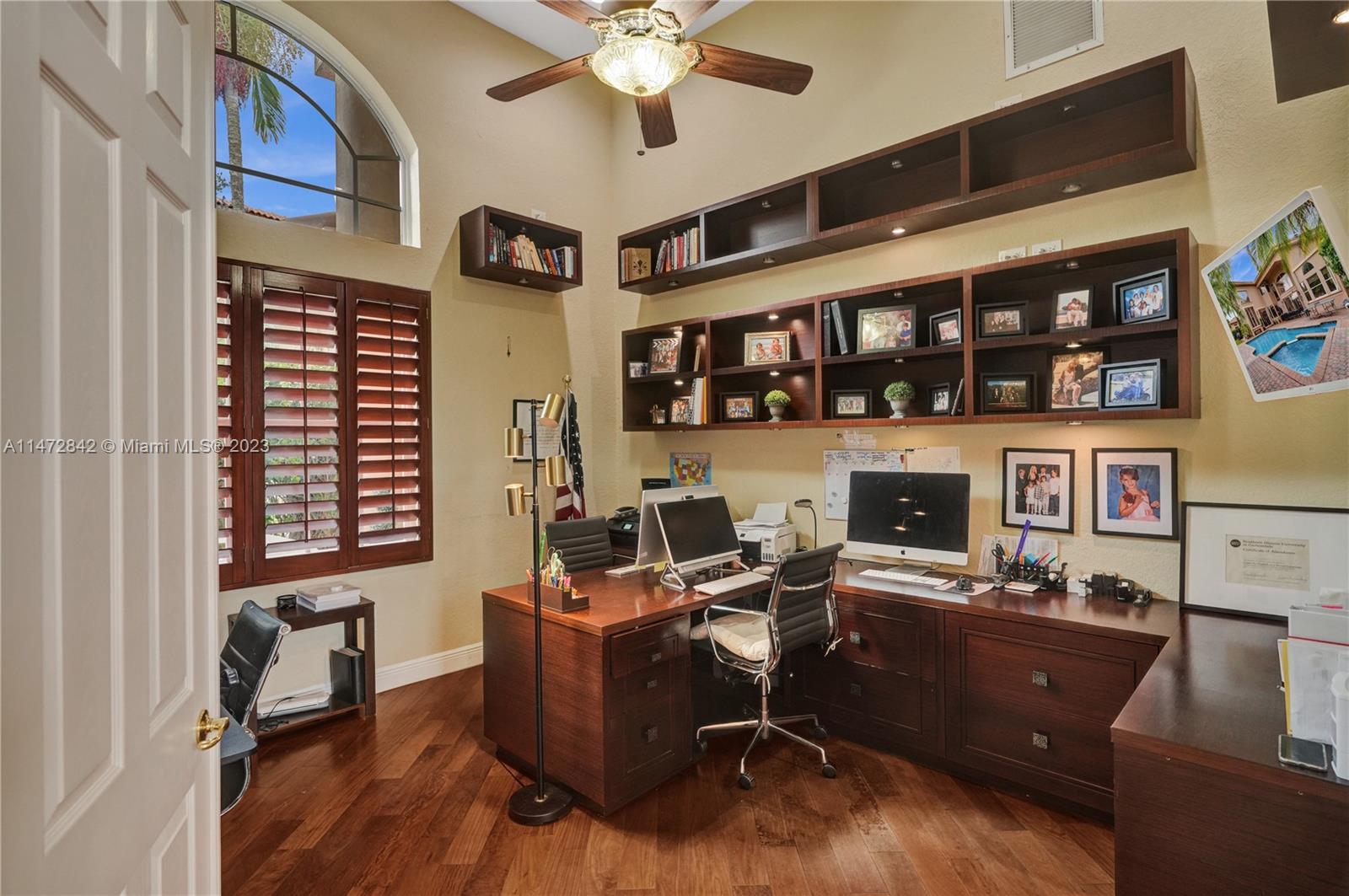 Exquisite lake home situated in the prestigious gated community of Long Lake Estates. Breathtaking views of the lake where you can enjoy waterskiing, this 5 bedroom 4.5 bath plus a dedicated office space complete with stylish built-in furniture, showcases soaring tray ceilings throughout the living spaces, elegant marble floors, situated in an oversized lot. This beautiful turnkey home offers a host of luxury elements including a grand entrance, a newly renovated kitchen with white quartz countertops and high-end stainless-steel appliances, a luxurious main bedroom, impact-resistant windows and doors, and a three-car garage. Outdoor Florida living with a resort style heated pool. The community features a tennis court and basketball court. ONLY NAVIGABLE LAKE/CANAL IN TOWN.