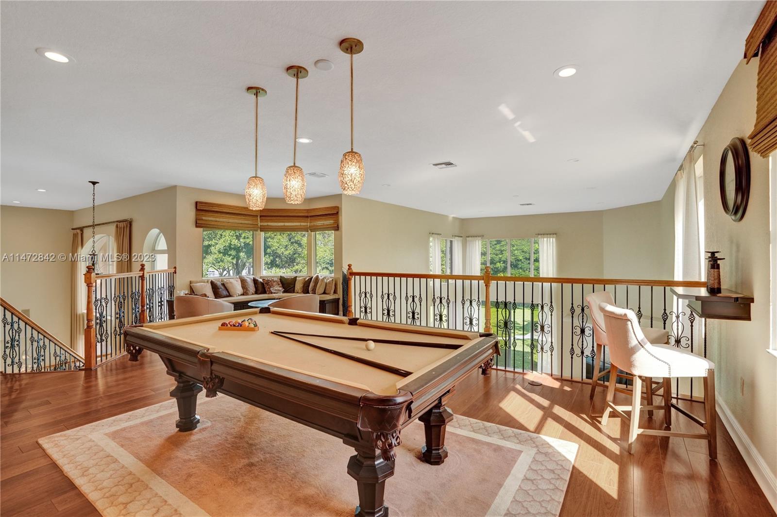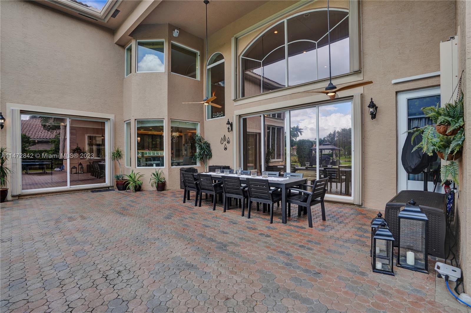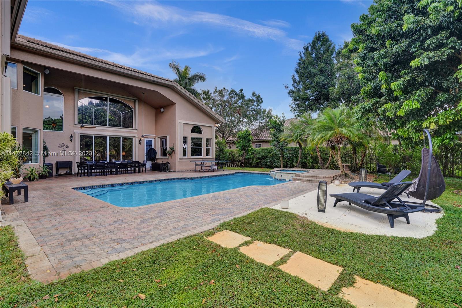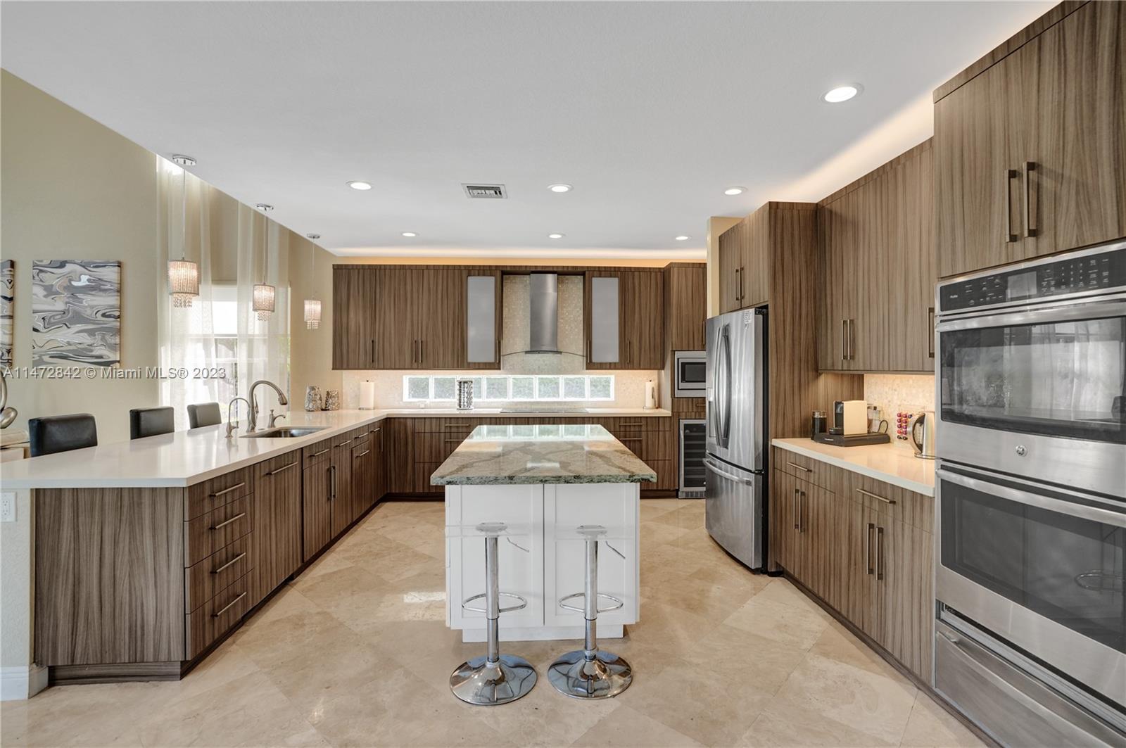 Exquisite lake home situated in the prestigious gated community of Long Lake Estates. Breathtaking views of the lake where you can enjoy waterskiing, this 5 bedroom 4.5 bath plus a dedicated office space complete with stylish built-in furniture, showcases soaring tray ceilings throughout the living spaces, elegant marble floors, situated in an oversized lot. This beautiful turnkey home offers a host of luxury elements including a grand entrance, a newly renovated kitchen with white quartz countertops and high-end stainless-steel appliances, a luxurious main bedroom, impact-resistant windows and doors, and a three-car garage. Outdoor Florida living with a resort style heated pool. The community features a tennis court and basketball court. ONLY NAVIGABLE LAKE/CANAL IN TOWN.