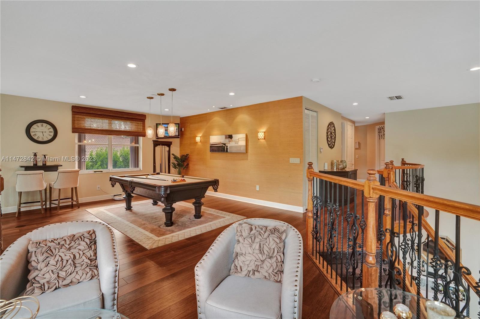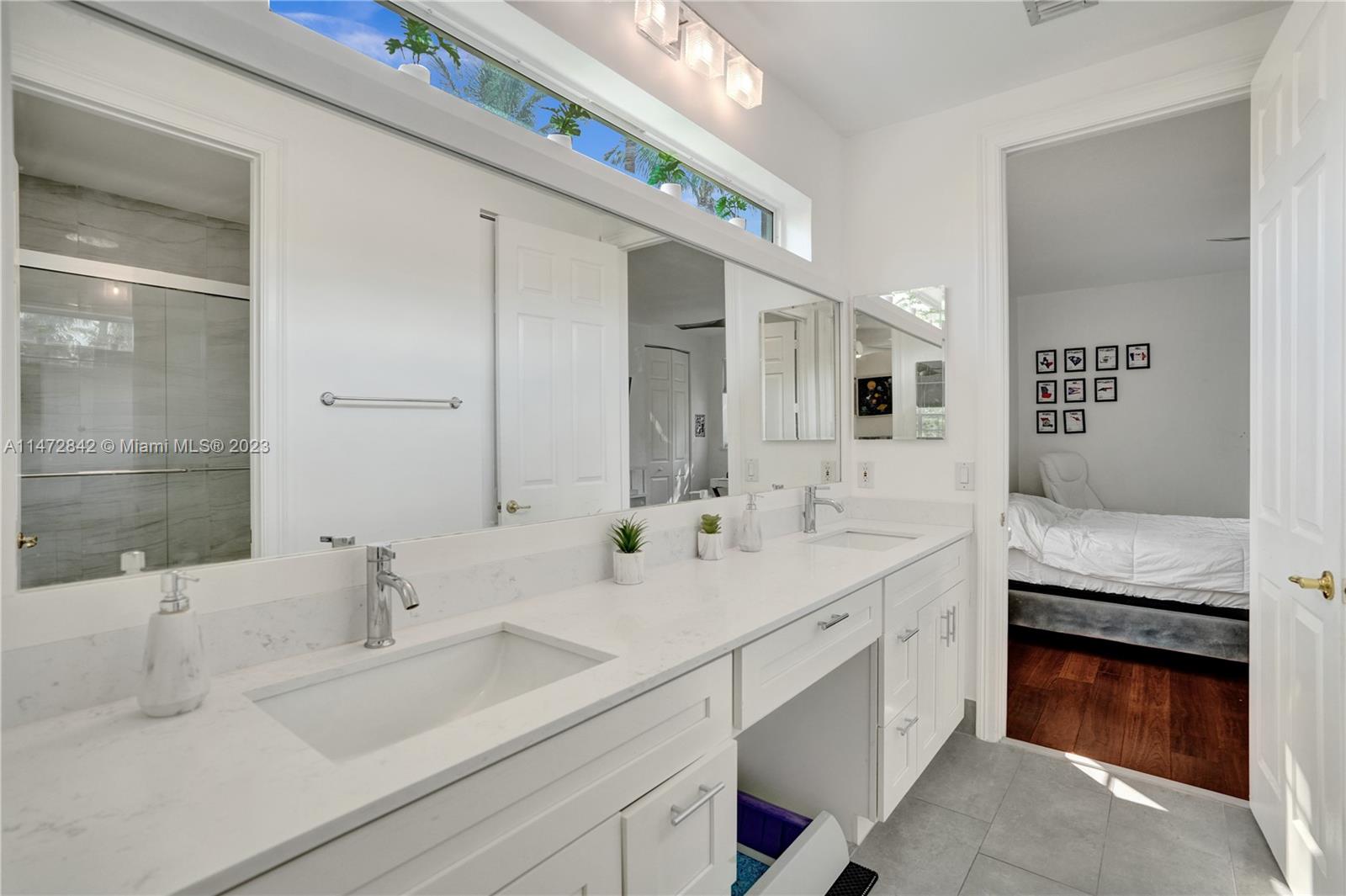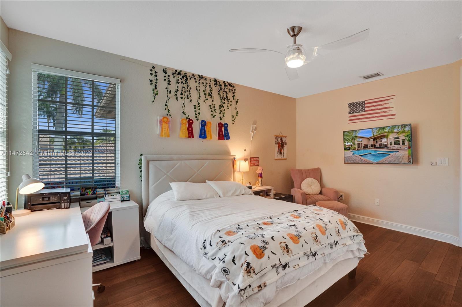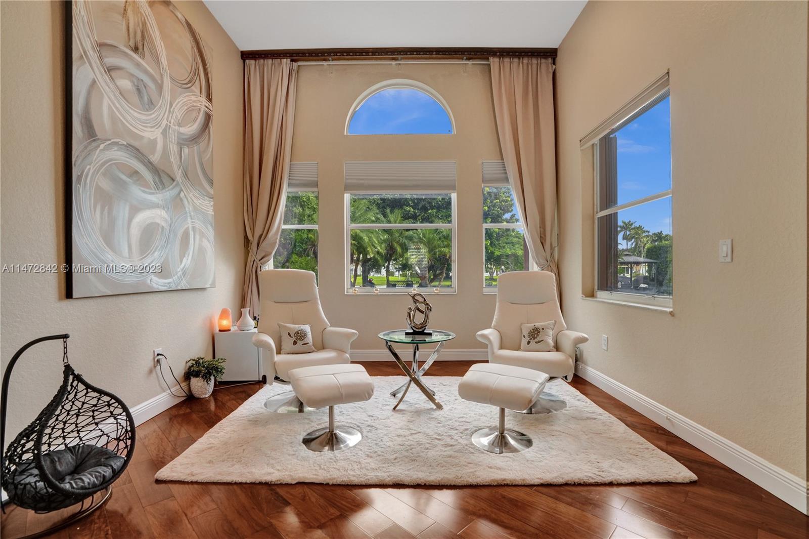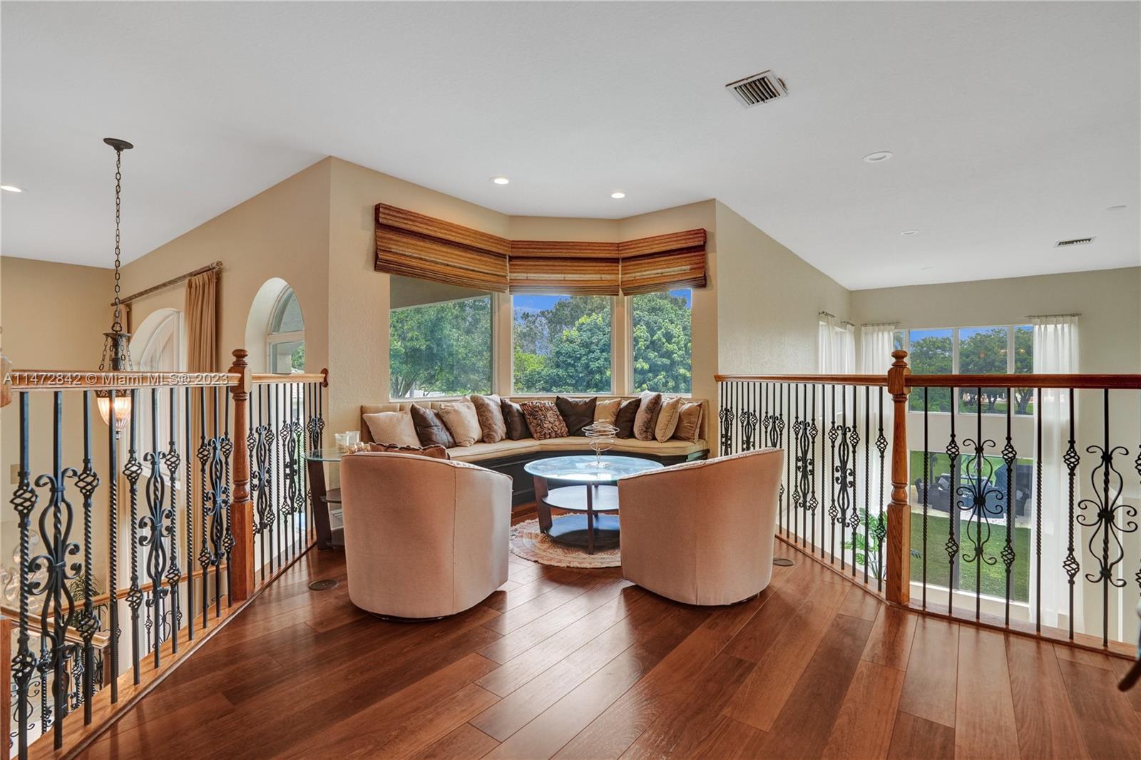 Exquisite lake home situated in the prestigious gated community of Long Lake Estates. Breathtaking views of the lake where you can enjoy waterskiing, this 5 bedroom 4.5 bath plus a dedicated office space complete with stylish built-in furniture, showcases soaring tray ceilings throughout the living spaces, elegant marble floors, situated in an oversized lot. This beautiful turnkey home offers a host of luxury elements including a grand entrance, a newly renovated kitchen with white quartz countertops and high-end stainless-steel appliances, a luxurious main bedroom, impact-resistant windows and doors, and a three-car garage. Outdoor Florida living with a resort style heated pool. The community features a tennis court and basketball court. ONLY NAVIGABLE LAKE/CANAL IN TOWN.